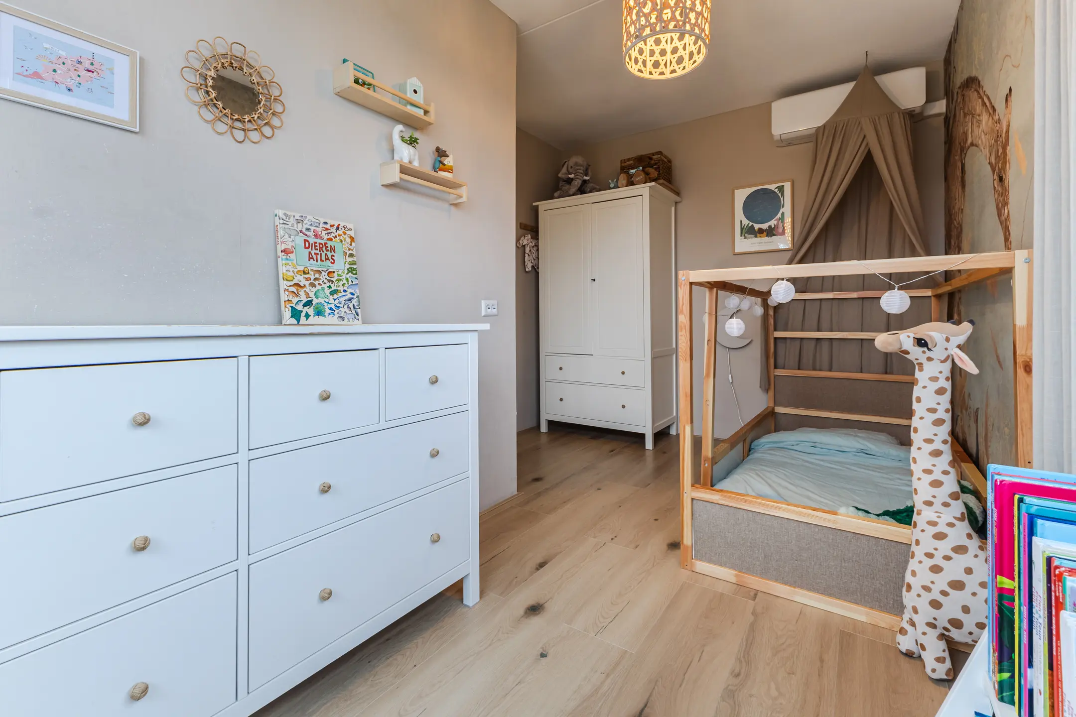 Op de verdiepingen ontvouwt zich een zee aan ruimte met maar liefst zes slaapkamers. Hierdoor is er volop plek voor een groot gezin, logees, thuiswerken of hobby’s — alles kan hier moeiteloos een eigen plek krijgen. Op de eerste verdieping zijn beide slaapkamers bovendien voorzien van airconditioning én rolluiken, voor optimaal comfort op warme dagen. De badkamer, eveneens vernieuwd in 2021, sluit hier perfect op aan met een frisse, moderne uitstraling en alle comfort dat je dagelijks wenst. Tel hier een walk-in closet en een grote wasruimte bij op en het gevoel van ruimte en luxe is compleet.
