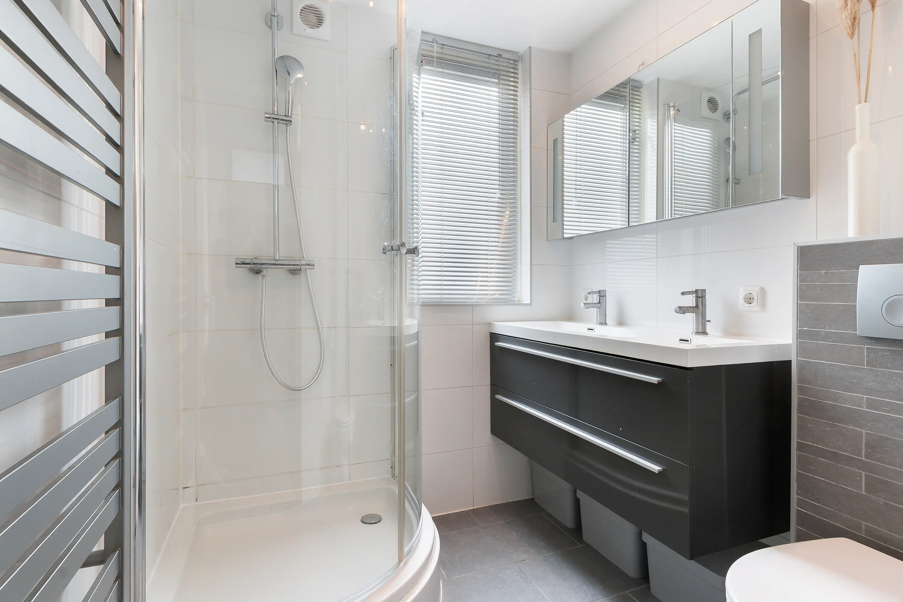 - De gehele woning is voorzien van een keurige laminaatvloer, glad gestucte wandafwerkingen met her en der sfeervol behang en spuitwerk plafondafwerking;