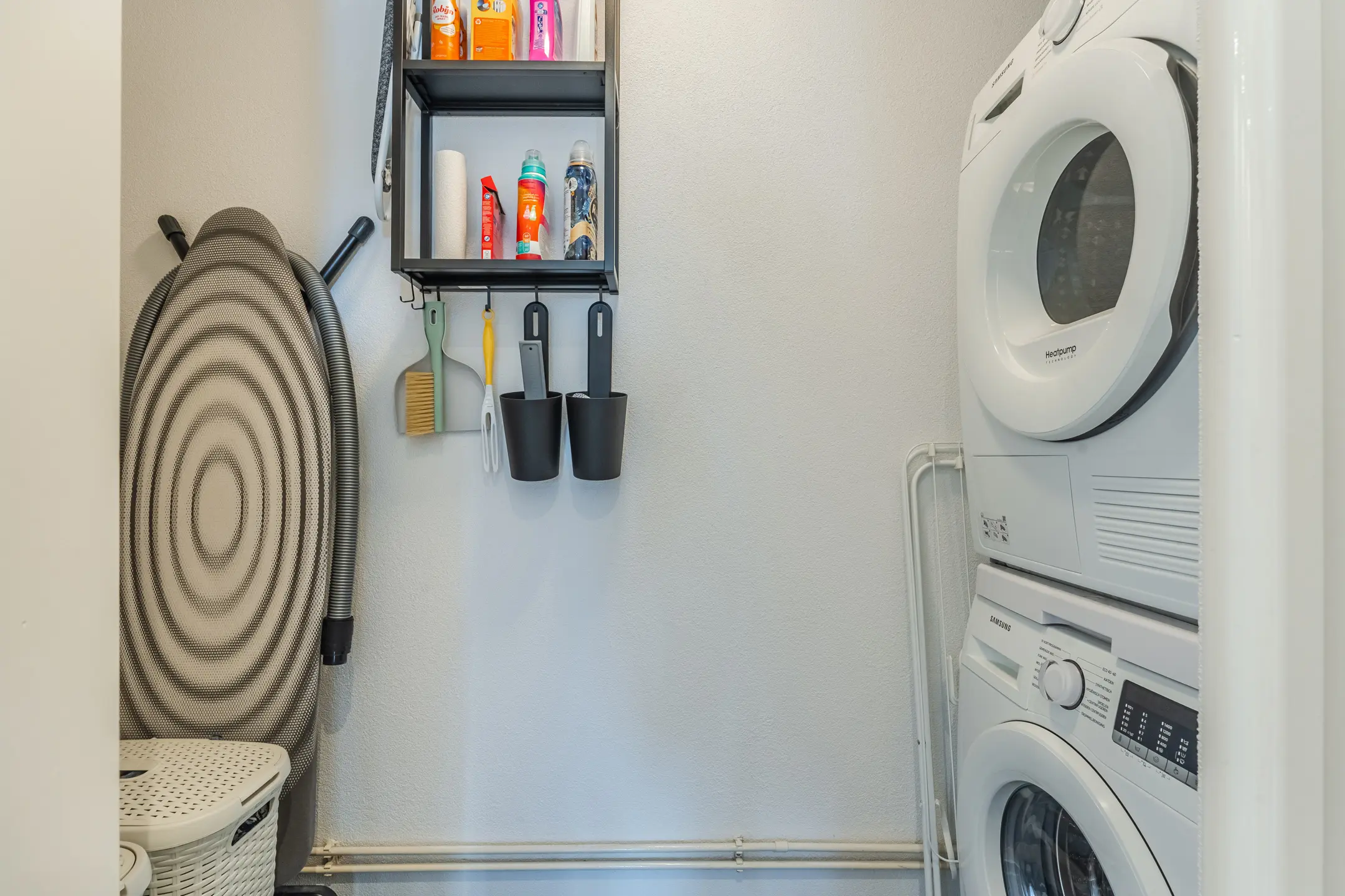 De privéparkeerplaats bevindt zich in de afgesloten parkeergarage en is bereikbaar via een elektrisch bedienbare toegangsdeur. Hier vind je ook een handige inpandige berging, perfect voor extra opslag. Via het afgesloten portiek met intercom en brievenbussen kom je uit op de eerste woonlaag van het complex.