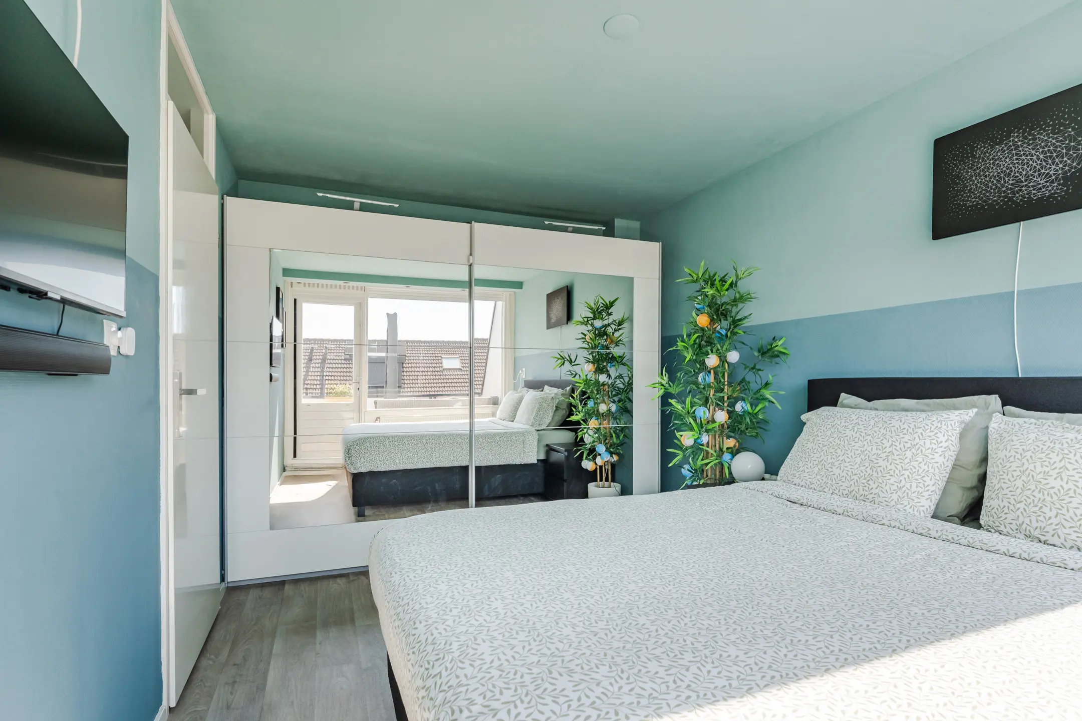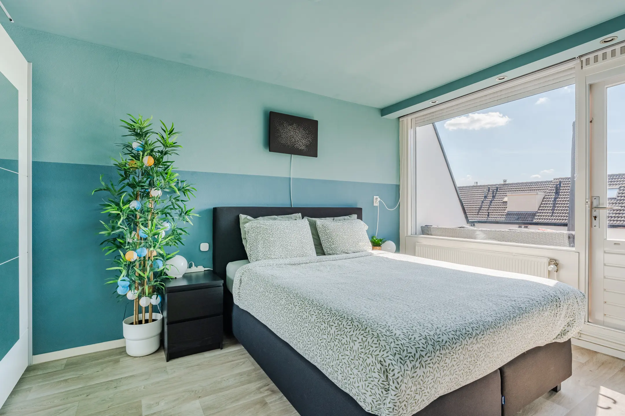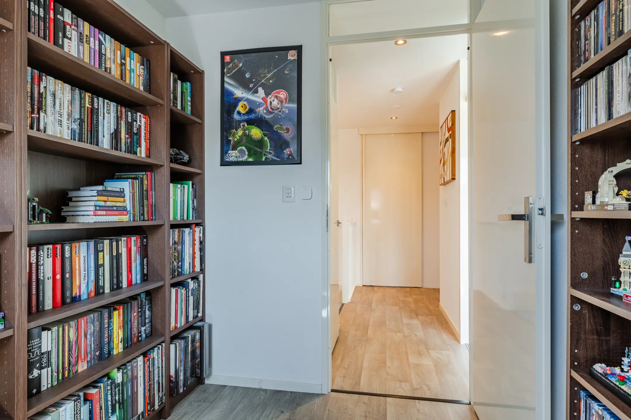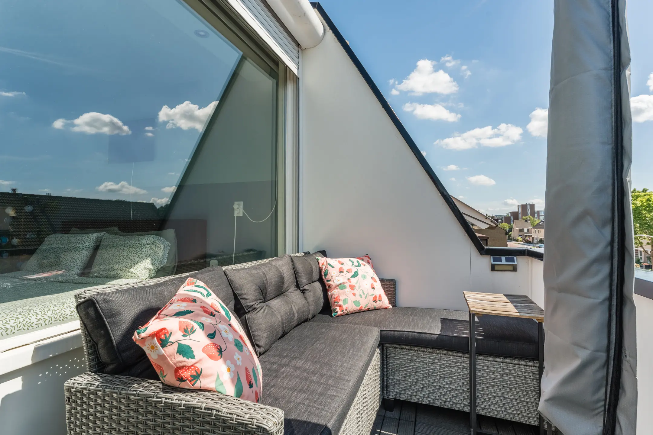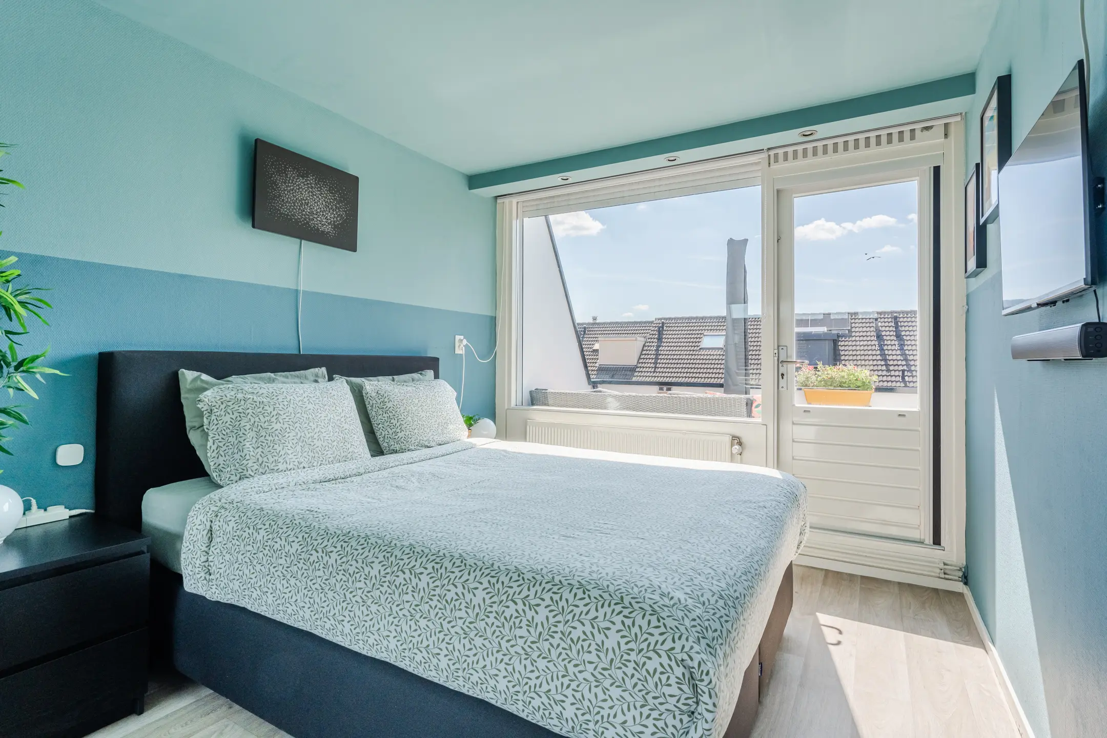 Via de overloop heb je toegang tot een praktische berging met witgoedaansluiting en de opstelling van de cv-installatie. De badkamer is uitgerust met een ligbad met douchefunctie, een wastafel/meubel. De hoofdslaapkamer biedt toegang tot het zonnige balkon en is voorzien van een rolluik. De tweede slaapkamer heeft een groot dakraam en is ideaal als logeerkamer, kinderkamer of thuiskantoor. Op de overloop bevindt zich bovendien een vaste kast voor extra opbergruimte.