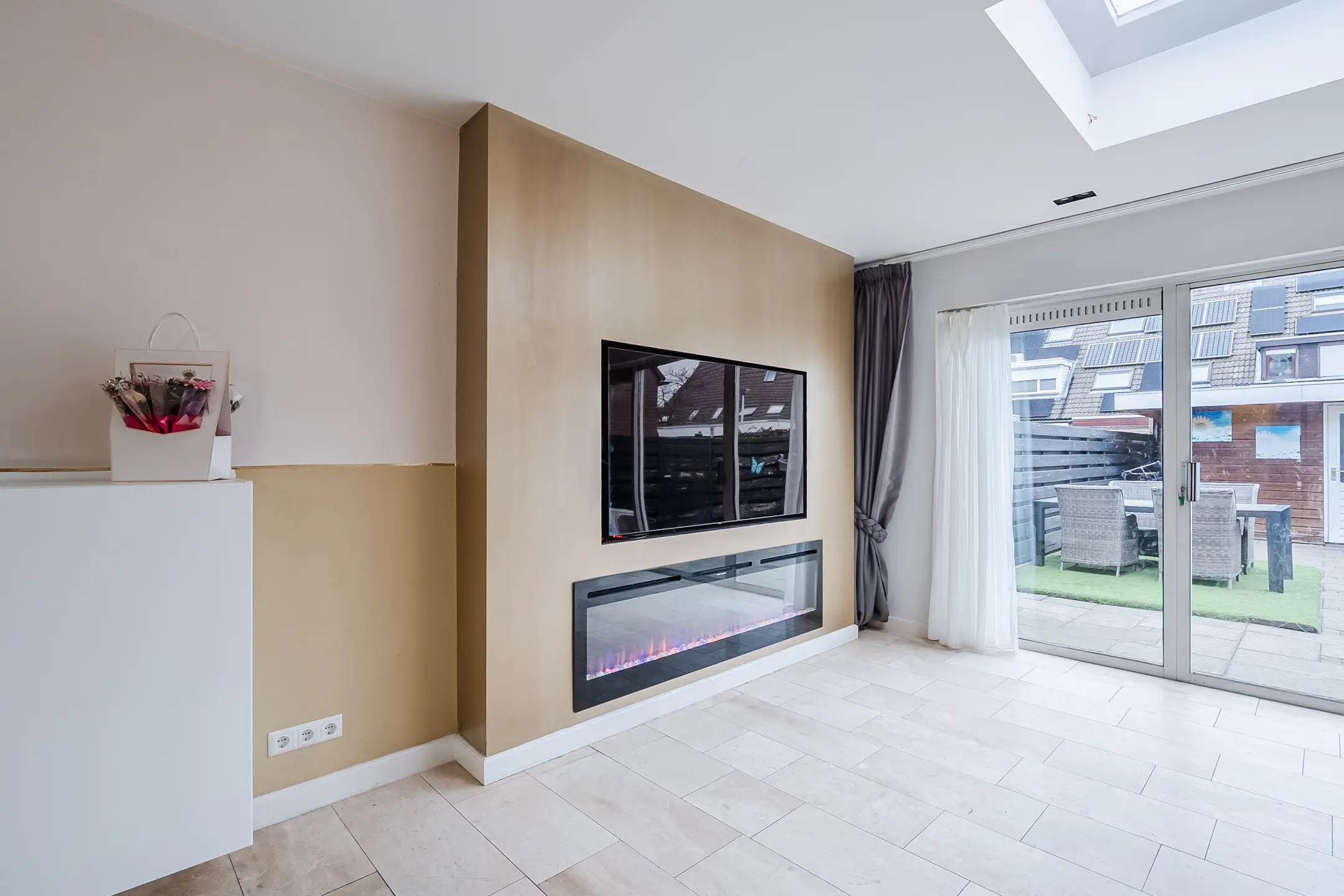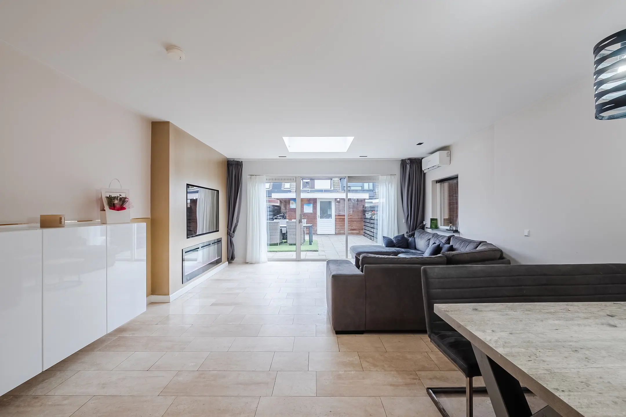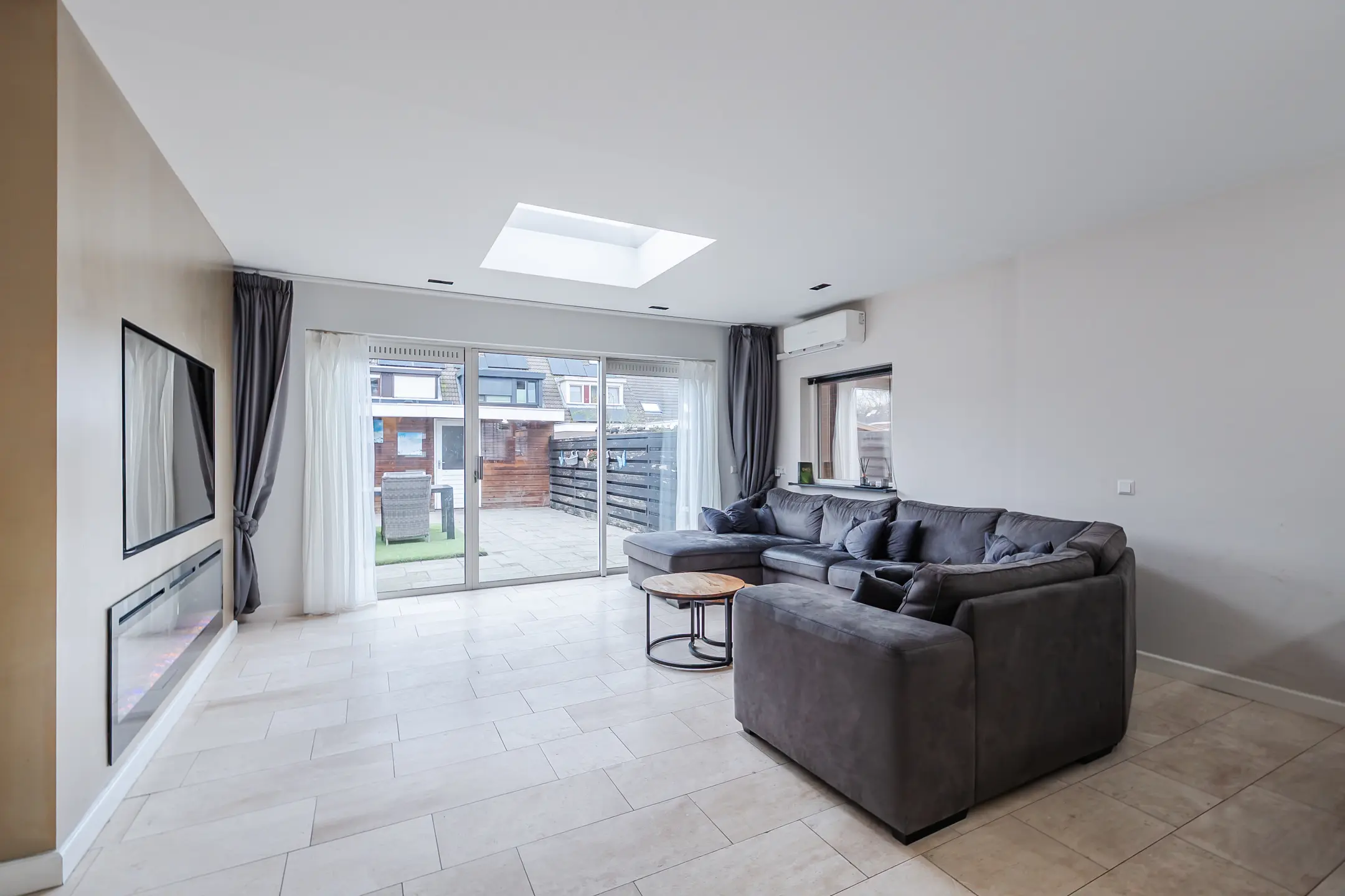 Vergrote woonkamer door uitbouw: De woonkamer is vergroot door een uitbouw, wat zorgt voor een grotere en lichtere leefruimte. De lichtkoepel in de uitbouw zorgt voor veel natuurlijk licht.