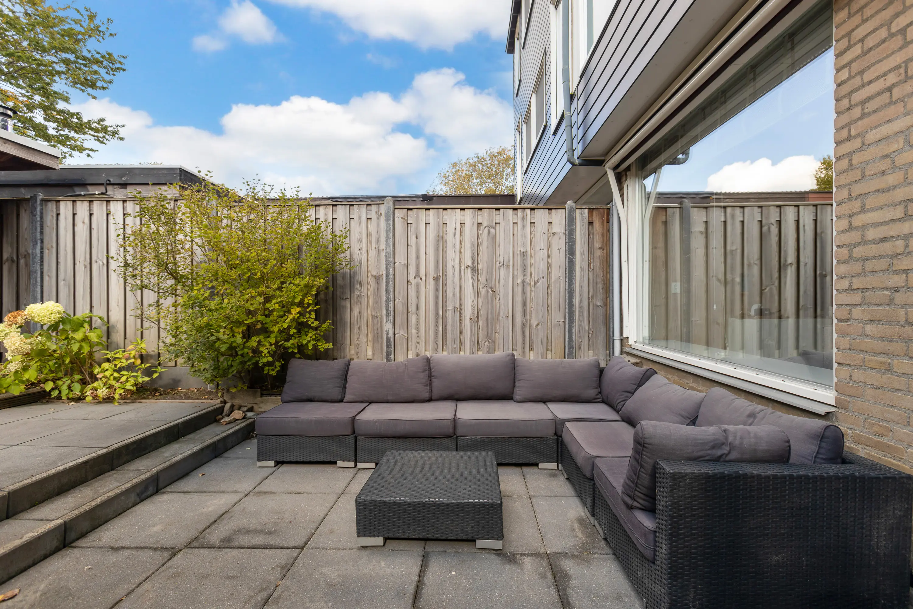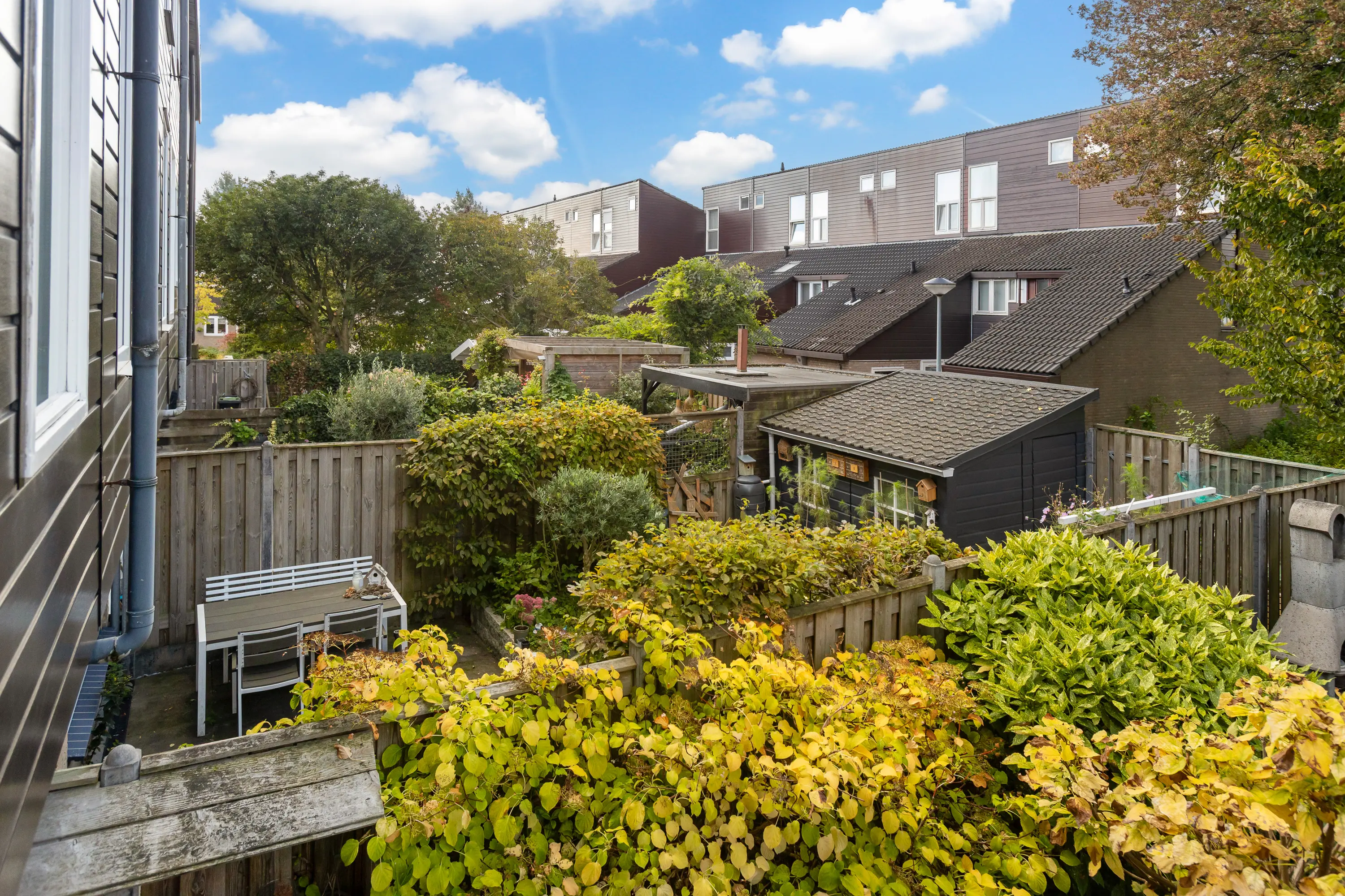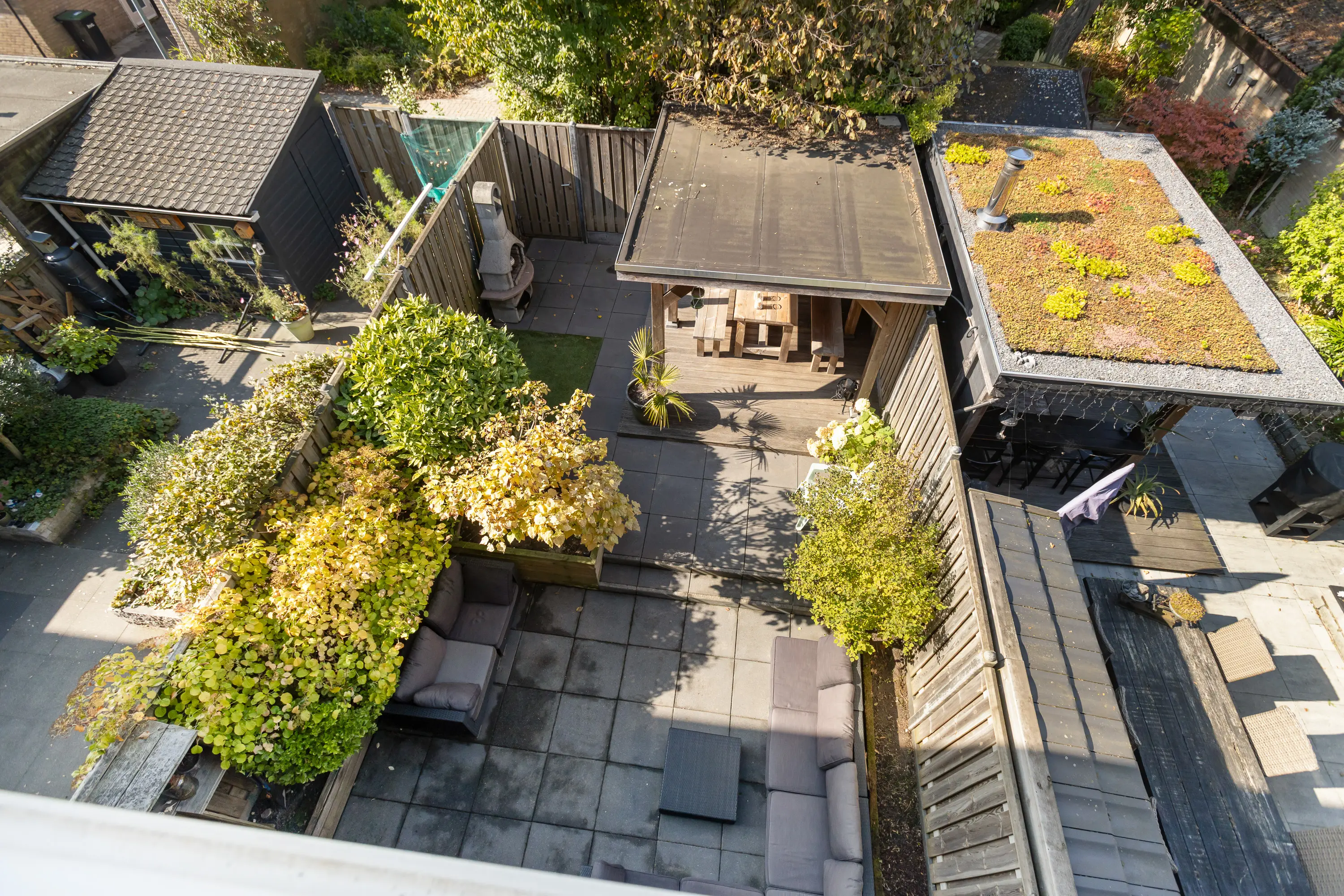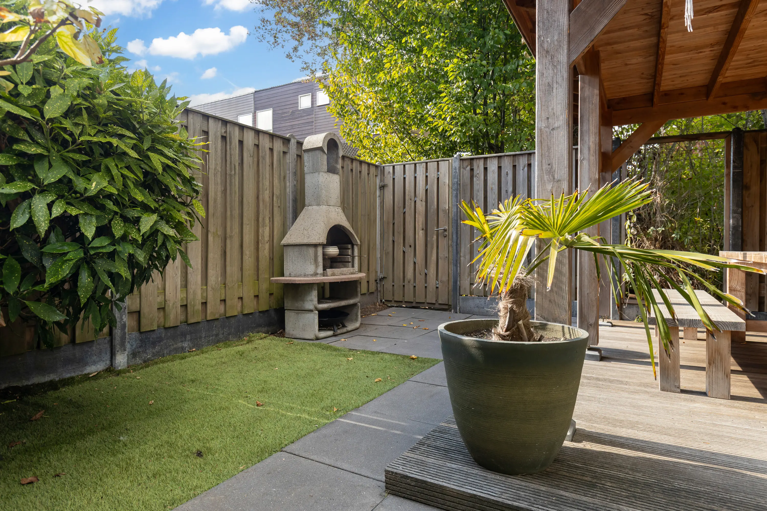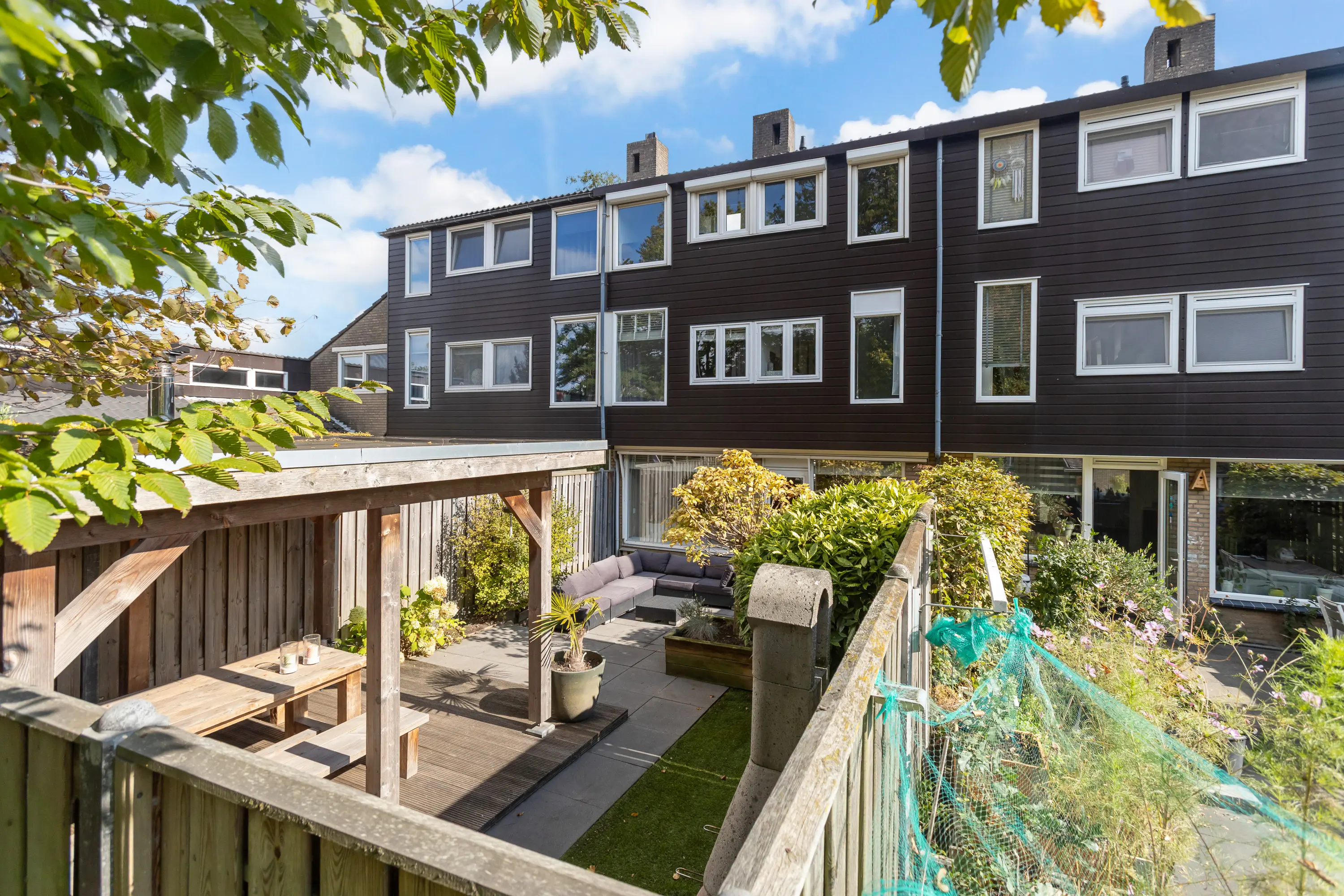 - Achtertuin met loungeoverkapping, op het westen;