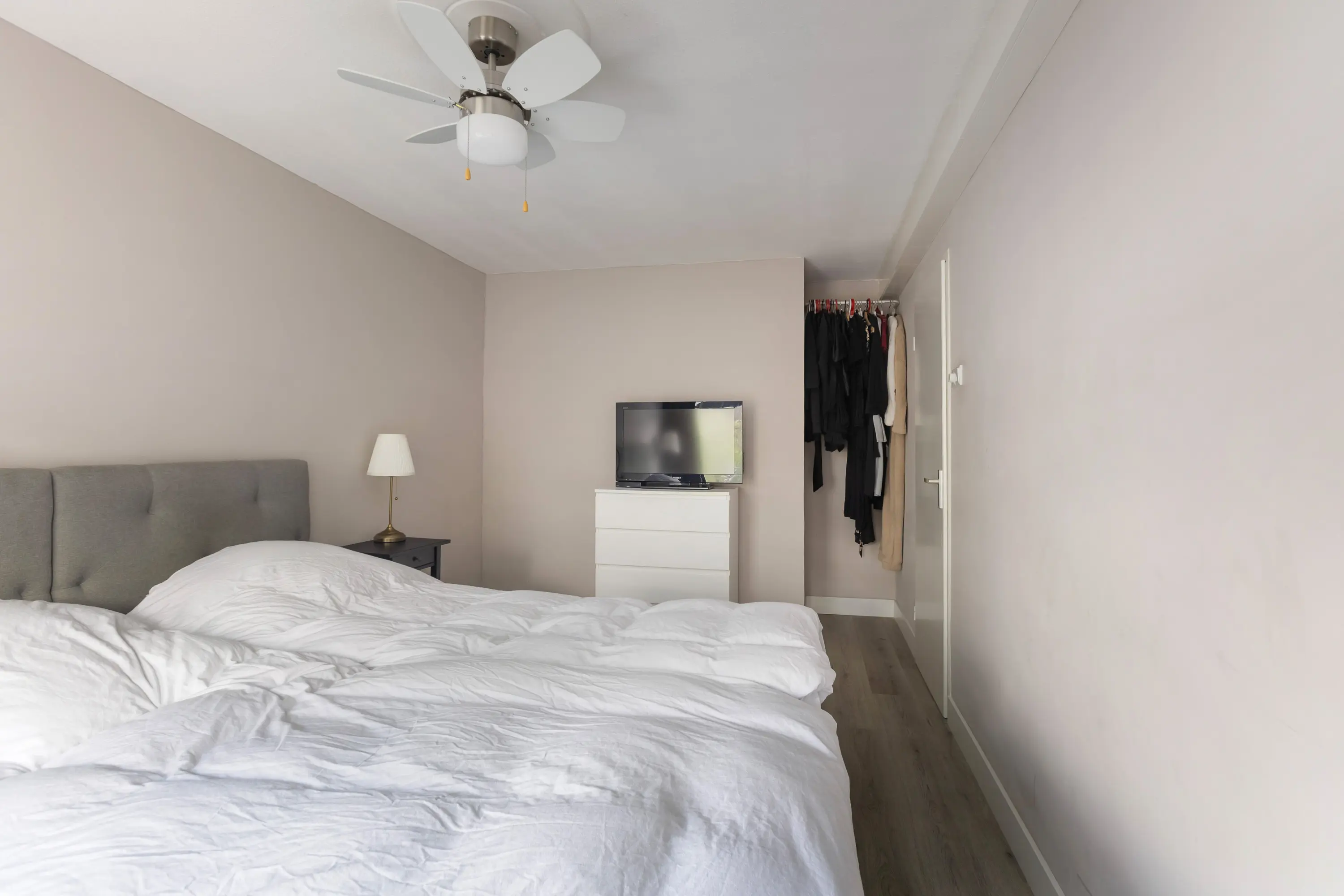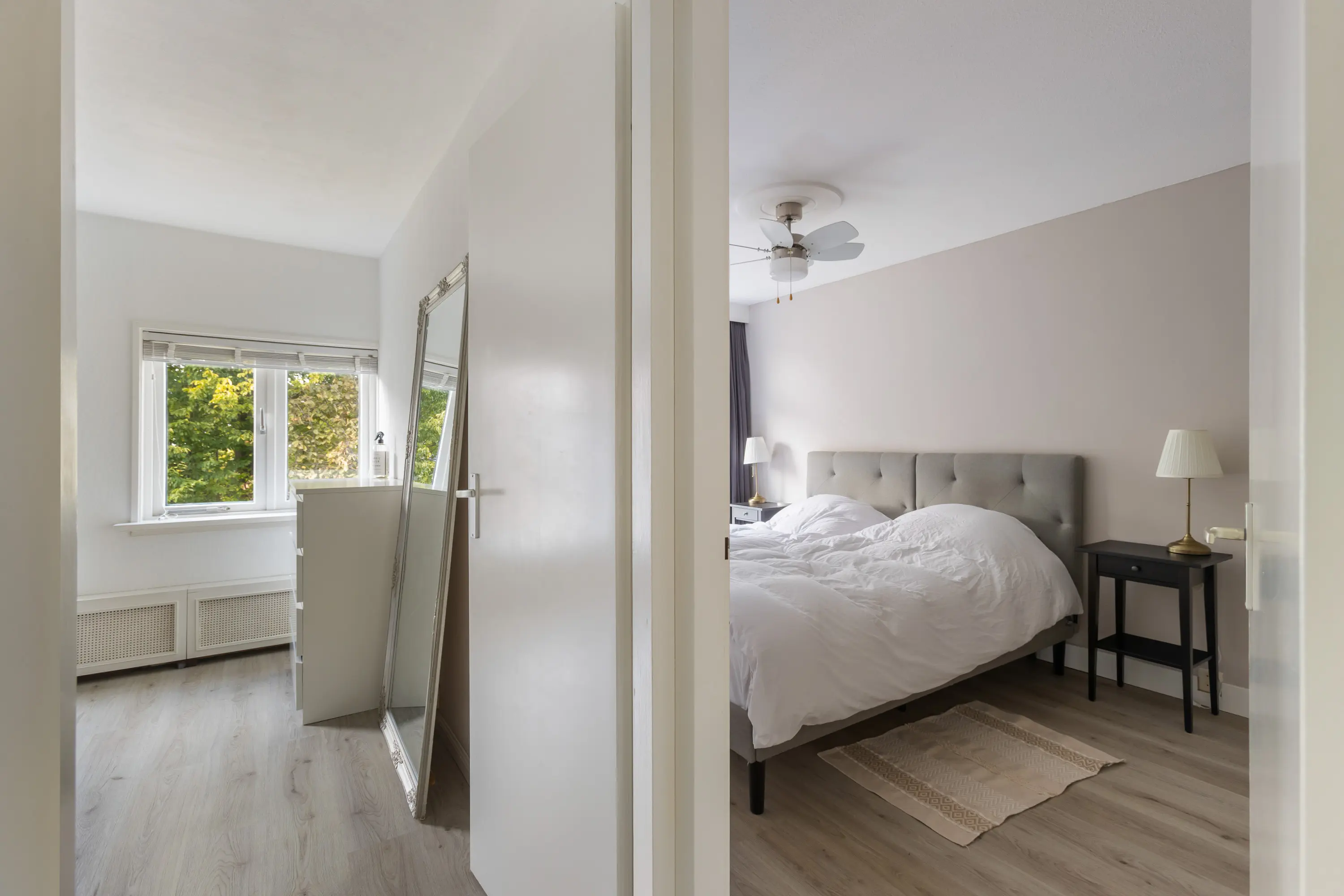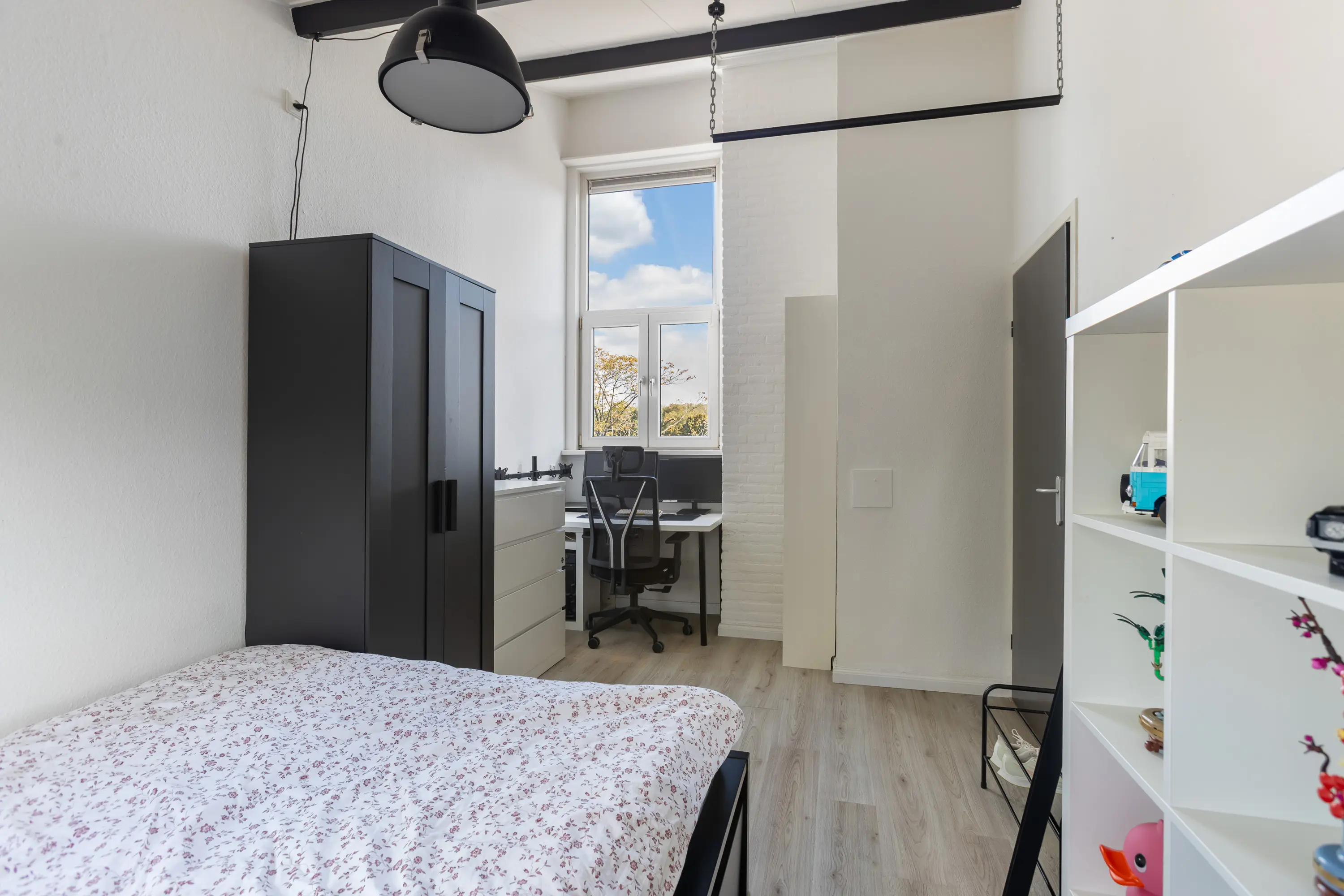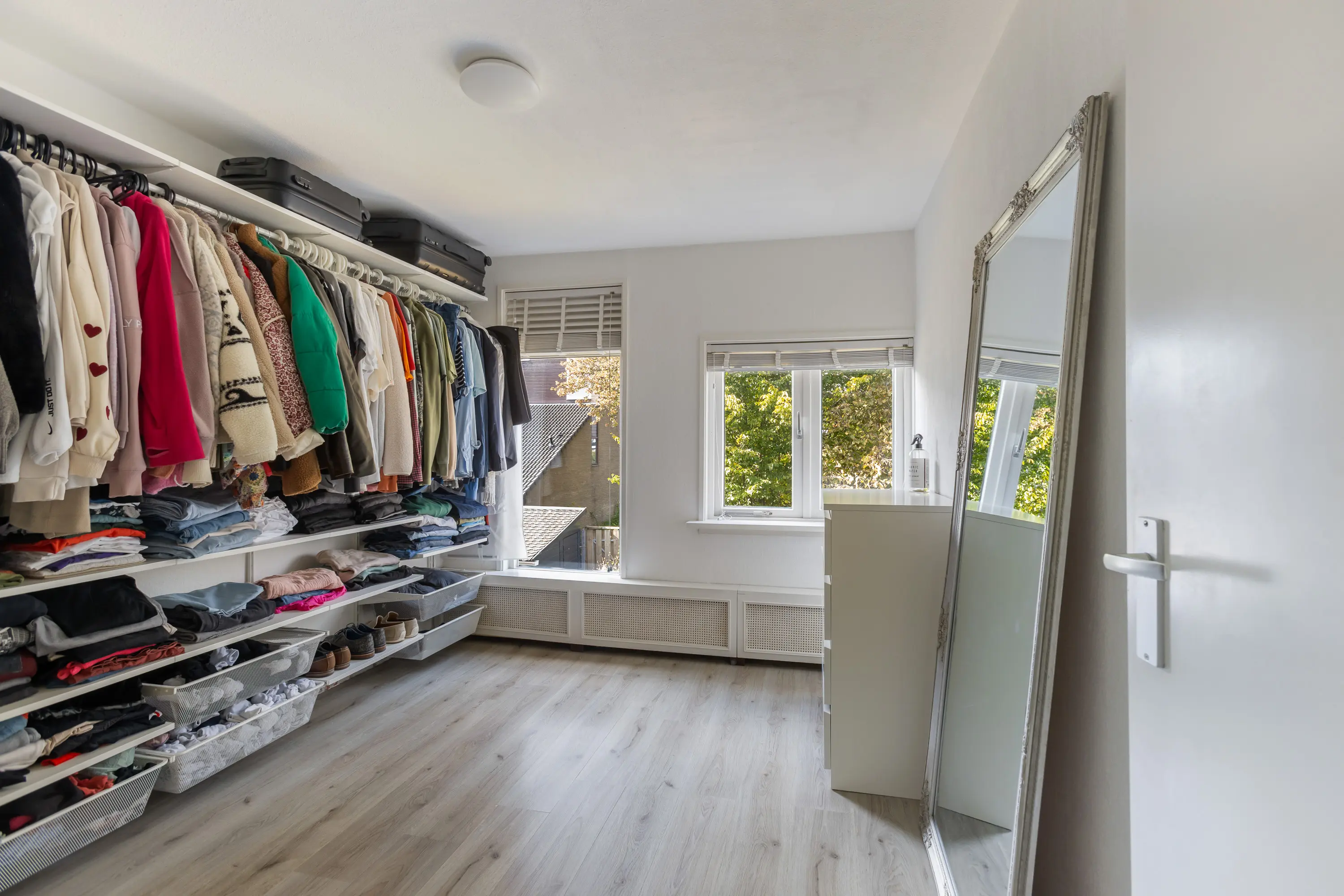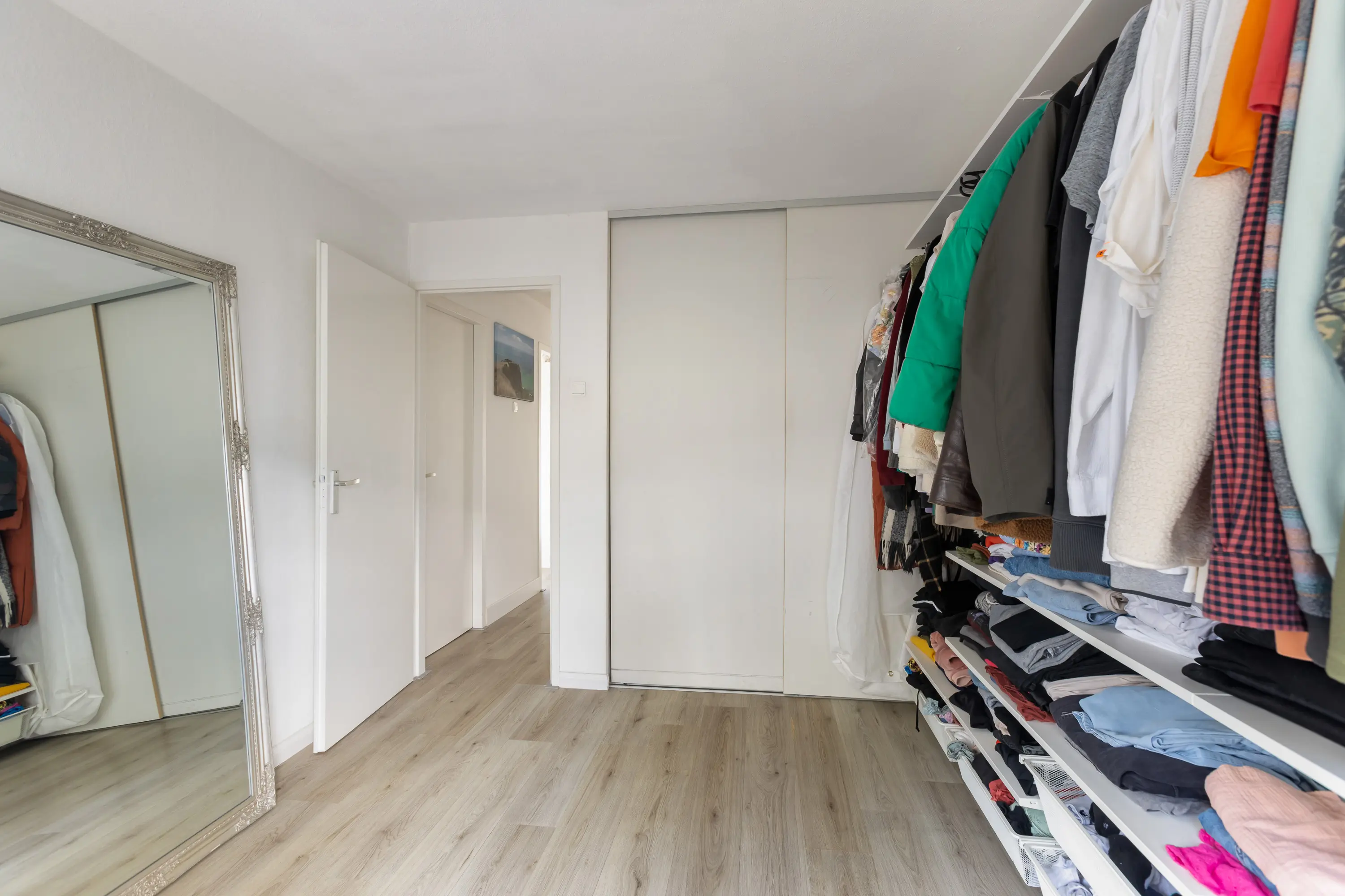 Daarnaast is er nog een slaapkamer aan de achterzijde, momenteel in gebruik als grote inloopkast, maar ook uitstekend geschikt als extra slaapkamer of werkkamer.