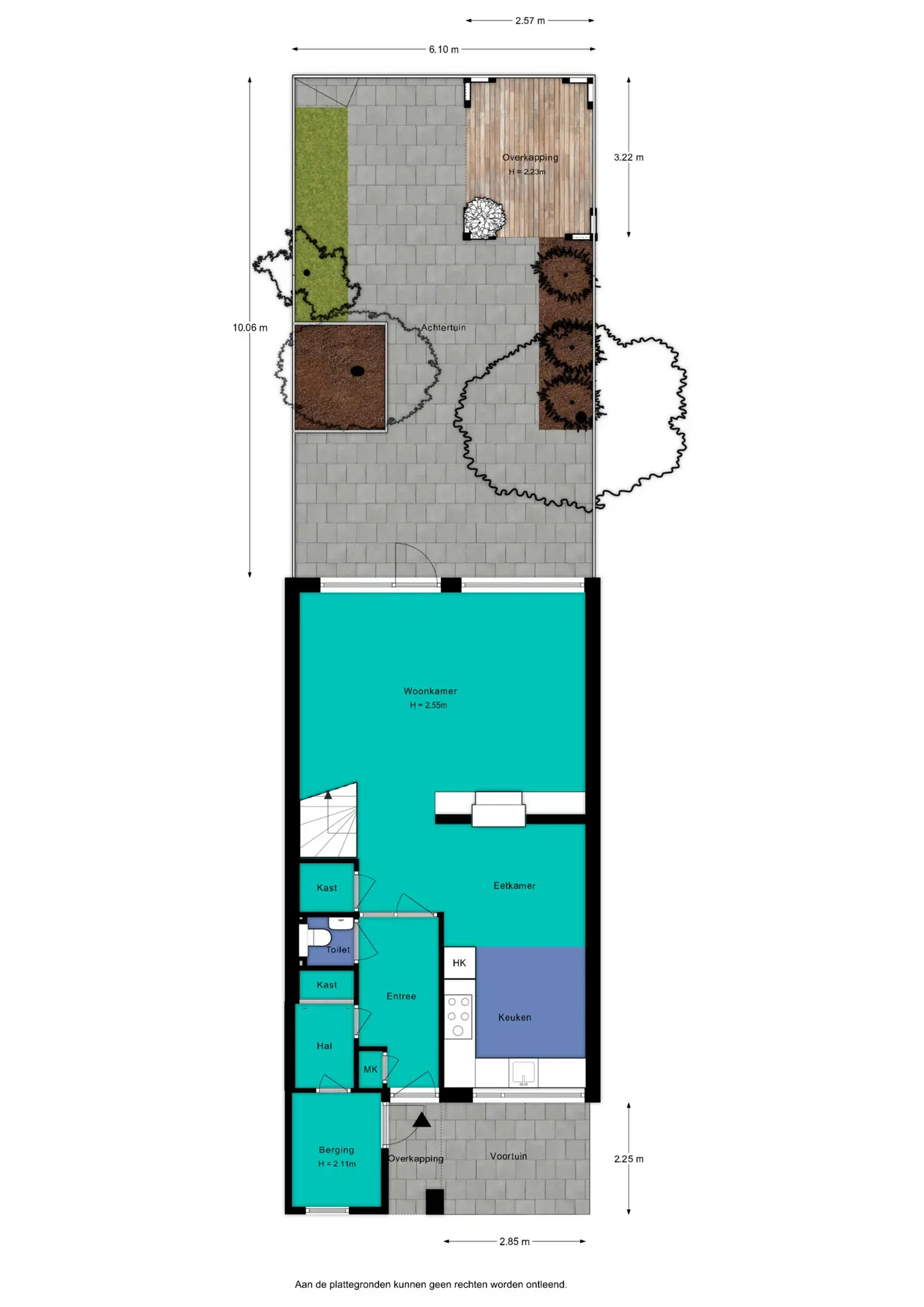 De achtertuin is verzorgd en biedt een fijne buitenruimte, gelegen op het westen. Er is een overkapping aanwezig en de tuin is eenvoudig bereikbaar via een achterom, wat extra gemak en privacy biedt.
