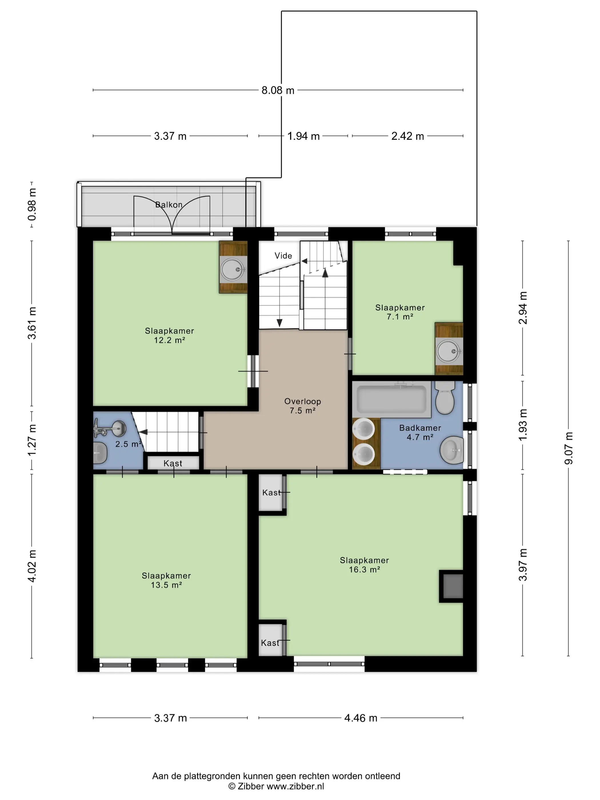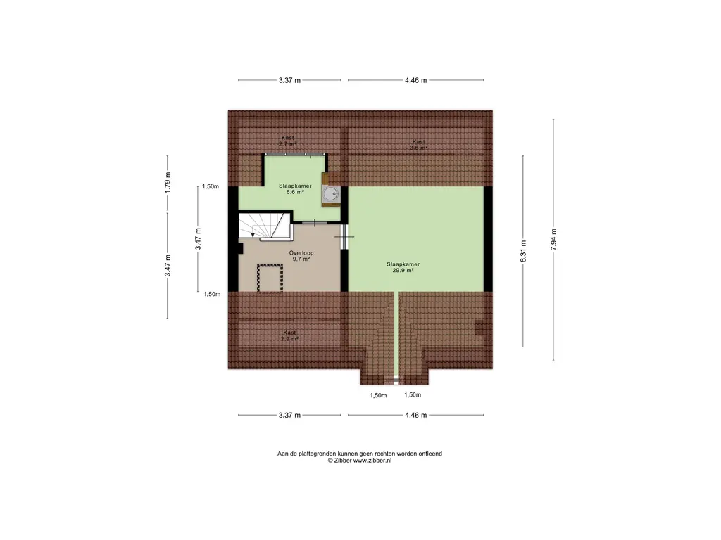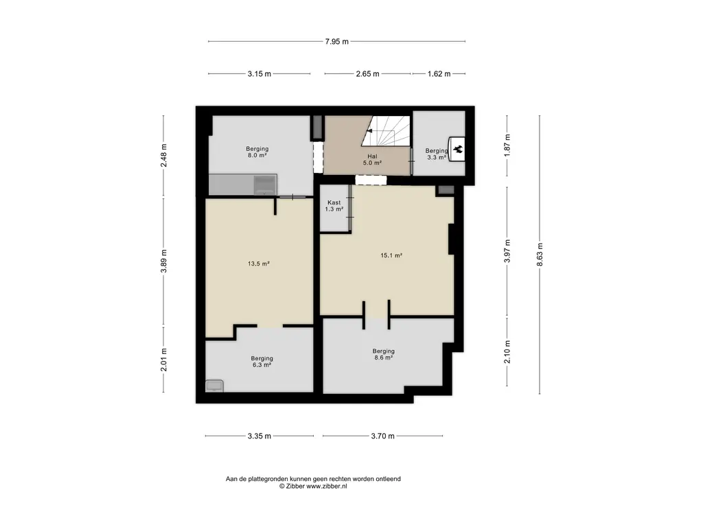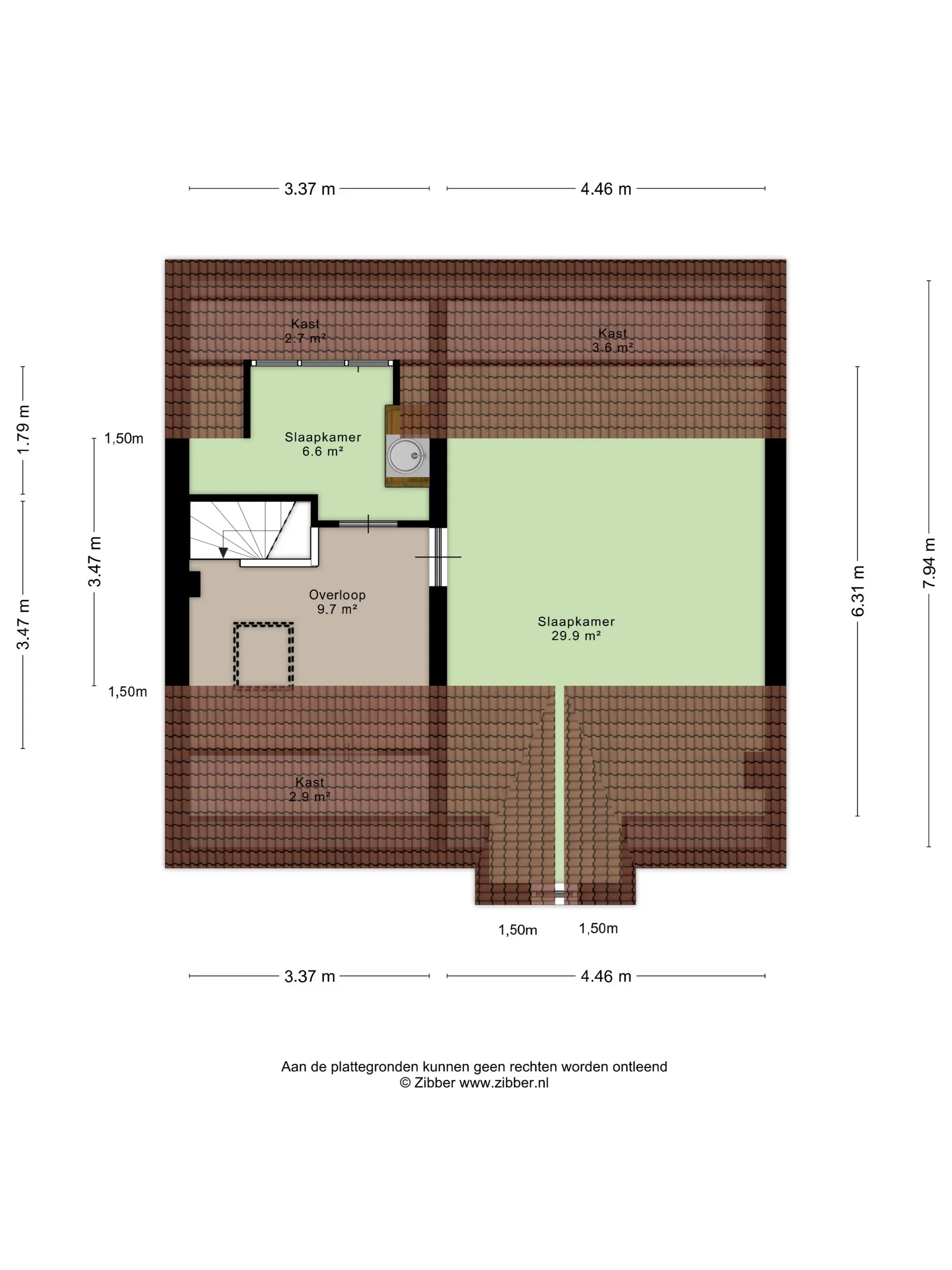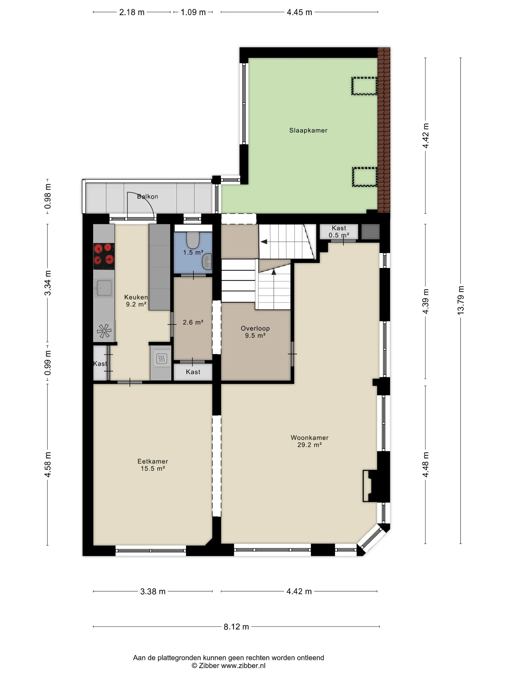 oppervlakte eerste verdieping en onderhuis; 202 m2 (66 m2 inpandige ruimte)