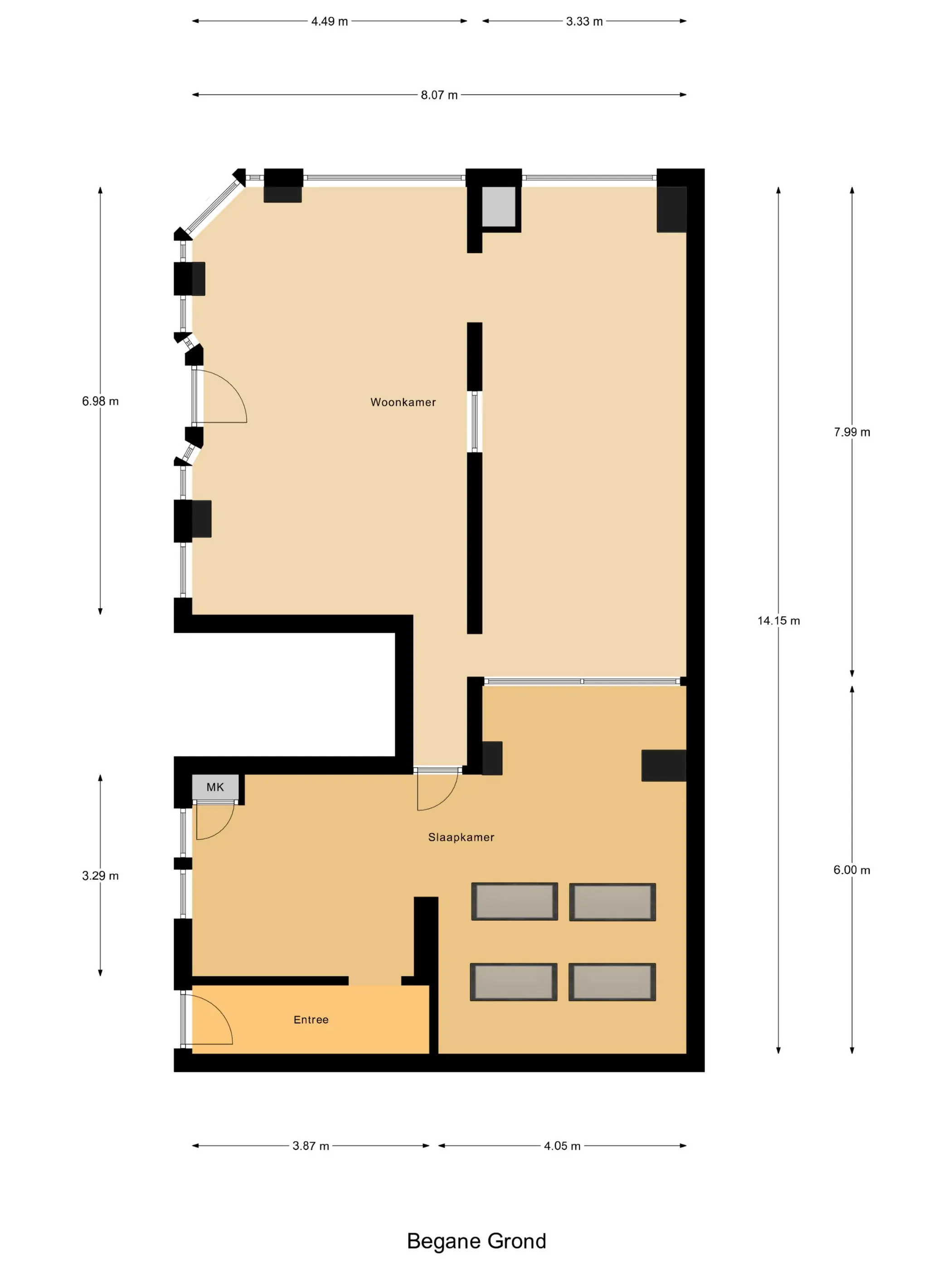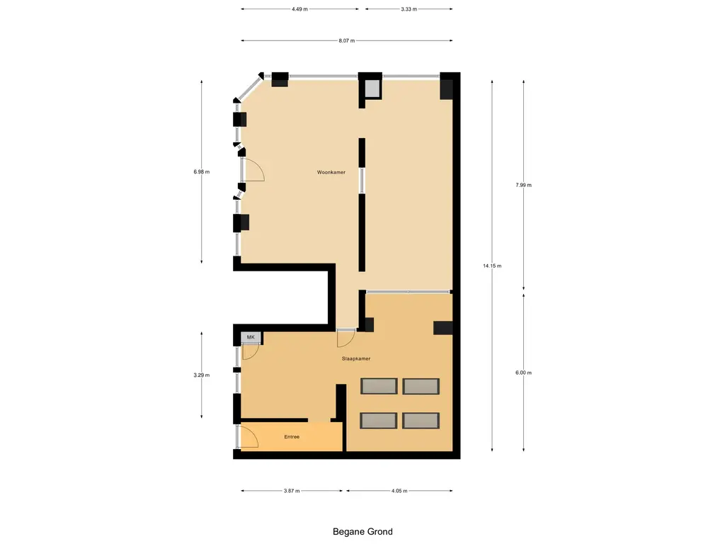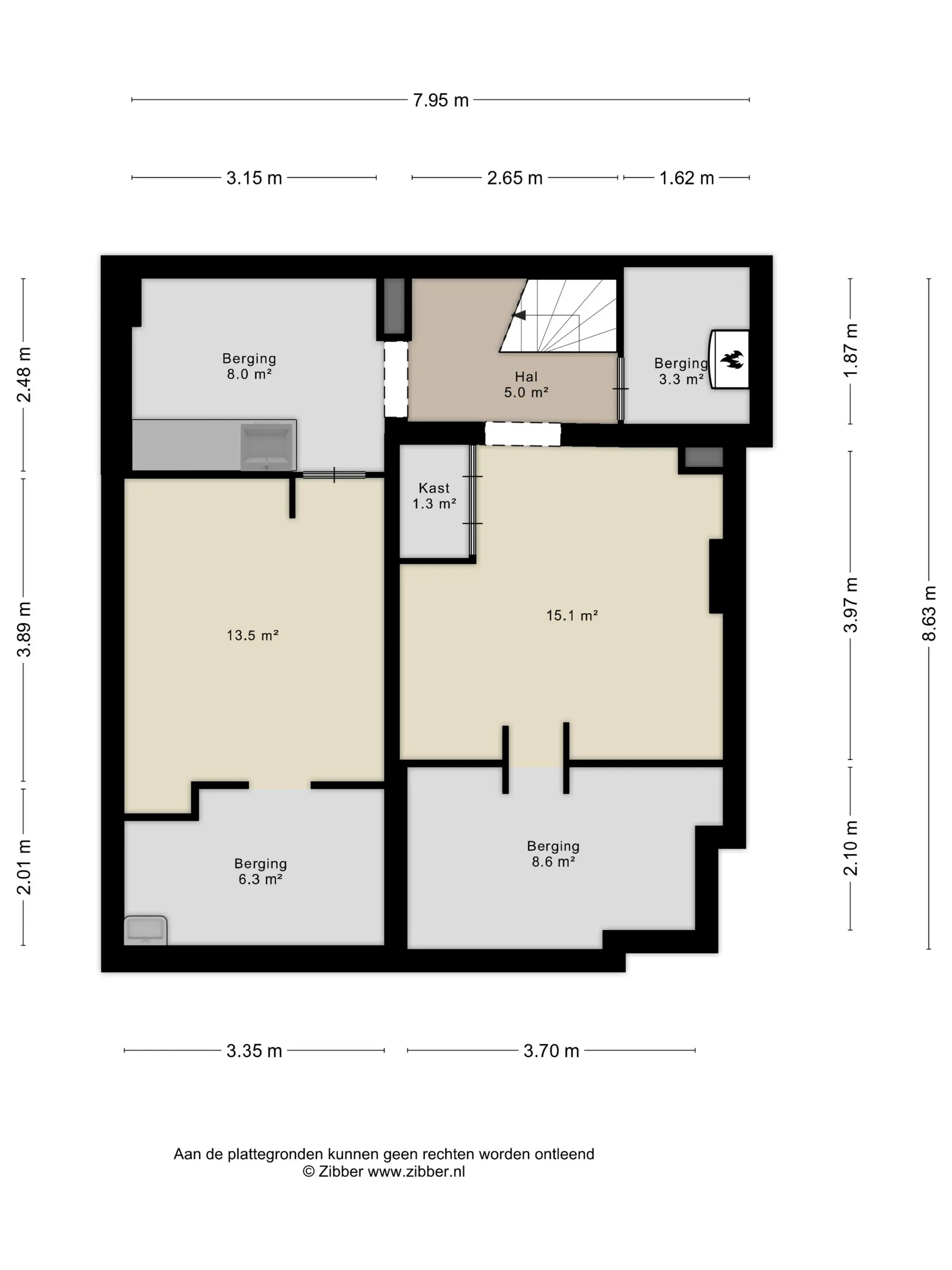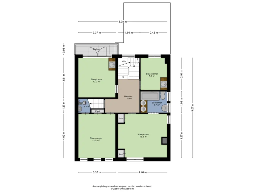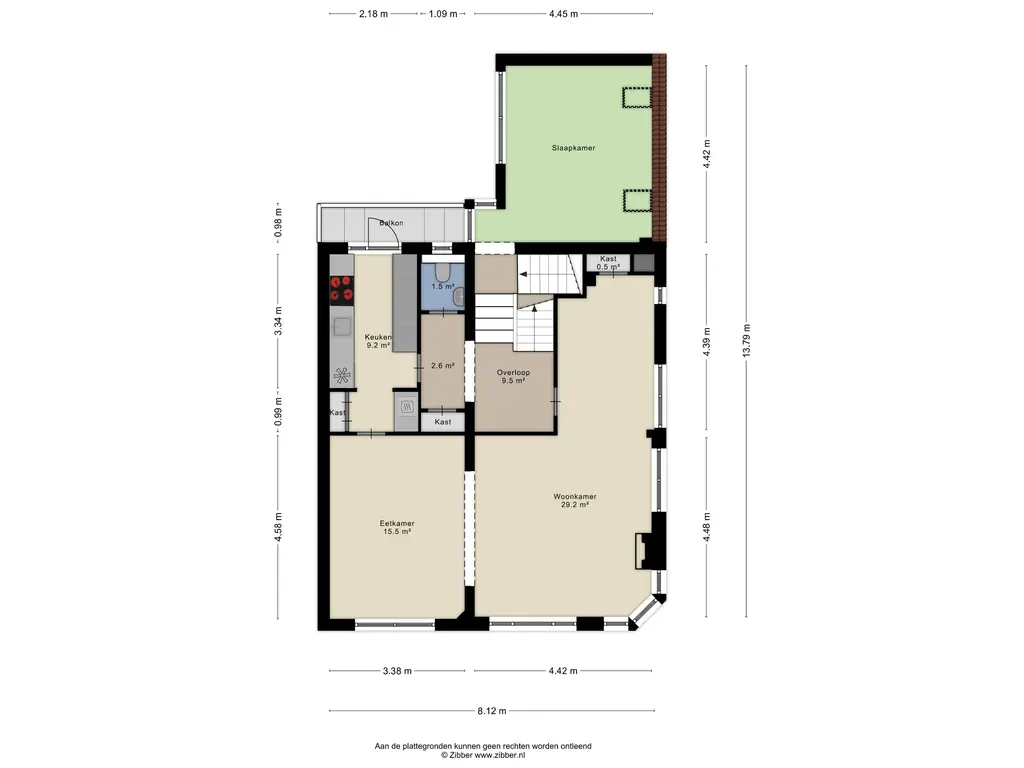 oppervlakte eerste verdieping en onderhuis; 202 m2 (66 m2 inpandige ruimte)