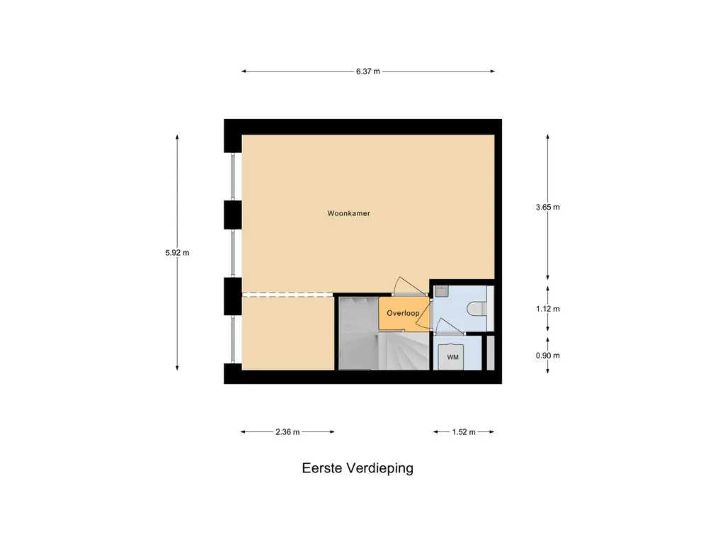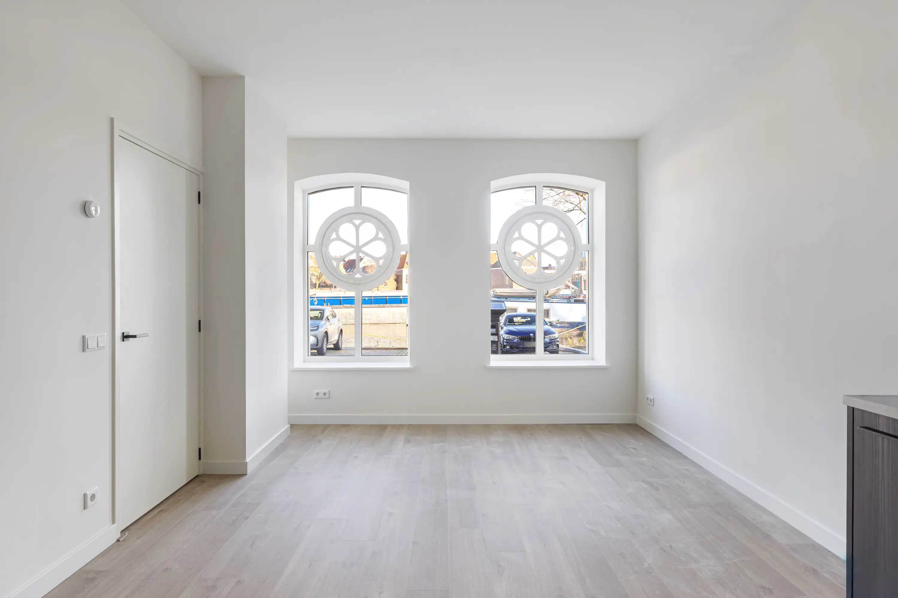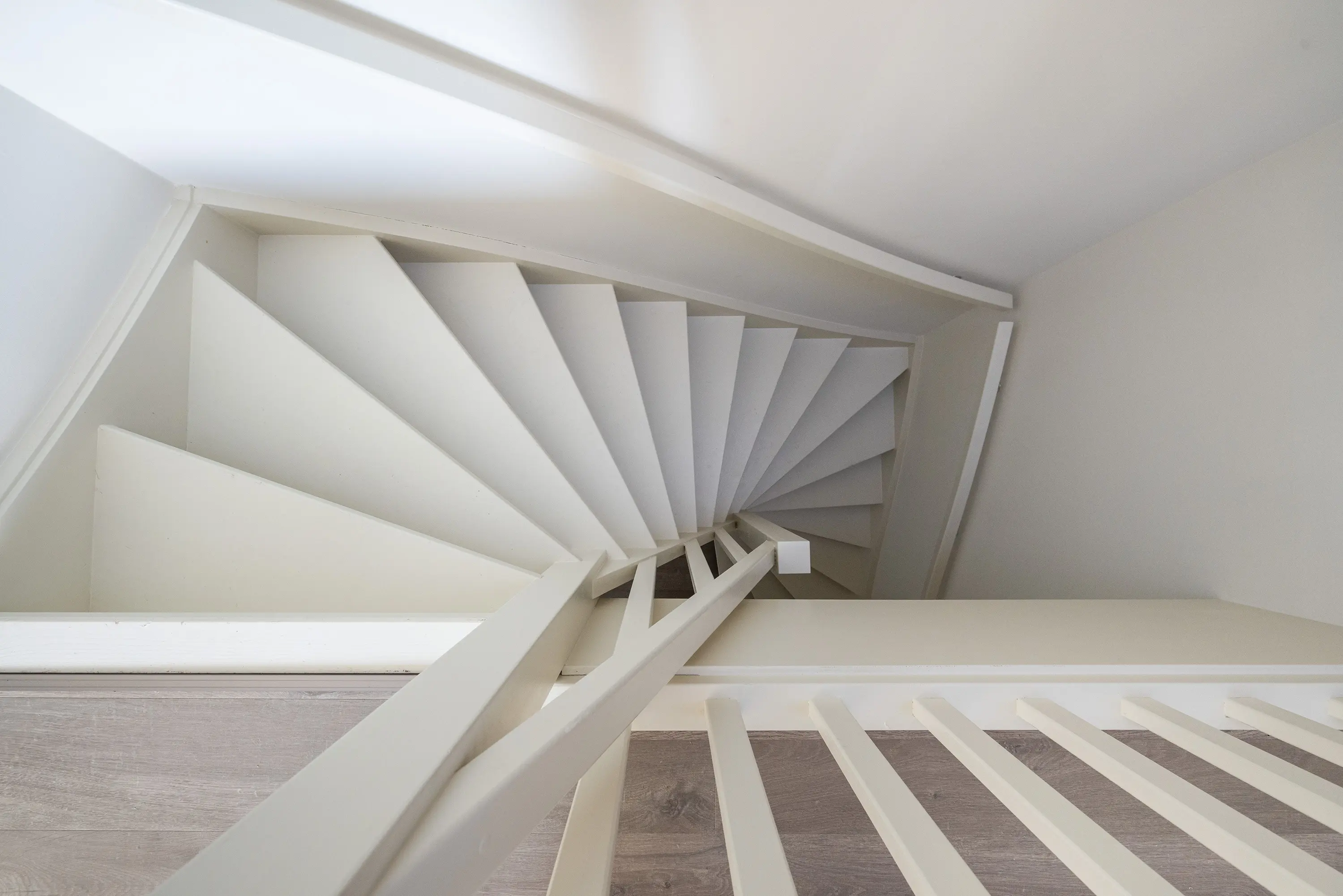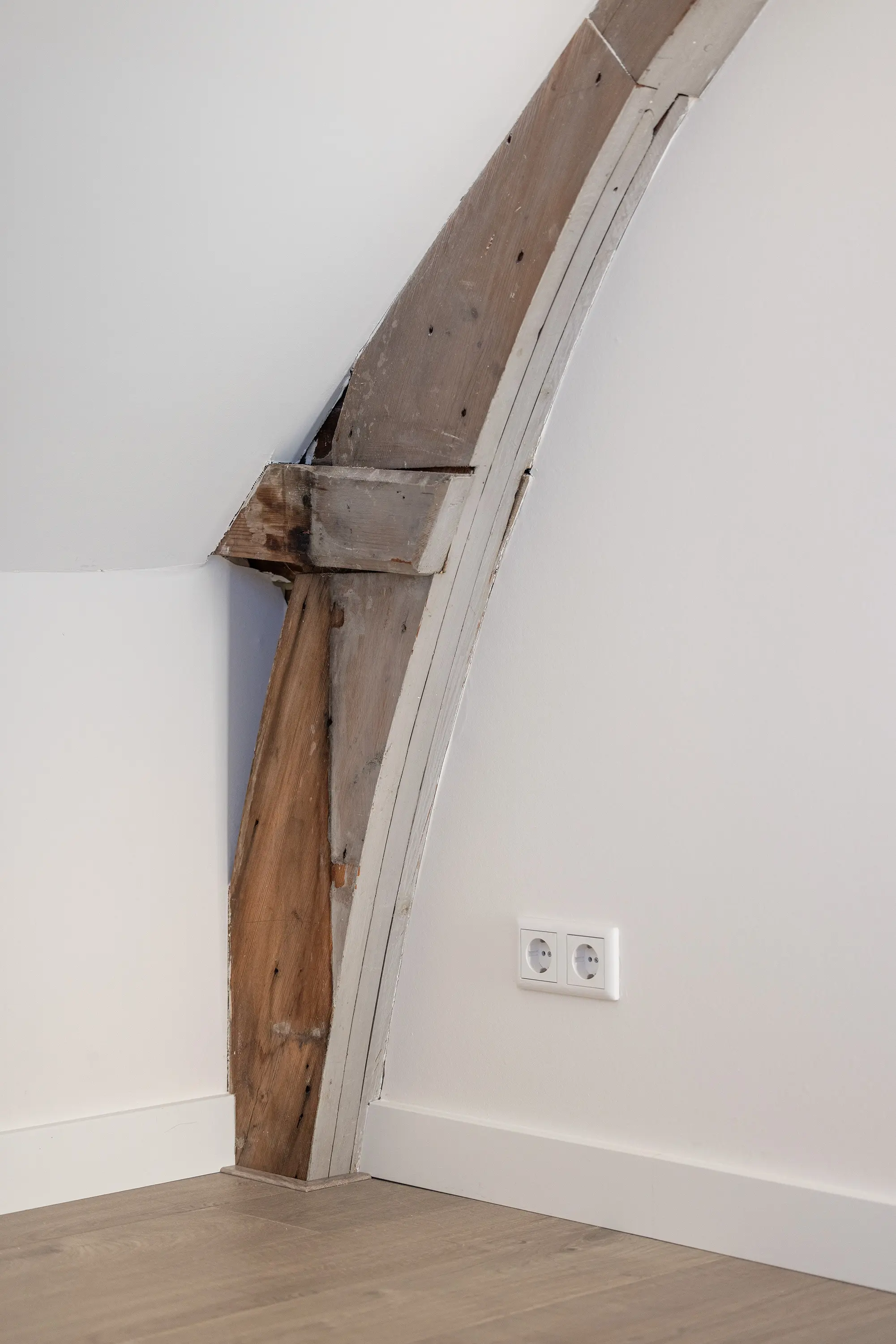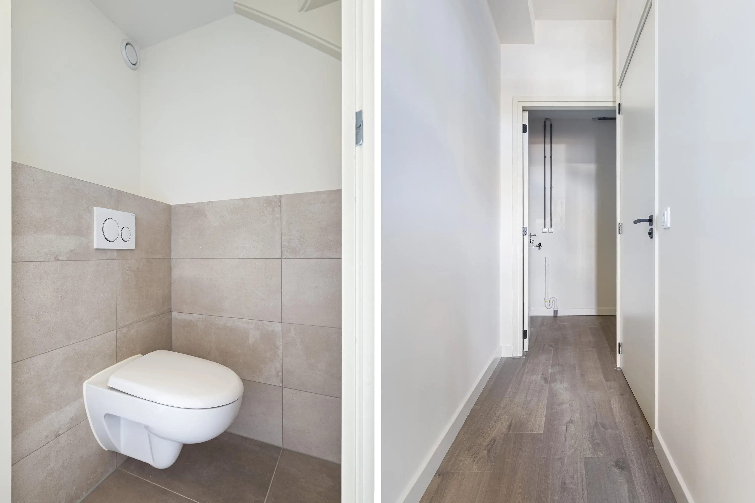 De warme houtlookvloer geeft de ruimte extra sfeer en vormt de perfecte basis voor koken, eten en gezellig samenzijn. Achter de entree vind je een praktische binnenberging, terwijl de bijzondere ronde raampartijen deze verdieping een uniek karakter en een extra dimensie geven.