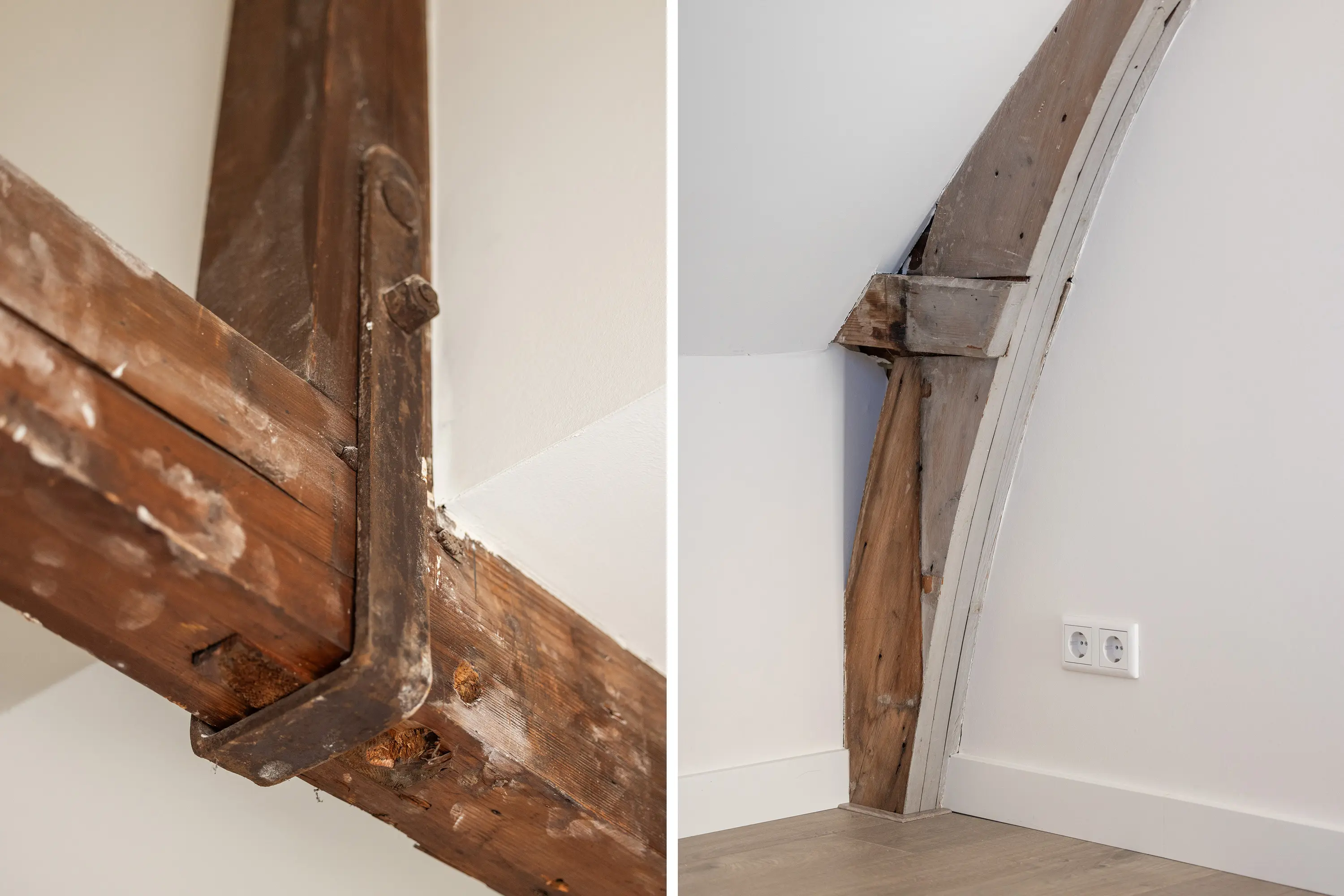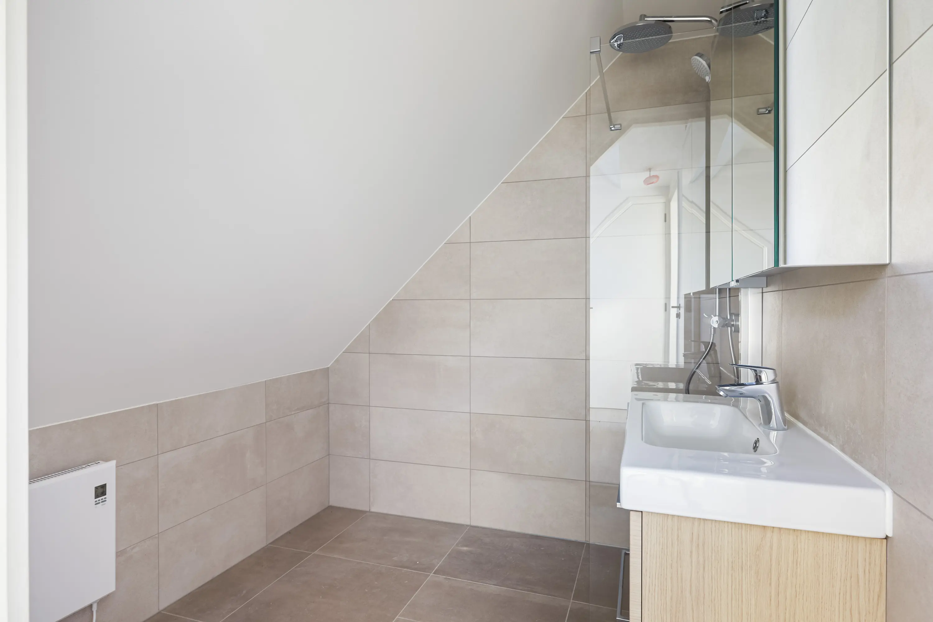 De tweede verdieping is via de trap bereikbaar. Hier bevinden zich twee sfeervolle slaapkamers en de badkamer, voorzien van wastafel, douche en tweede toilet.