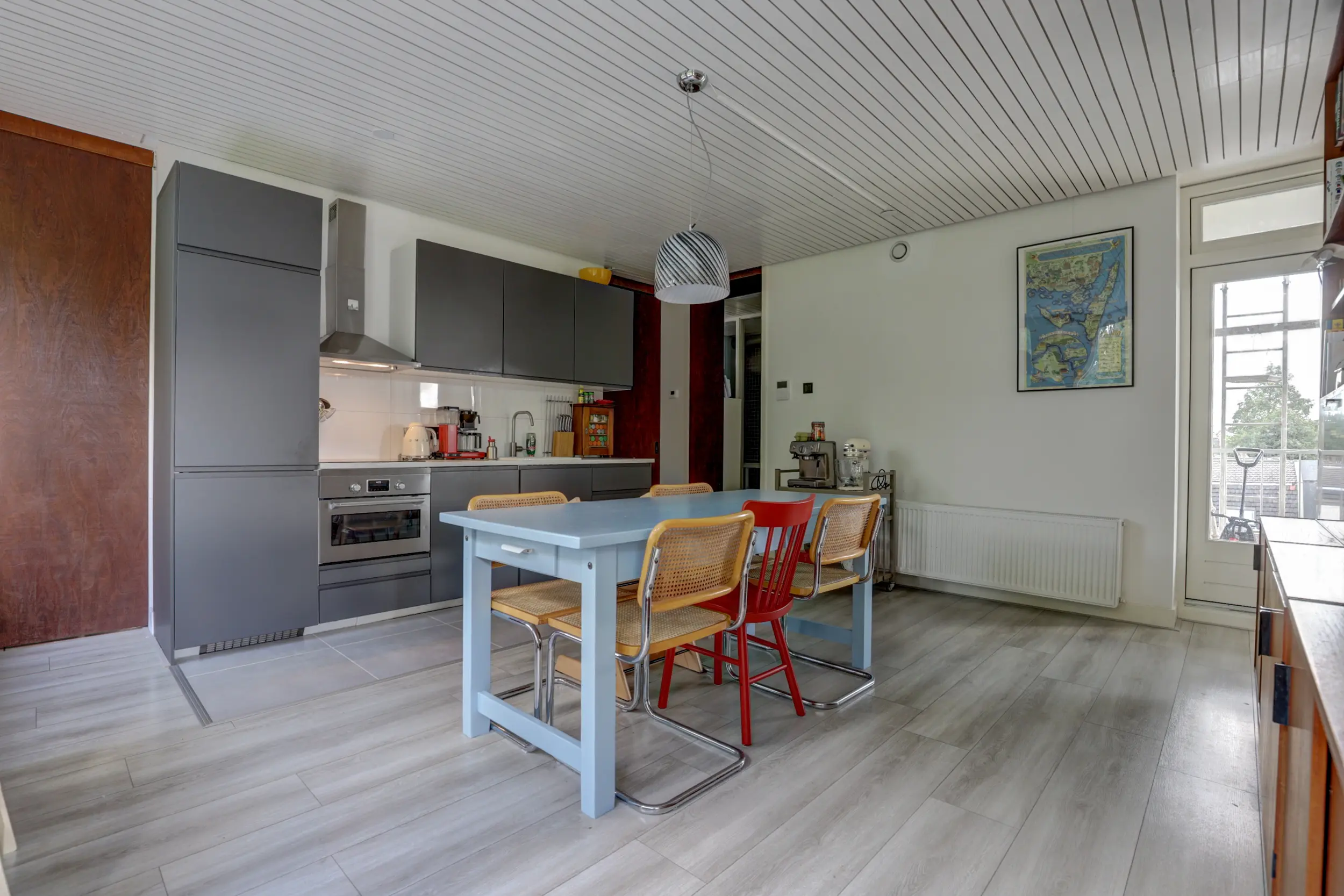 De woonkeuken is royaal opgezet met een rechte opstelling en diverse inbouwapparatuur, en biedt voldoende plek voor een grote eettafel. Perfect voor gezellige diners en lange avonden samen.