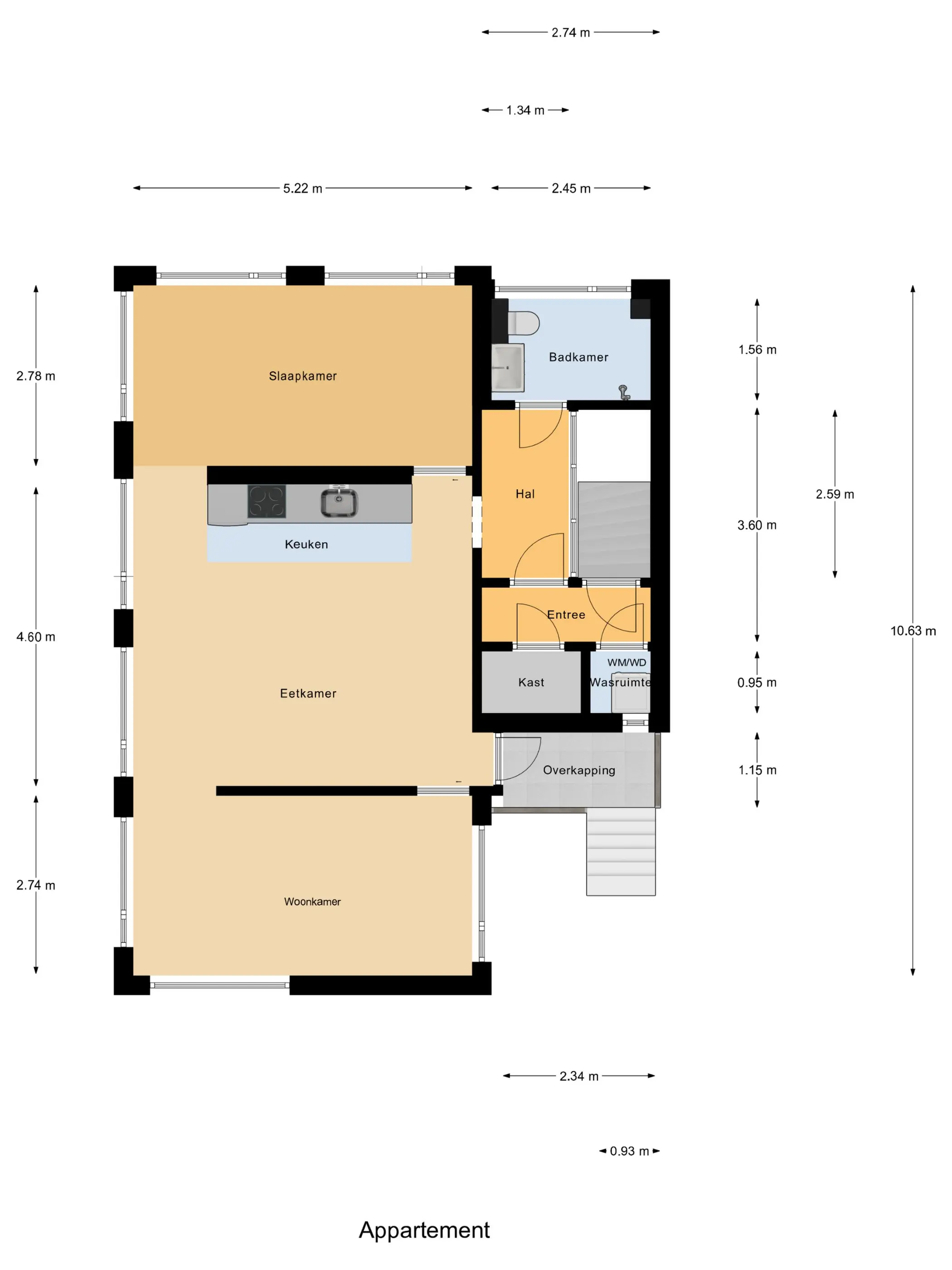 De woning beschikt over een lichte woonkamer, een ruime eetkamer met keuken, een comfortabele slaapkamer en een nette badkamer. Vanuit de eetkamer stap je via een loopdeur naar buiten, waar een trap je leidt naar het royale dakterras. Dit zonneterras is een echte eyecatcher: perfect voor een loungeset, eettafel of gewoon om te genieten van de zon en het uitzicht.