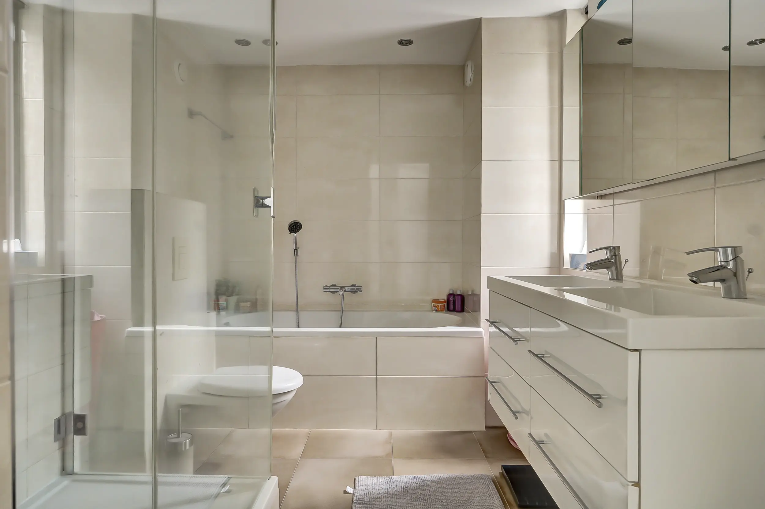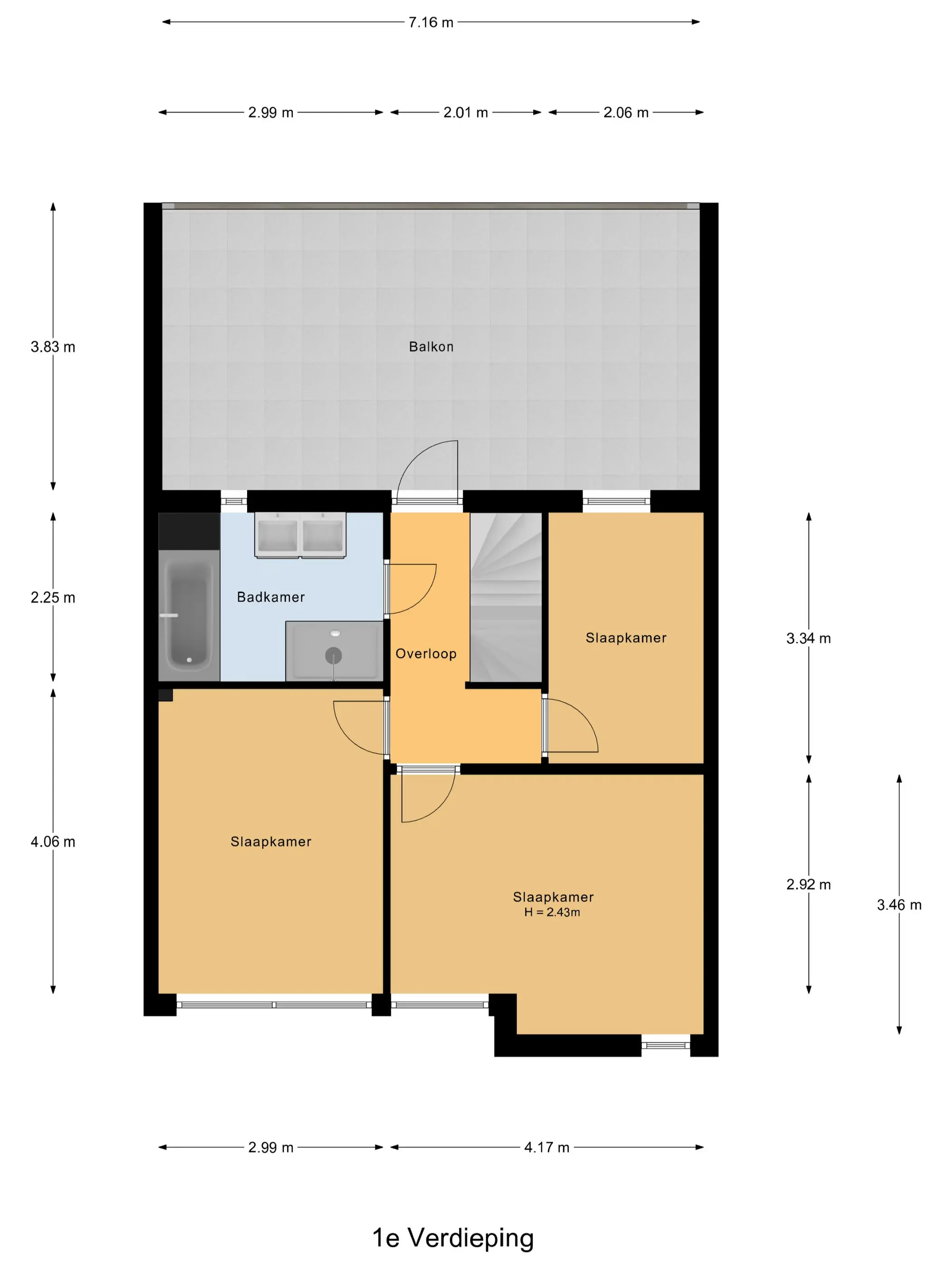 De centrale overloop geeft toegang tot drie volwaardige slaapkamers – perfect voor een groeiend of druk gezin. De badkamer is volledig uitgerust met een douche, ligbad, zwevend toilet en dubbele wastafel: compleet en comfortabel. Een bijzonder pluspunt op deze verdieping is het riante dakterras van circa 27 m². Een heerlijke plek om je terug te trekken, te ontspannen of te genieten van het groene uitzicht.