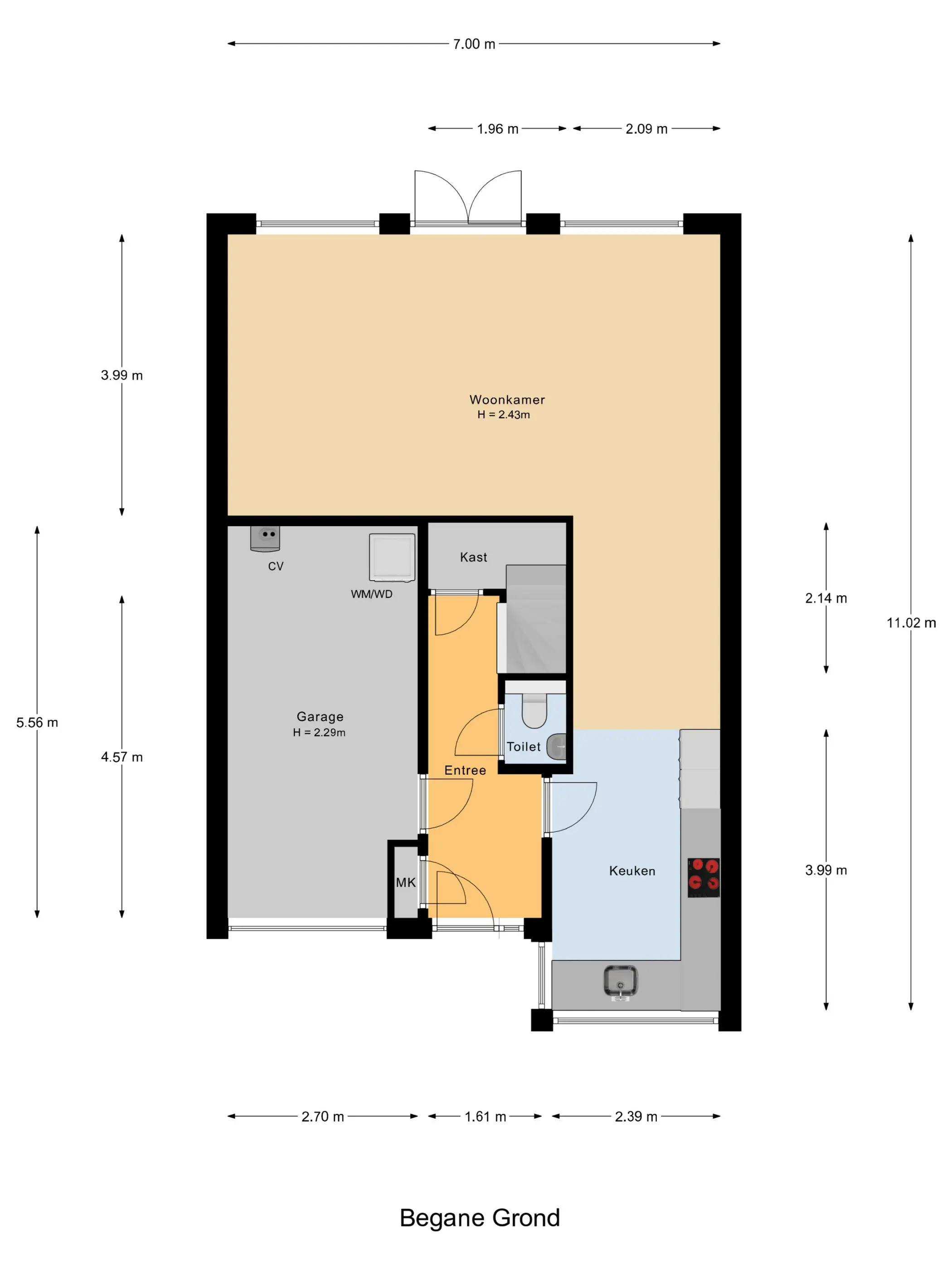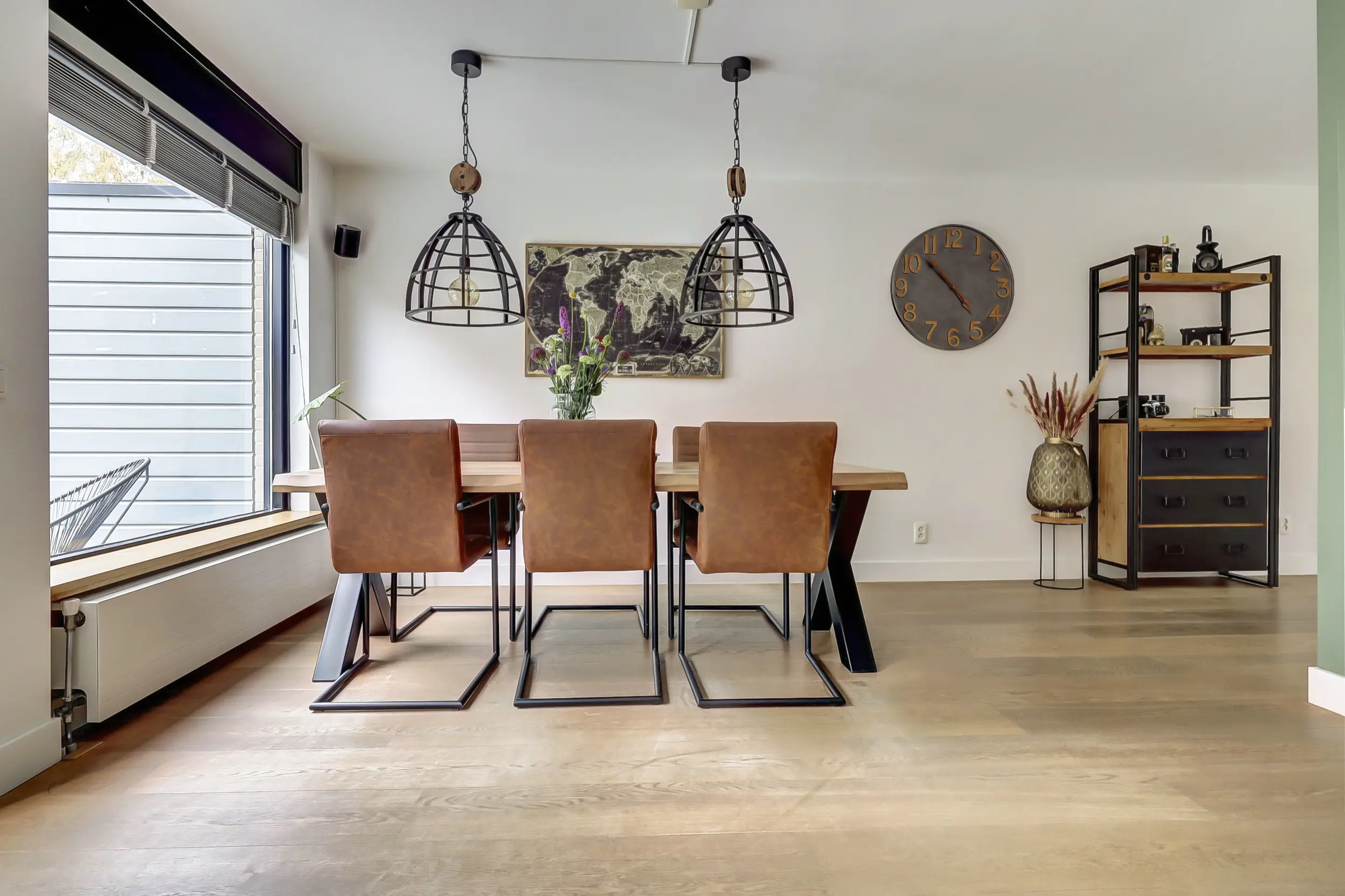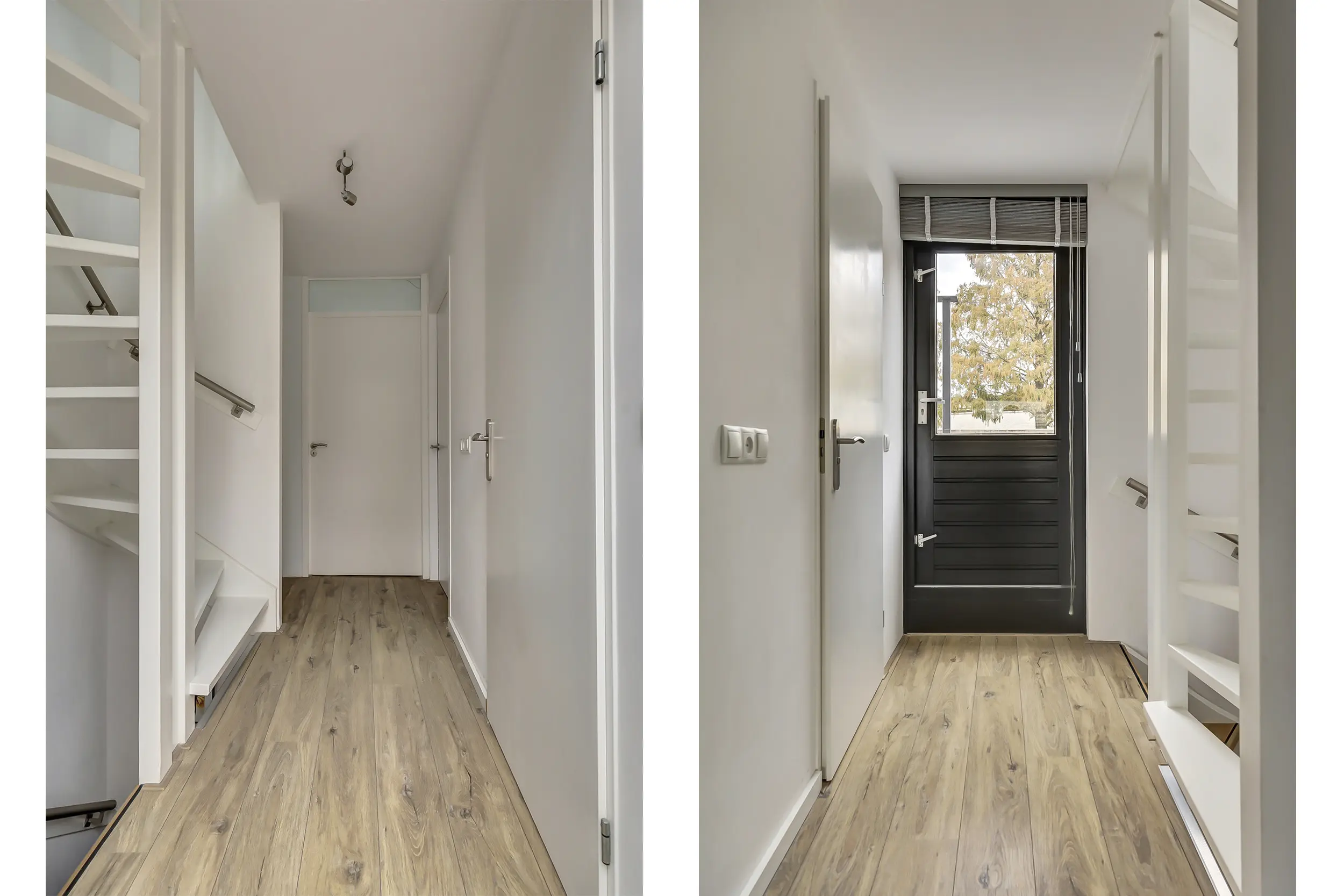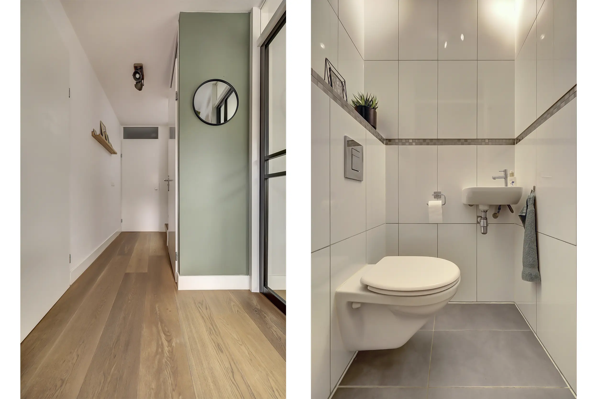 Via de heerlijke ruime entree word je direct welkom geheten in deze comfortabele woning. De hal beschikt over een volledig betegelde toiletruimte met zwevend toilet en fonteintje en biedt toegang tot de inpandige garage. Deze multifunctionele ruimte heeft niet alleen plaats voor een auto, maar herbergt ook de witgoedaansluitingen en de opstelling van de CV. Ideaal voor een praktische woonindeling.