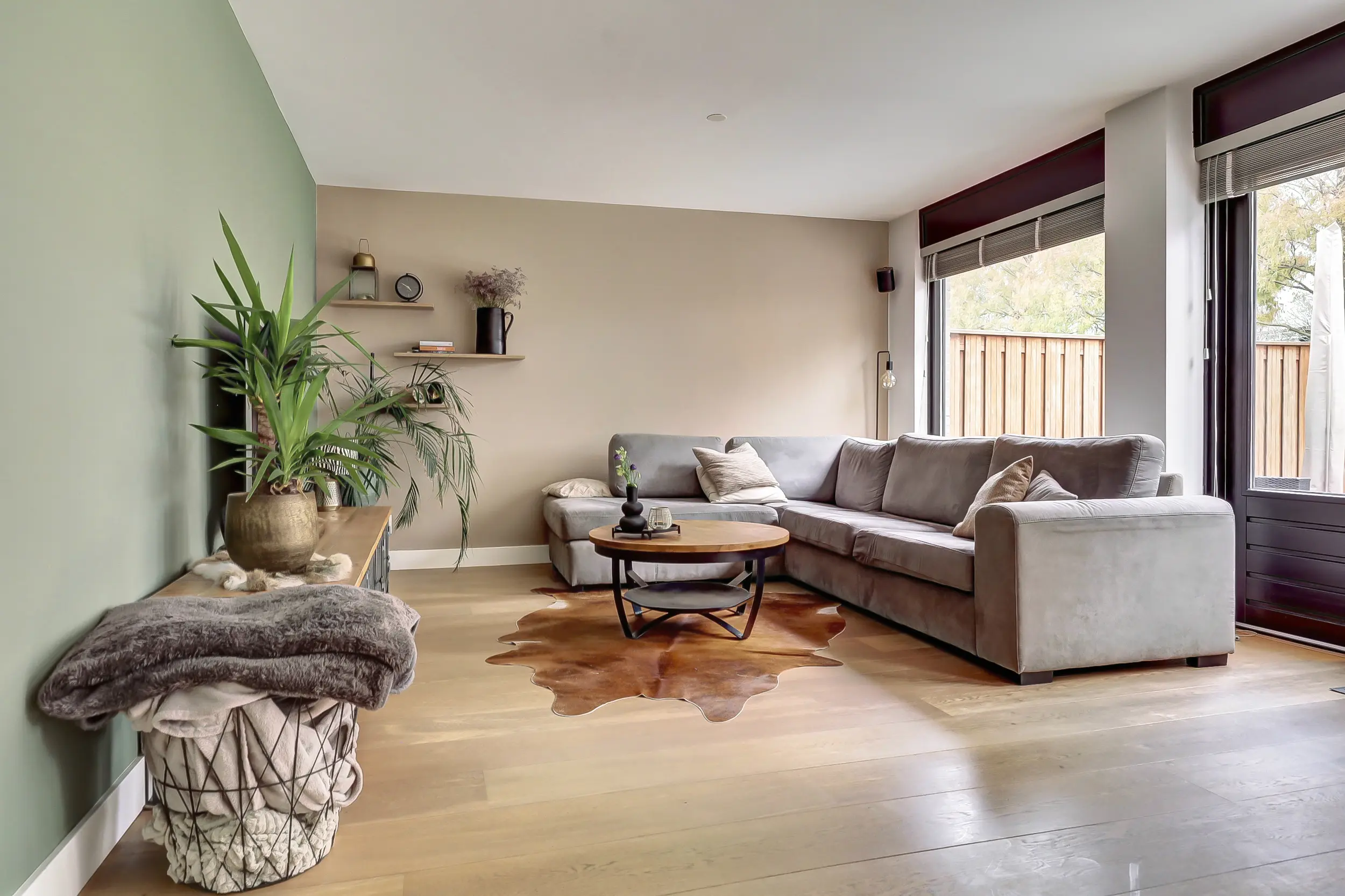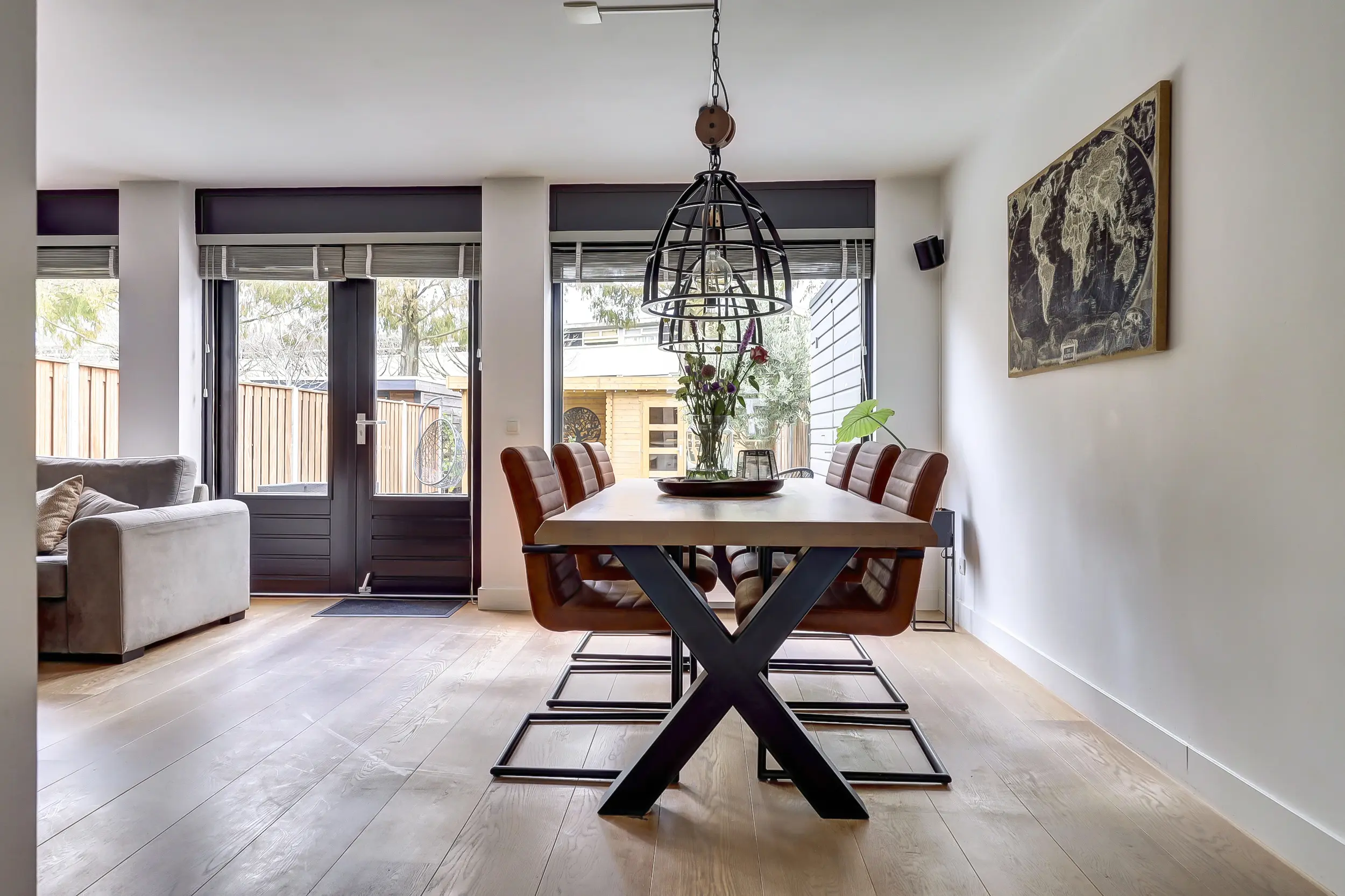 De tuingerichte woonkamer is een absolute eyecatcher. Met een breedte van maar liefst 7 meter en grote glaspartijen ontstaat een ongekend gevoel van ruimte en licht. De houten vloer over de gehele begane grond geeft het geheel een warme en hoogwaardige uitstraling.
