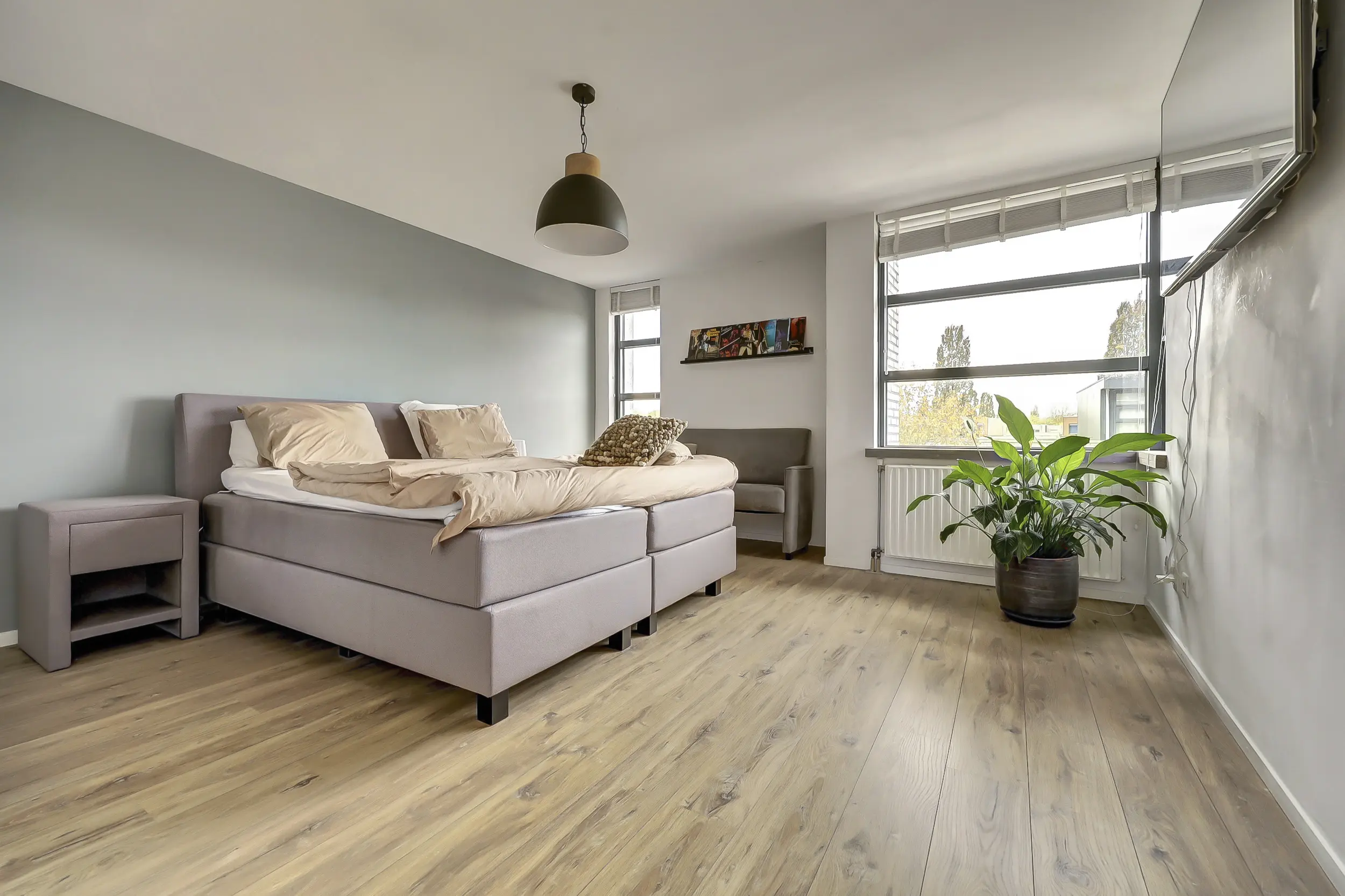 Hier is een royale master suite gecreëerd: een oase van rust en ruimte. Mocht jouw gezinssituatie daarom vragen, dan is deze verdieping eenvoudig op te delen in twee afzonderlijke slaapkamers. Flexibiliteit ten top.