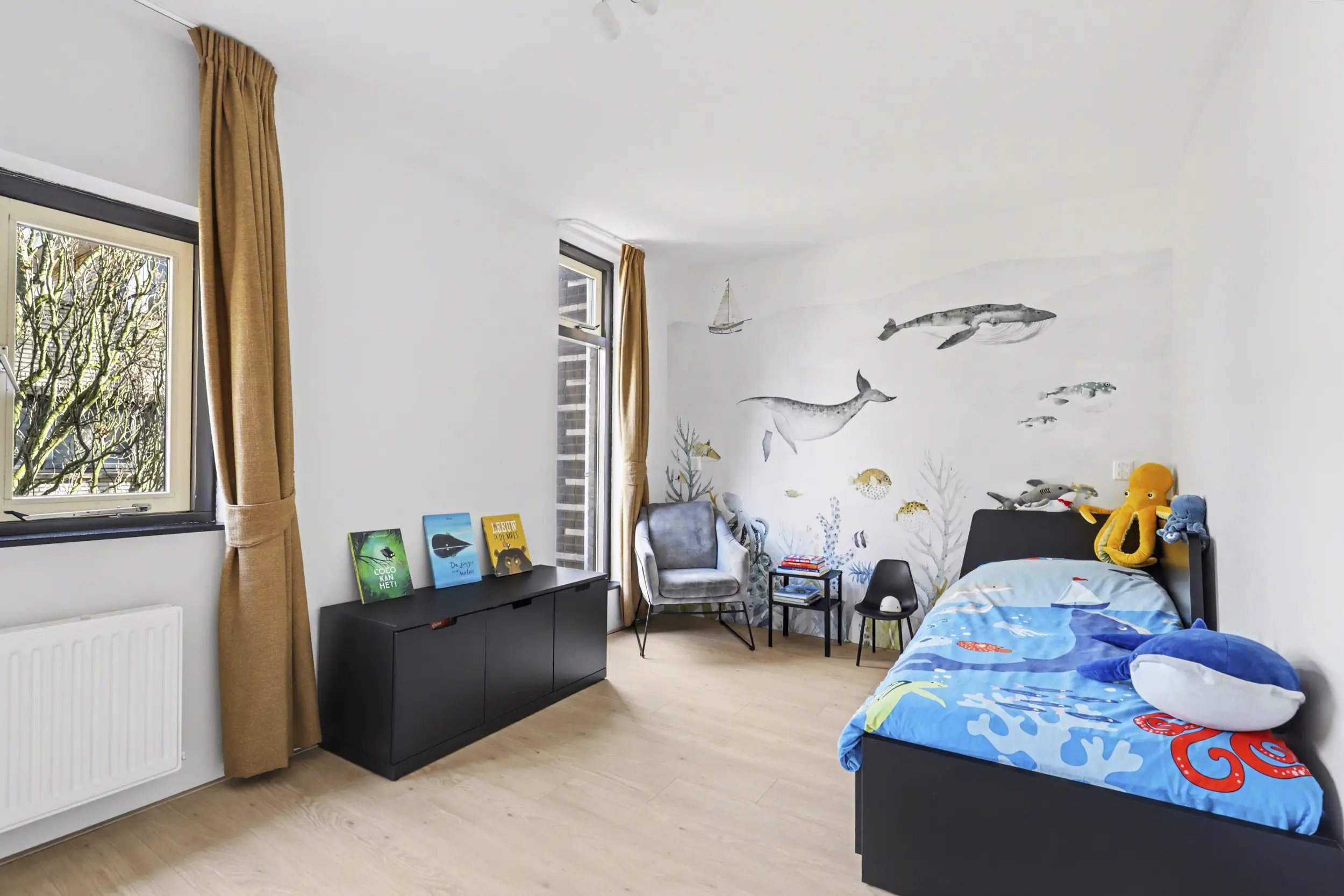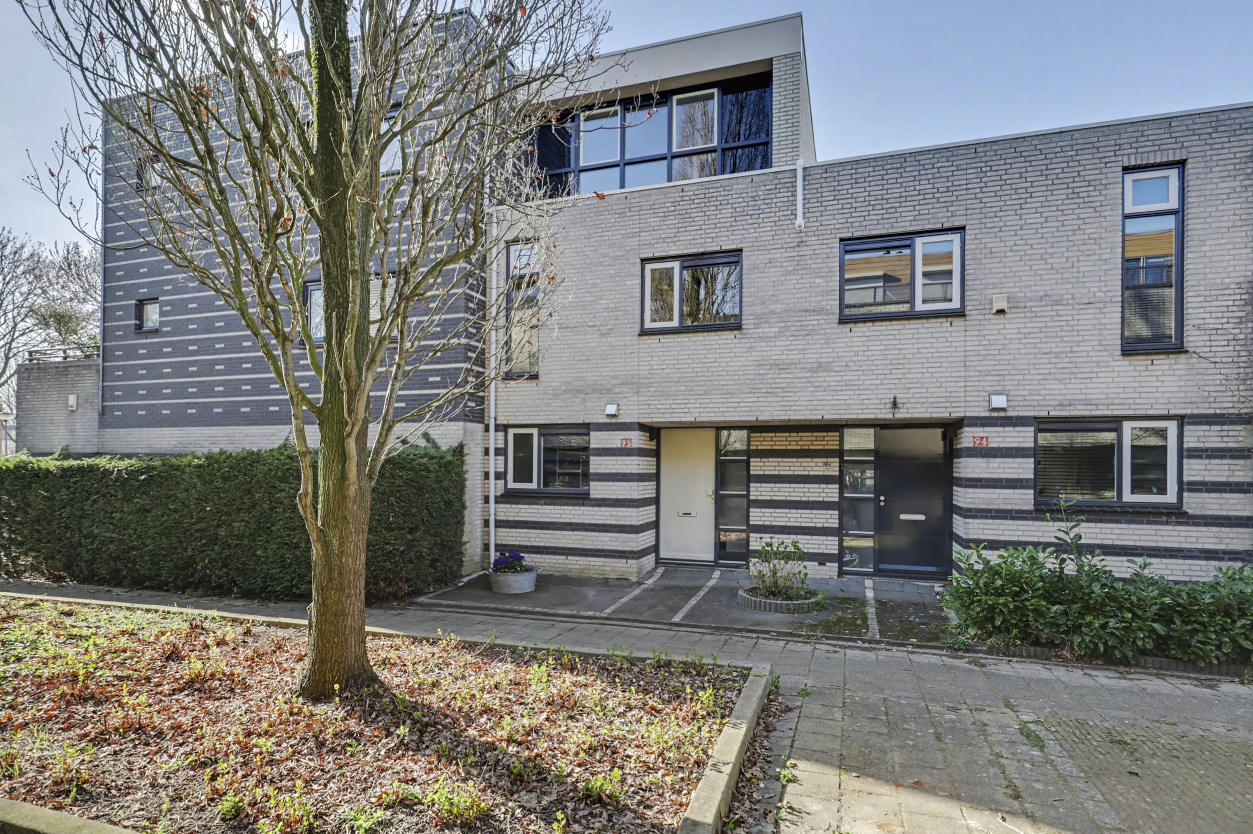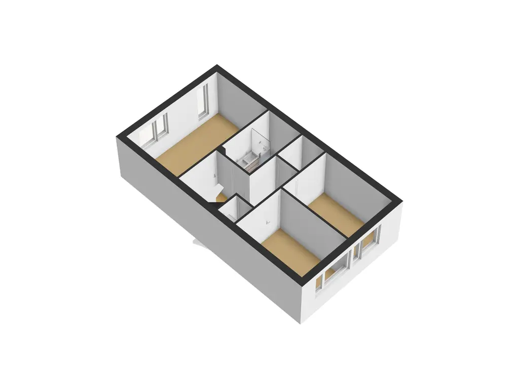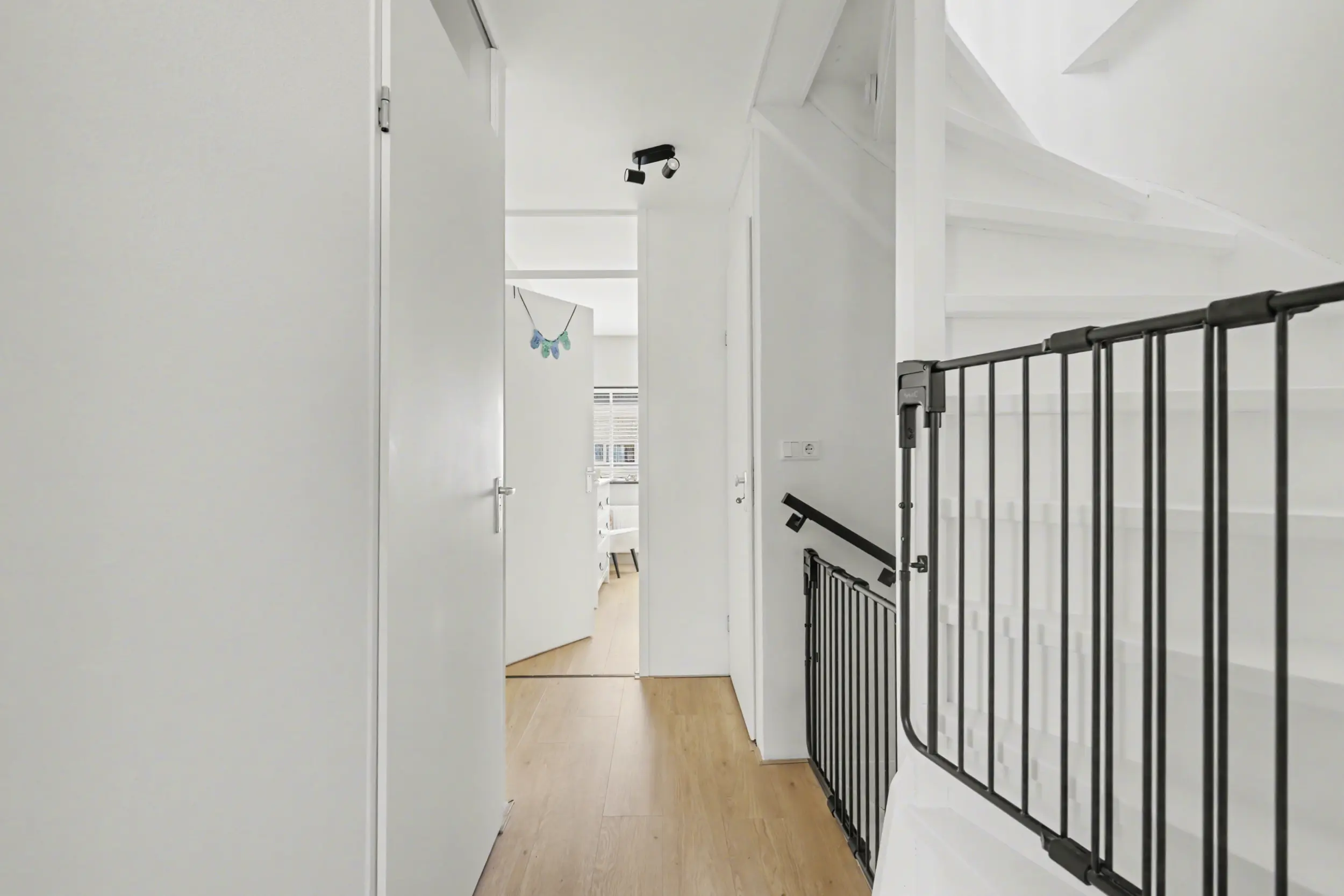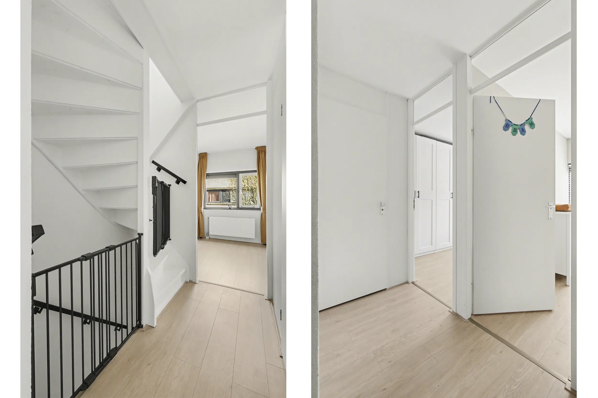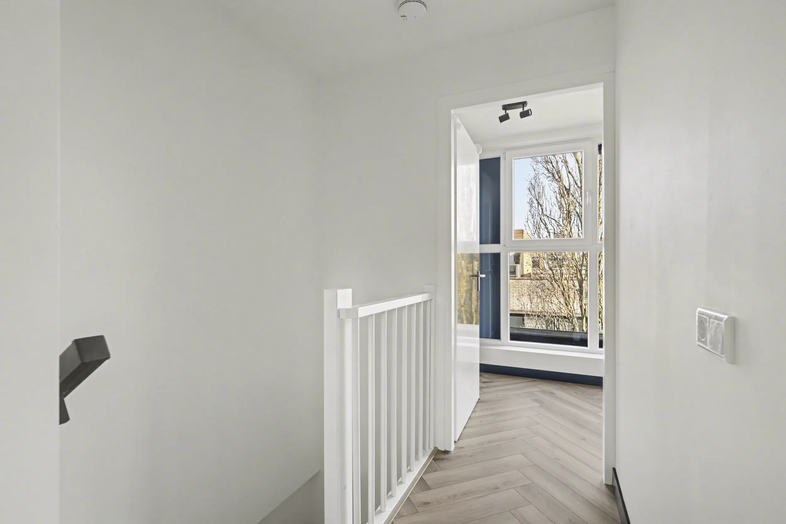 Aan de voorzijde bevindt zich een ruime slaapkamer met grote raampartijen, waaronder een raam dat bijna tot de vloer doorloopt en zorgt voor een prachtige lichtinval. Aan de achterzijde liggen nog twee goed bemeten slaapkamers, beide voorzien van rolluiken.