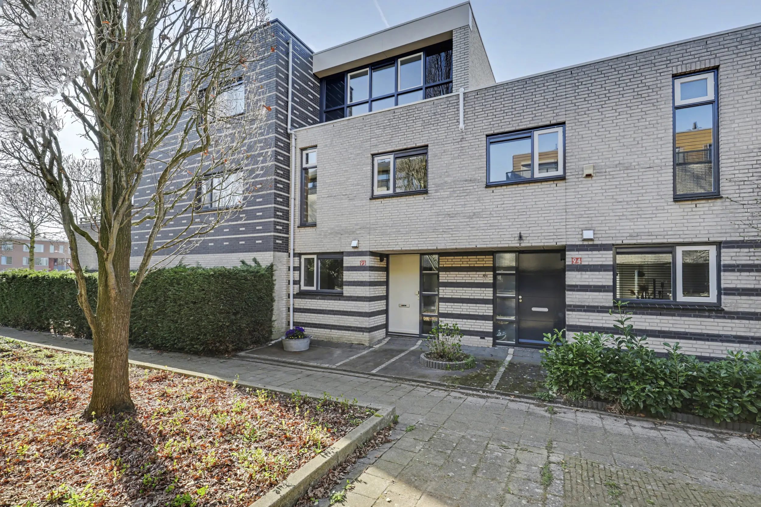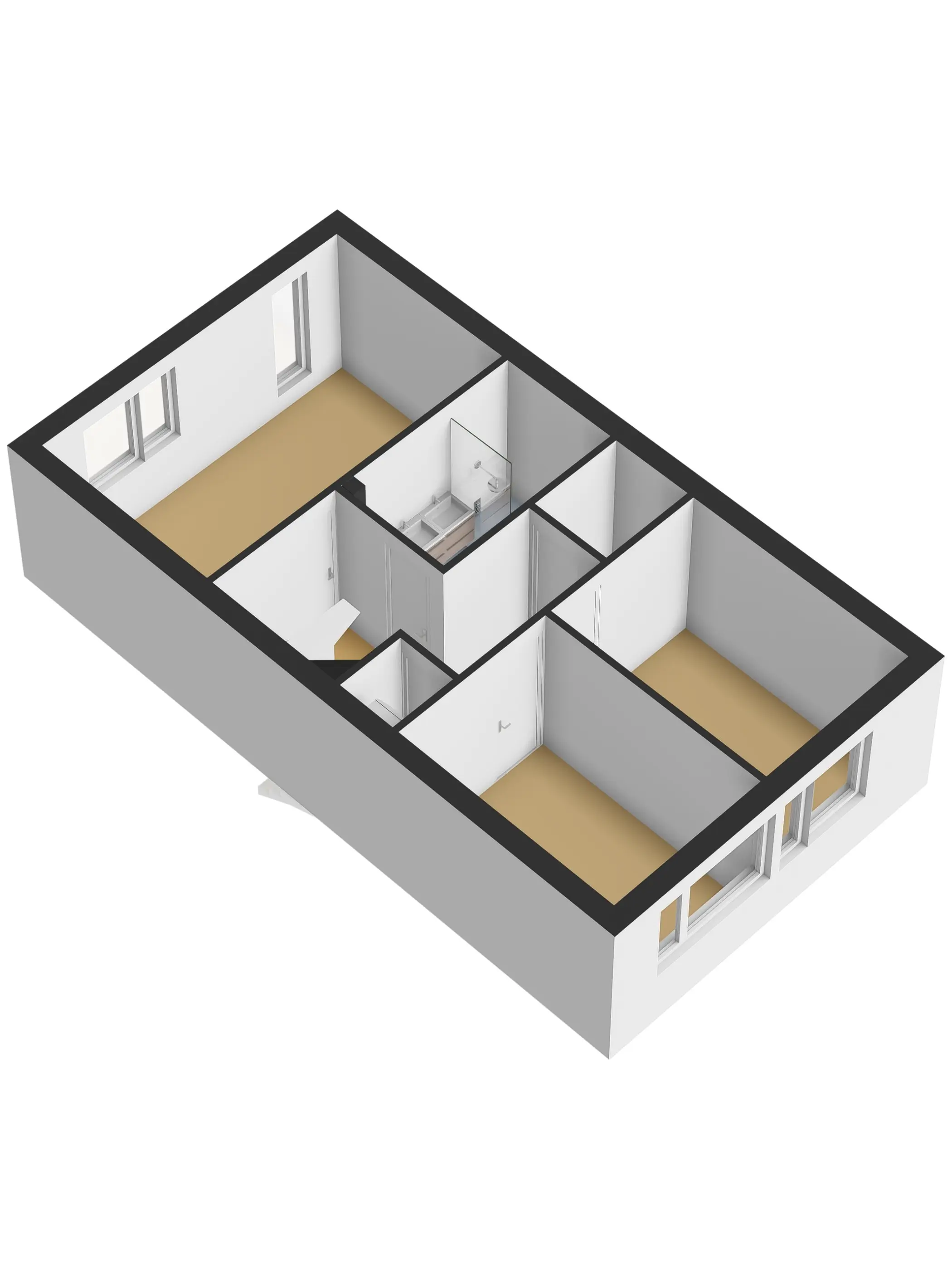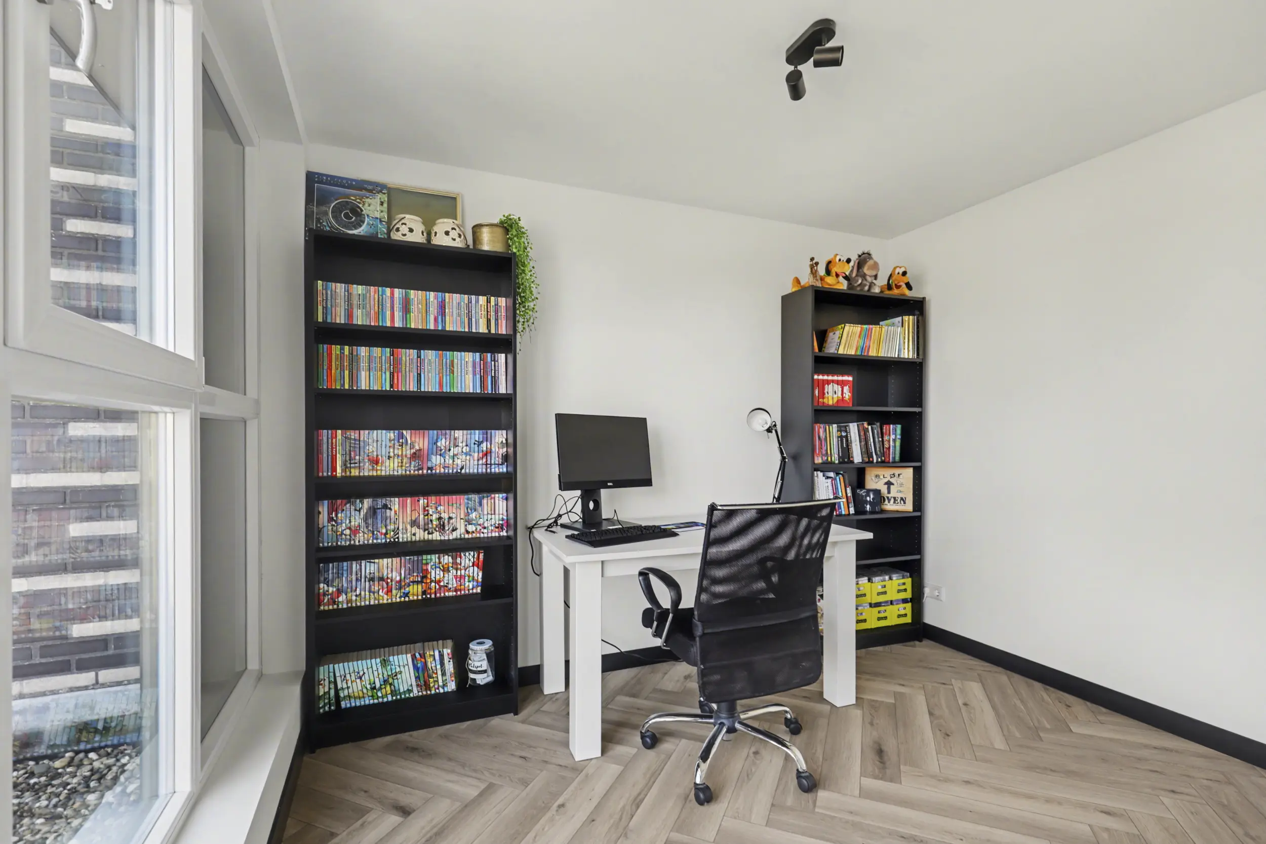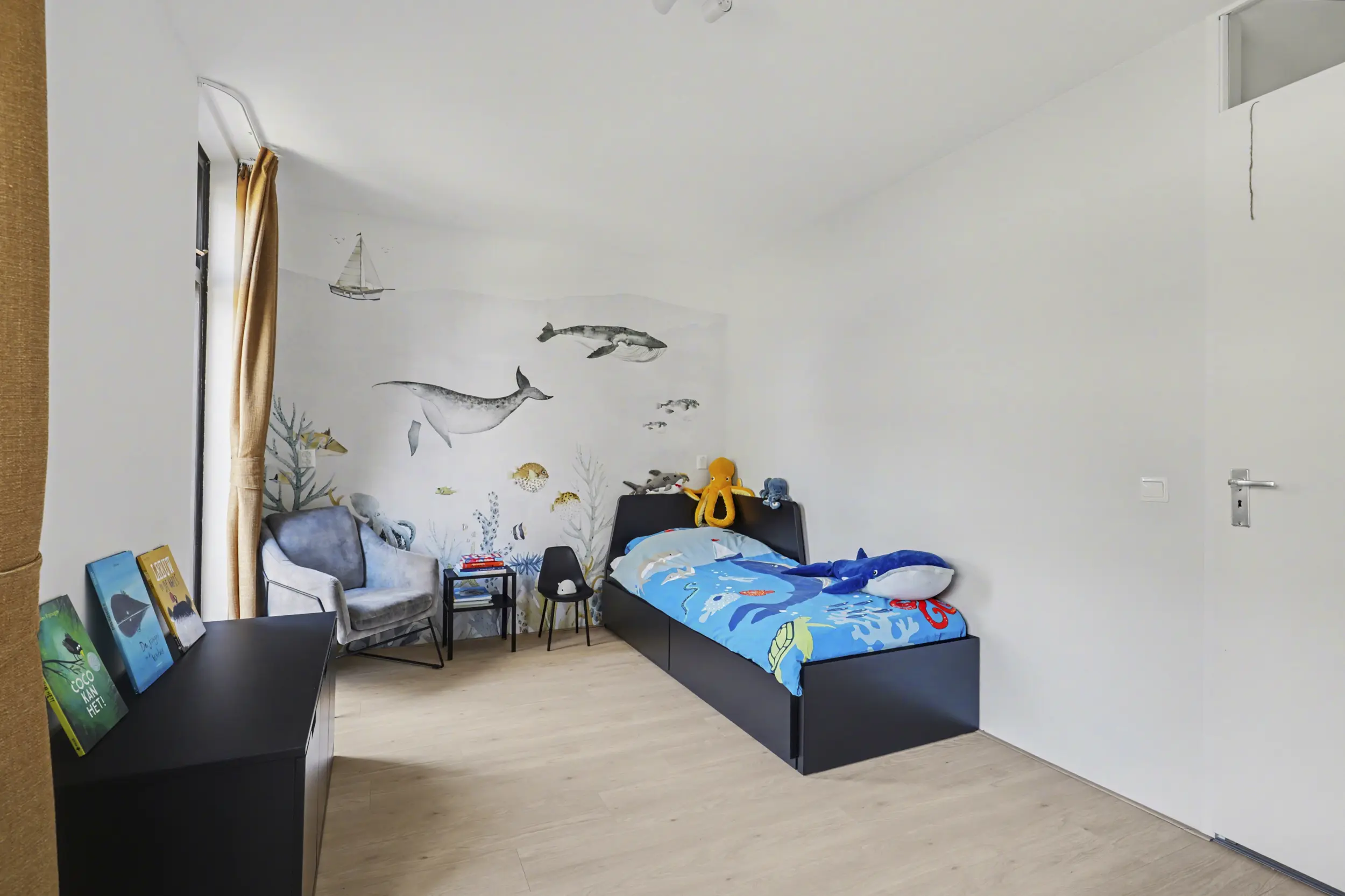 Aan de voorzijde bevindt zich een ruime slaapkamer met grote raampartijen, waaronder een raam dat bijna tot de vloer doorloopt en zorgt voor een prachtige lichtinval. Aan de achterzijde liggen nog twee goed bemeten slaapkamers, beide voorzien van rolluiken.