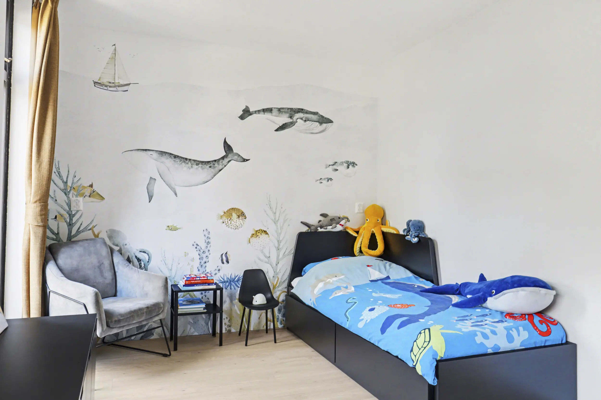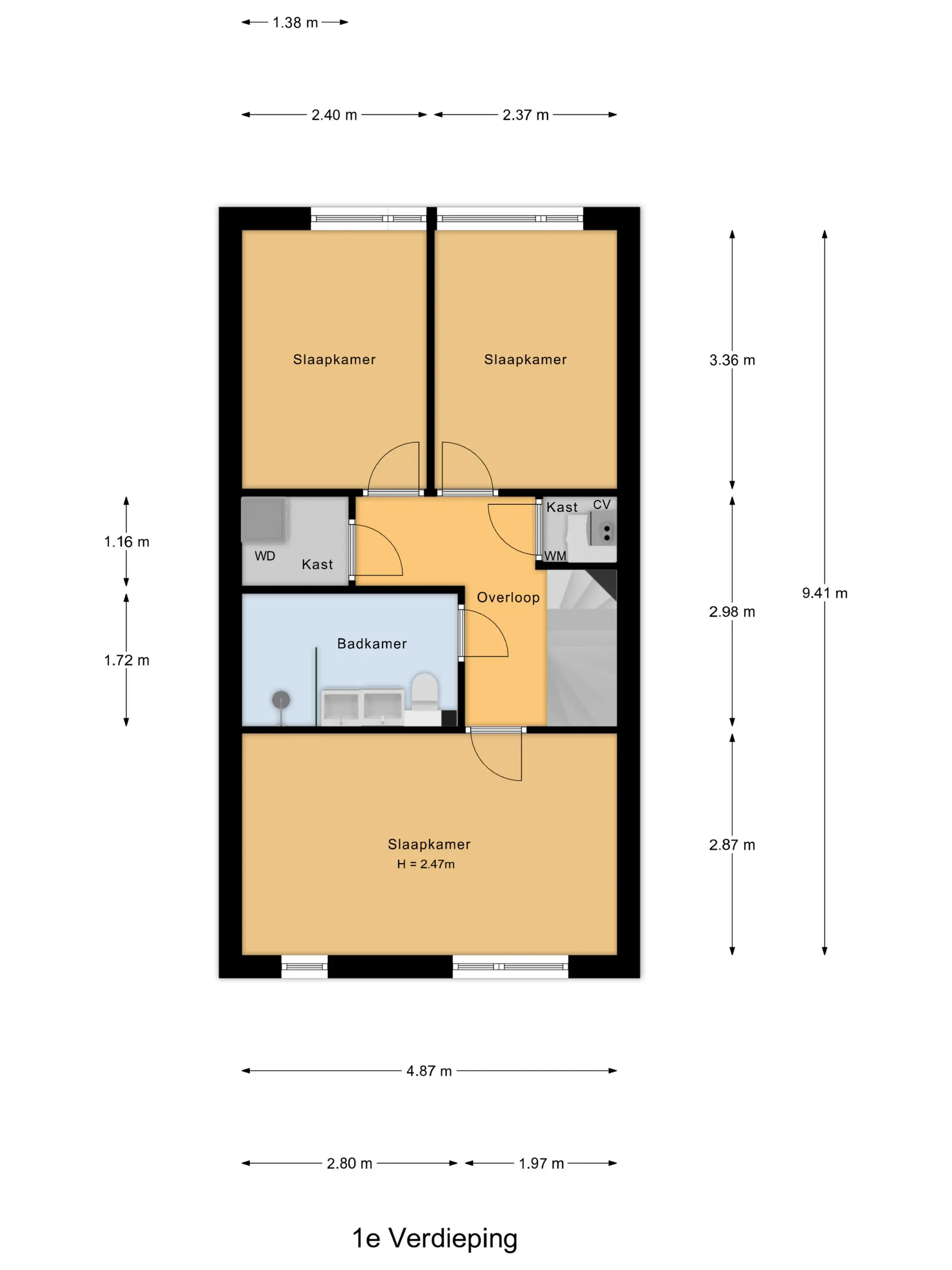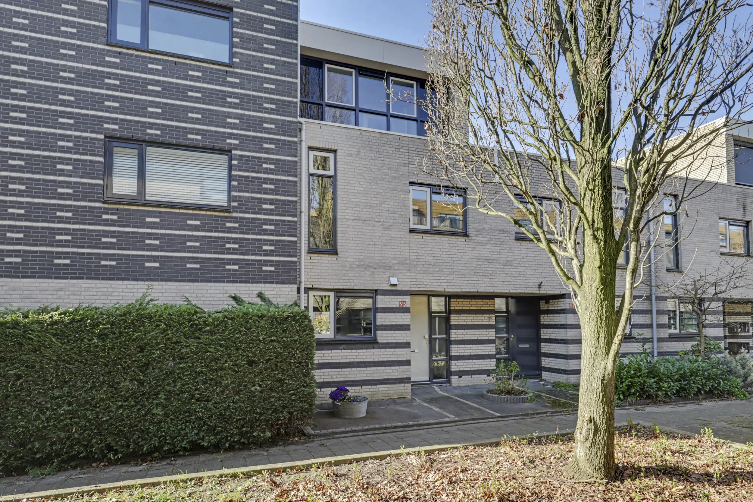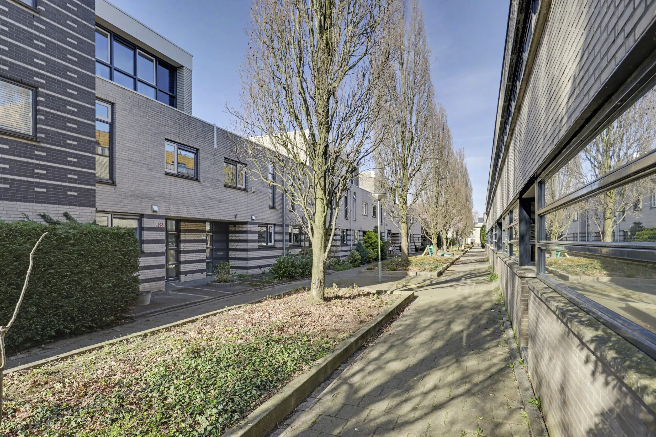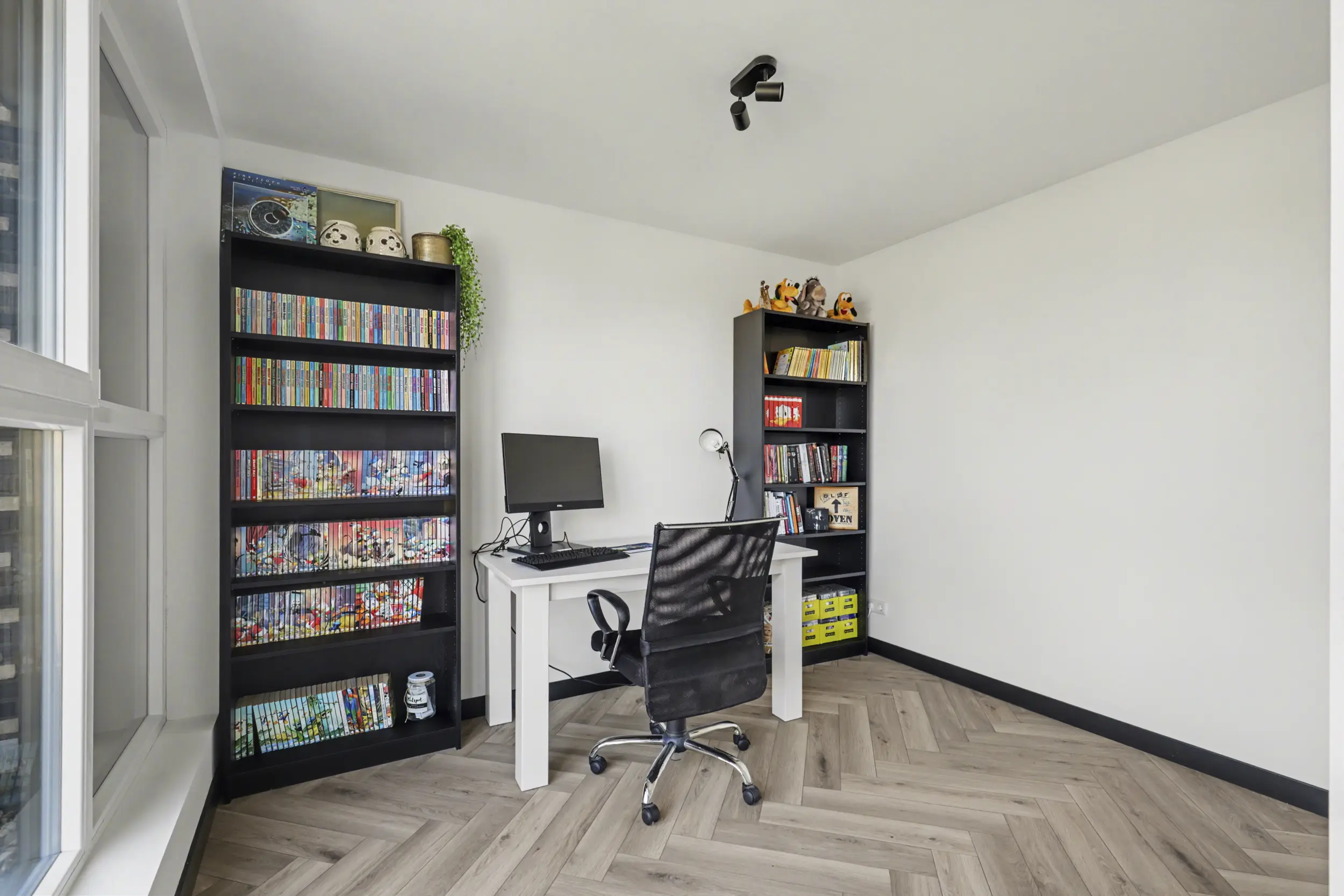 Aan de voorzijde bevindt zich een ruime slaapkamer met grote raampartijen, waaronder een raam dat bijna tot de vloer doorloopt en zorgt voor een prachtige lichtinval. Aan de achterzijde liggen nog twee goed bemeten slaapkamers, beide voorzien van rolluiken.