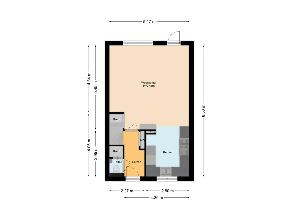 Via de voortuin bereikt u de entree van de woning. In de hal bevinden zich het toilet, de meterkast en de trapopgang naar de eerste verdieping. De lichte woonkamer biedt een prettige leefruimte met uitzicht op de achtertuin. In de woonkamer en keuken is vloerverwarming aanwezig als bijverwarming, wat zorgt voor extra comfort.