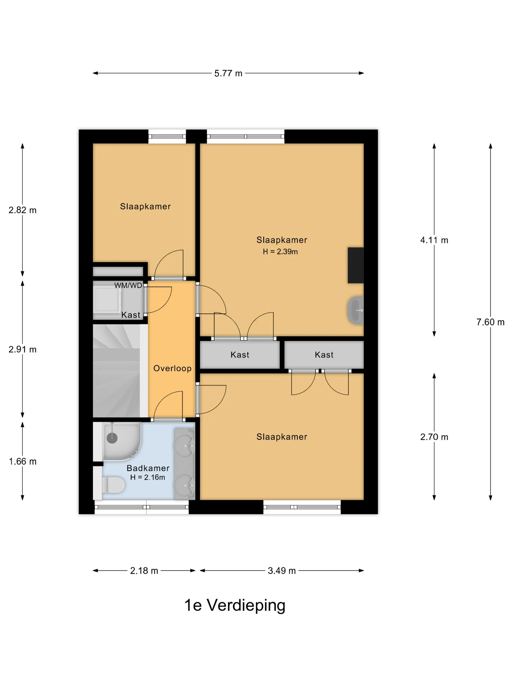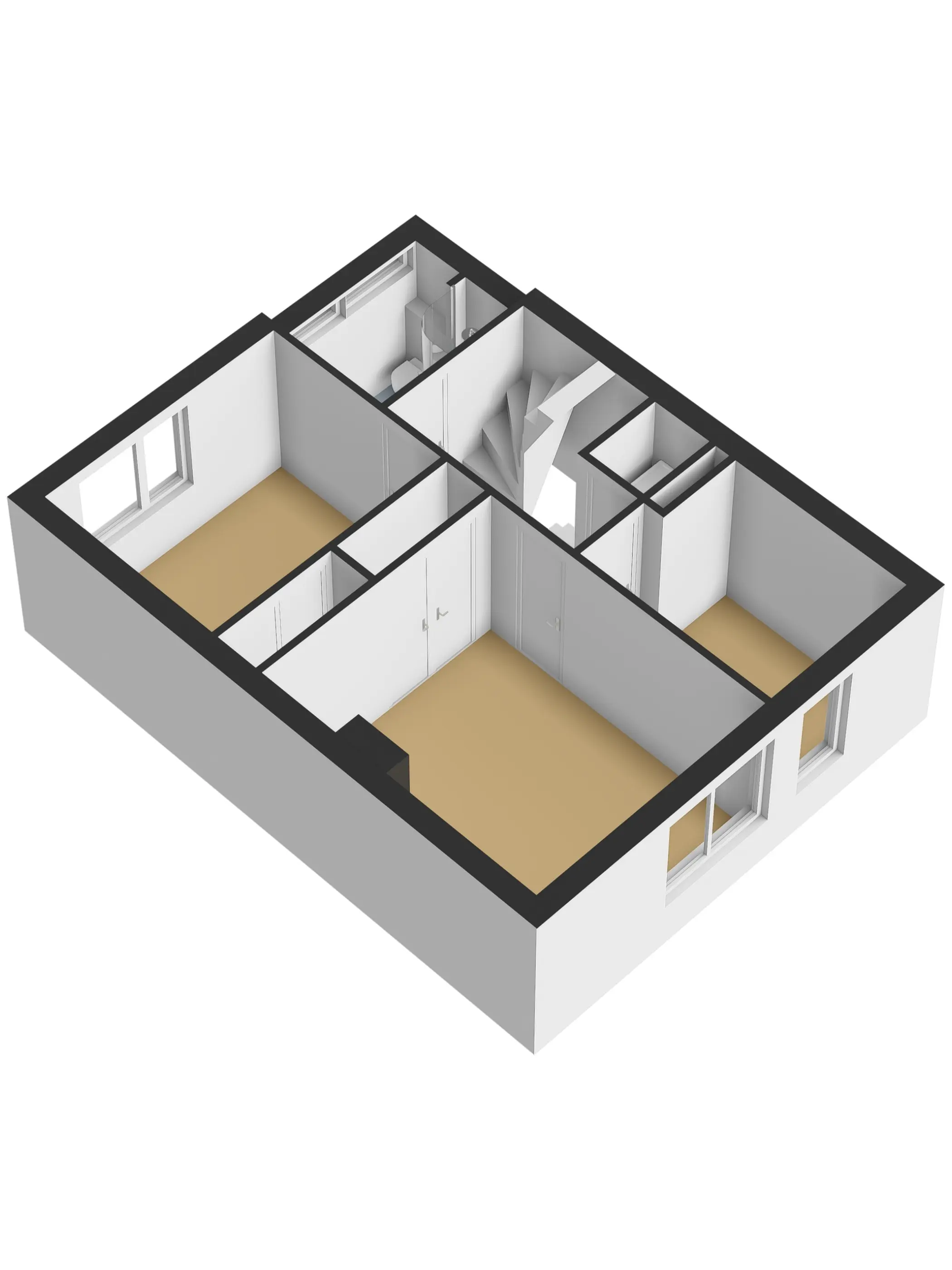 De verdieping telt totaal drie slaapkamers, waarvan twee aan de achterzijde en één aan de voorzijde gesitueerd zijn. De twee grotere slaapkamers beschikken tevens over vaste kasten. De kamers zijn licht en netjes afgewerkt.