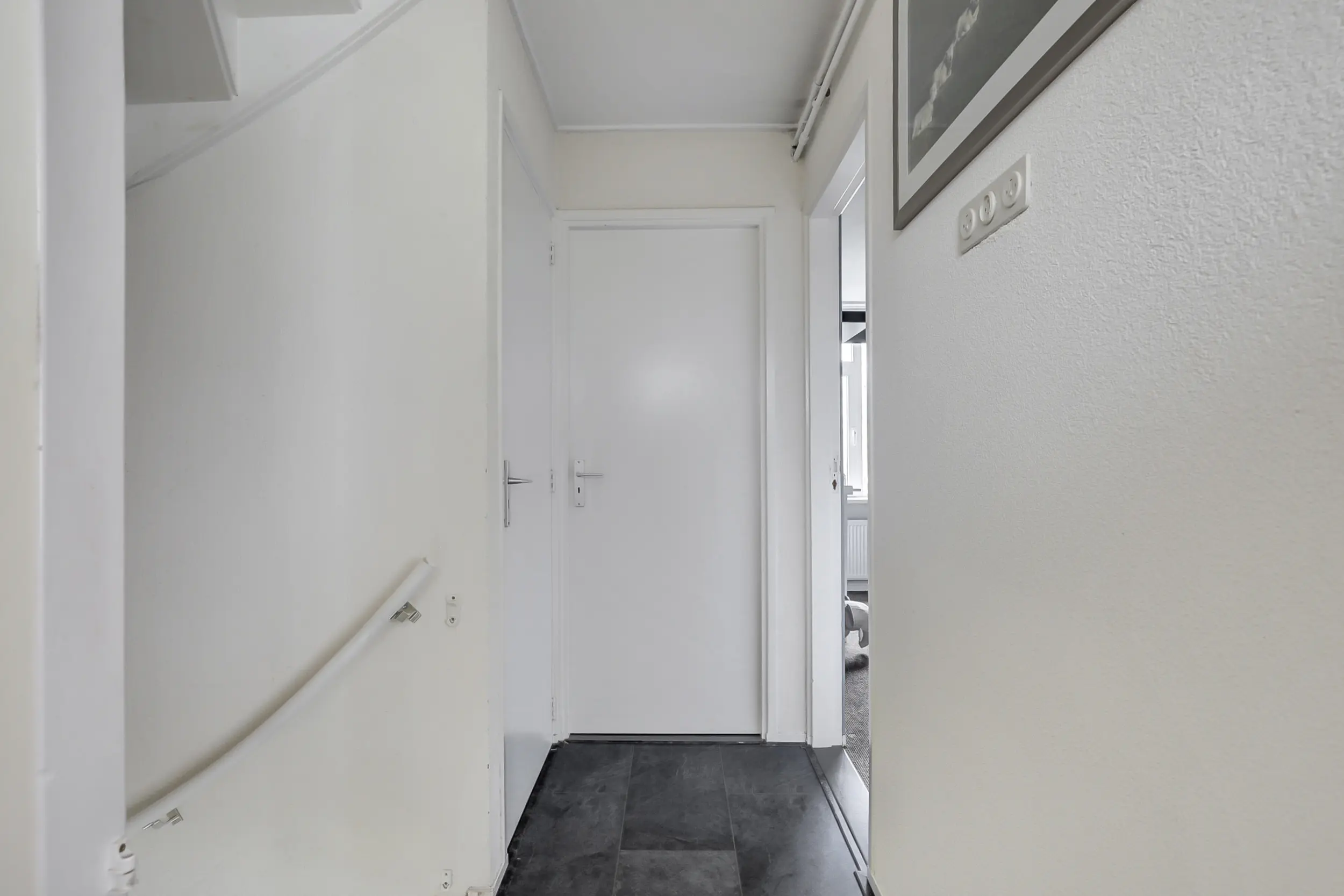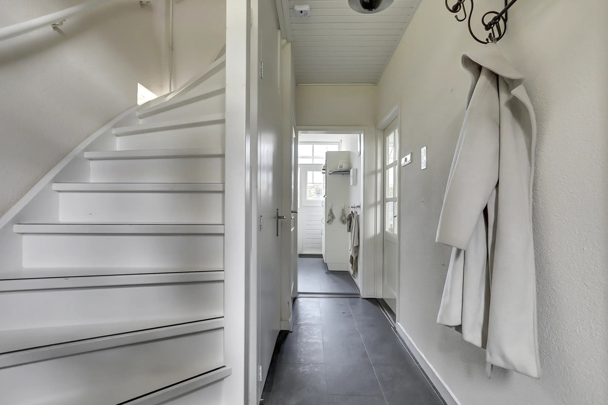 Via de nette voortuin bereikt u de entree van de woning. De hal is voorzien van een meterkast, trapkast, betegelde toiletruimte met fonteintje en trapopgang. Vanuit de hal heeft u toegang tot de woonkamer en keuken. De laminaatvloer zorgt voor een verzorgde en moderne uitstraling.