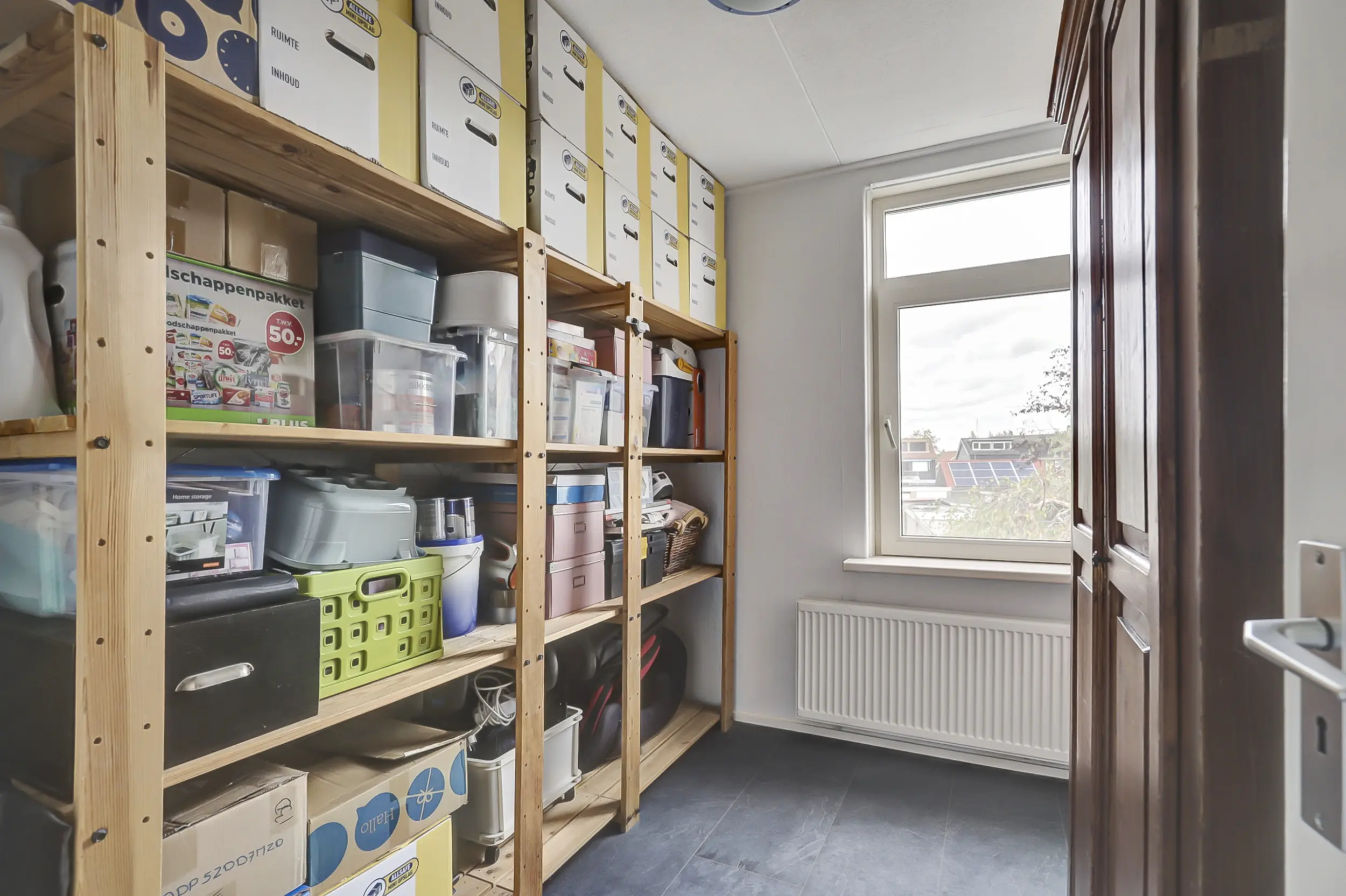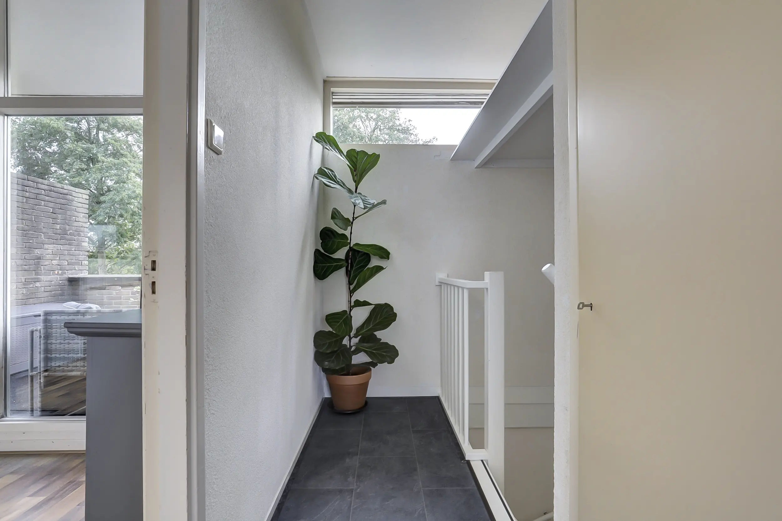 De overloop biedt toegang tot nog eens twee slaapkamers. Hier is ook de CV-ketel en hybride-warmtepomp (2023) geplaatst. Daarnaast beschikt u over een handige vliering die veel extra opbergruimte biedt.