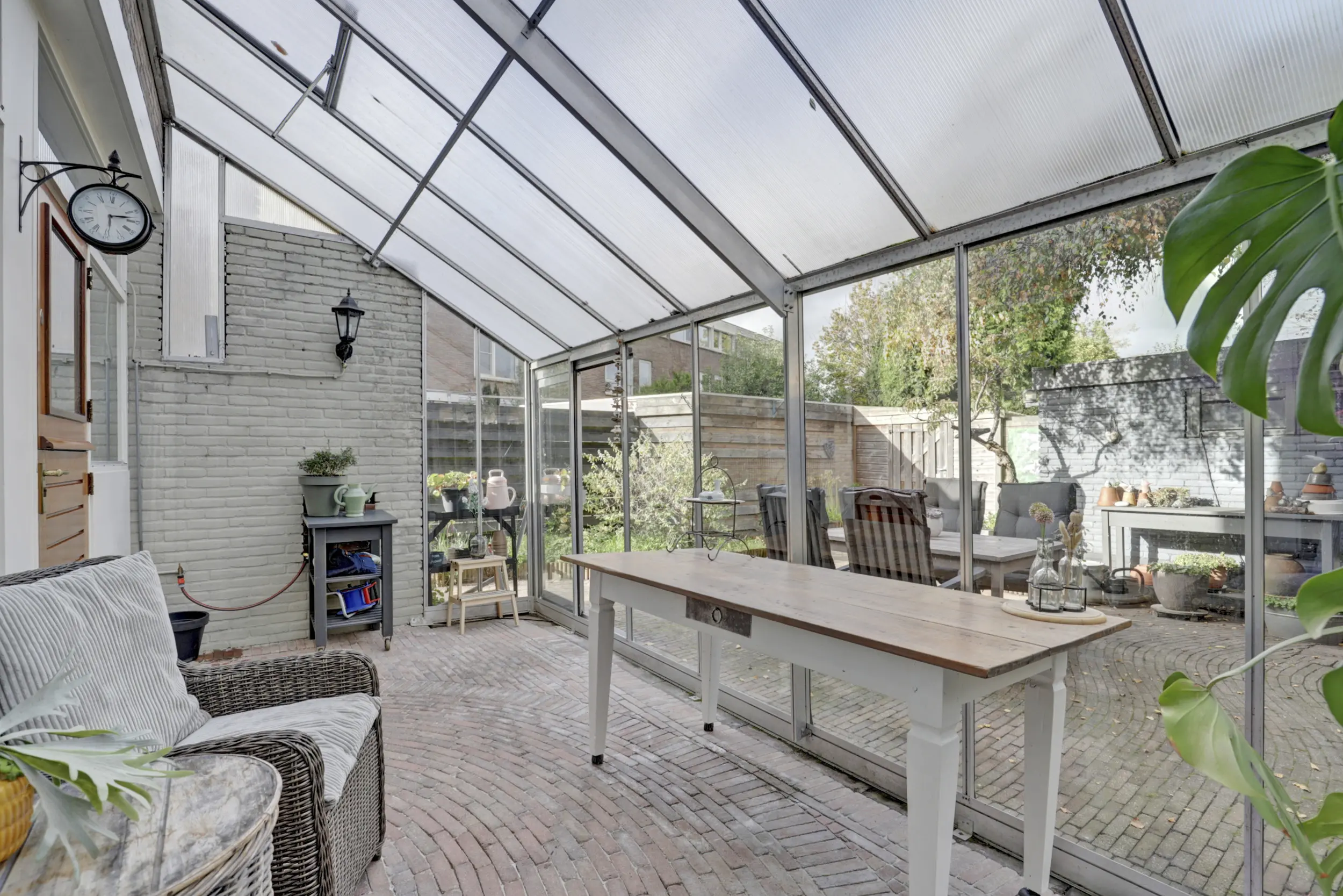De serre is een heerlijke plek om te ontspannen met uitzicht op het groen. Of het nu zomer of winter is, hier kunt u altijd genieten van een kop koffie, een goed boek of gezellig samenzijn met familie en vrienden. Vanuit de serre loopt u zo de tuin in.