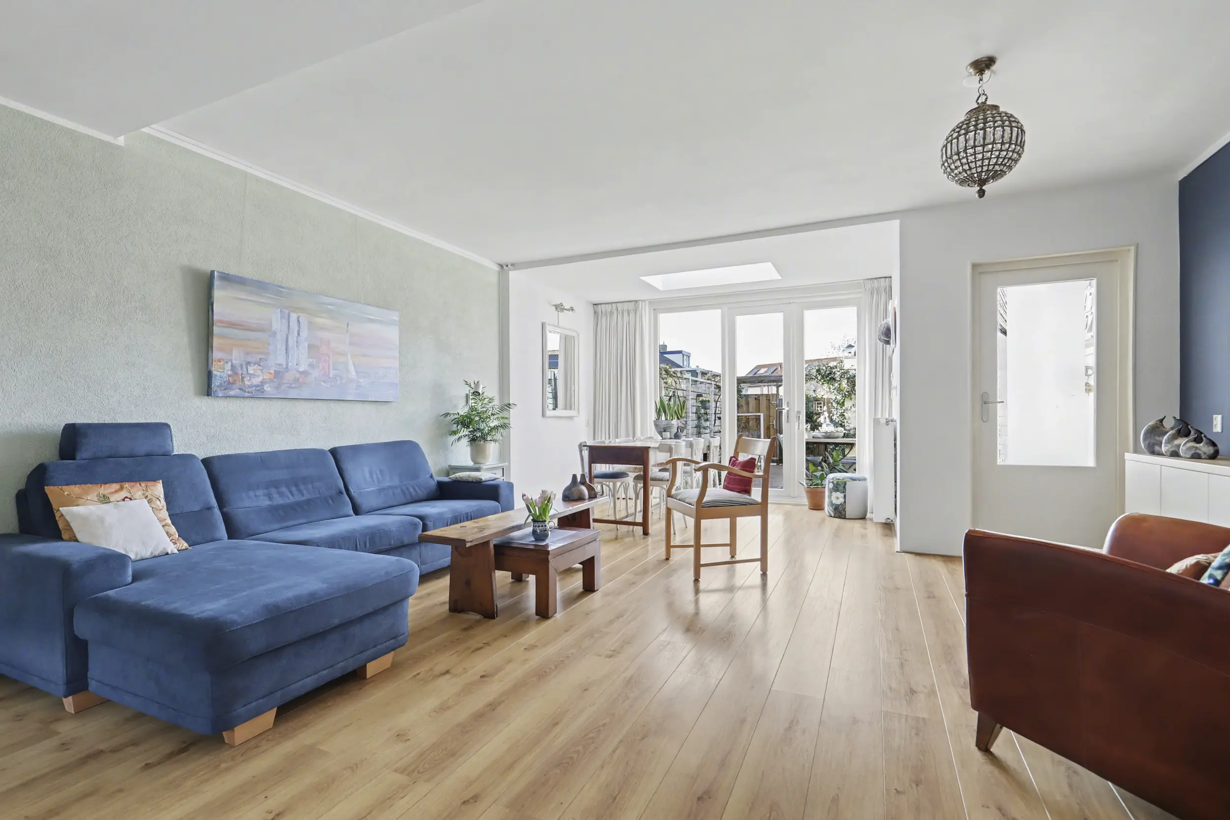 Bij binnenkomst valt direct de heerlijke lichte woonkamer op met openslaande deuren naar de tuin en een praktisch klompenhok en aan de voorzijde een moderne open keuken.