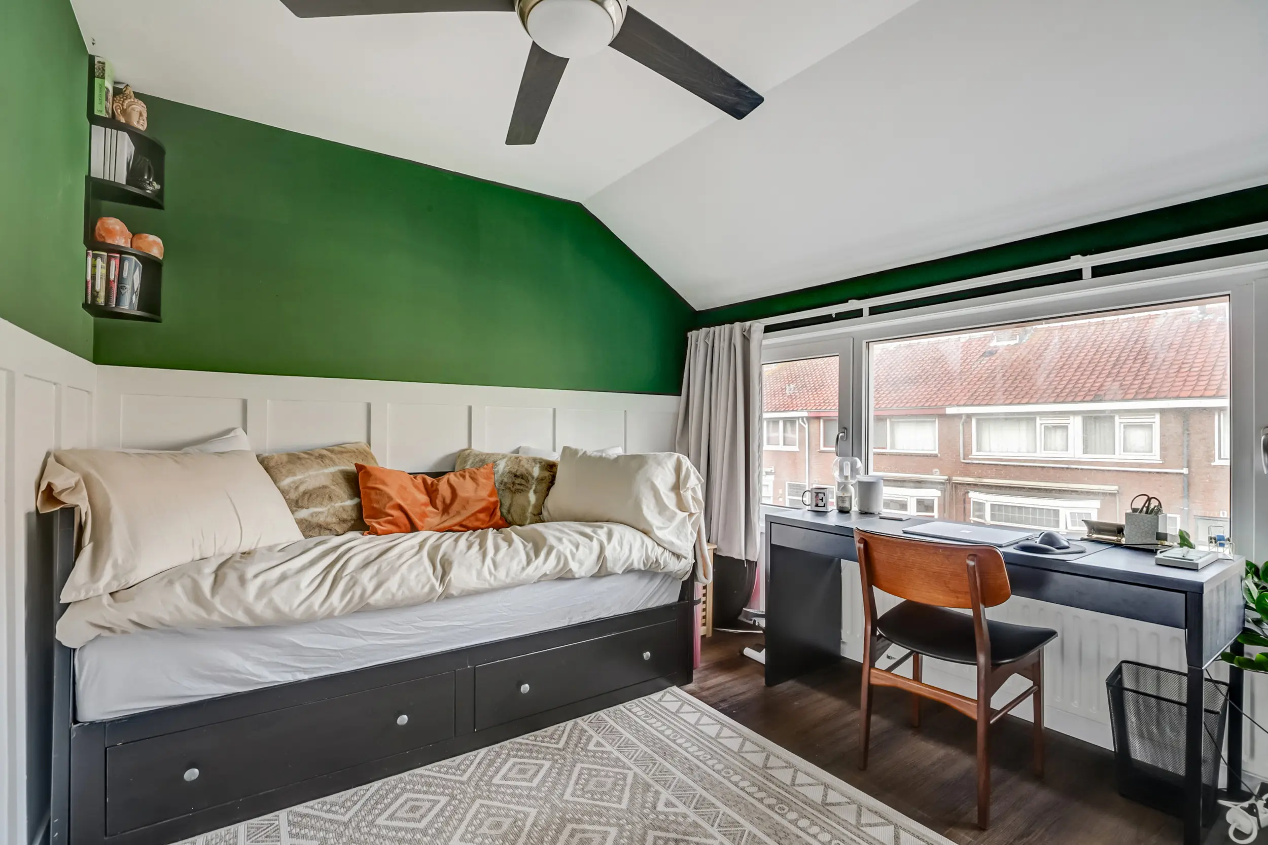 De tweede verdieping dient momenteel als een echte bergzolder, bereikbaar via een vlizotrap. Met een vaste trap én een mogelijke nokverhoger – zoals veel vergelijkbare woningen in deze wijk — zou je hier eenvoudig één of twee extra slaapkamers kunnen realiseren. Dit maakt deze etage zeer interessant voor toekomstige uitbreidingsmogelijkheden.