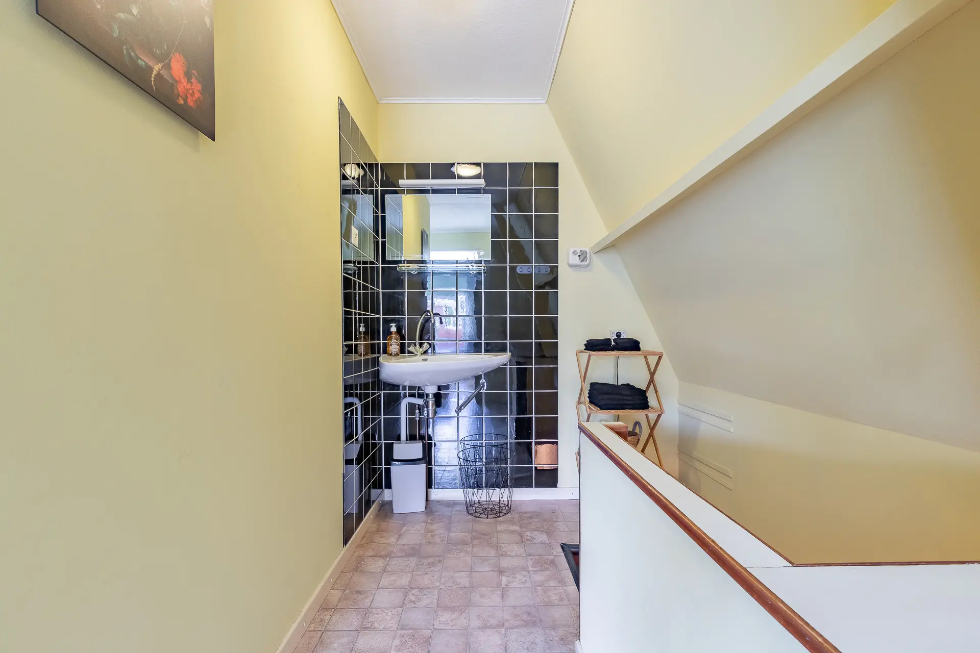 Via een luik bereikt u de handige vliering, perfect voor extra opbergruimte.