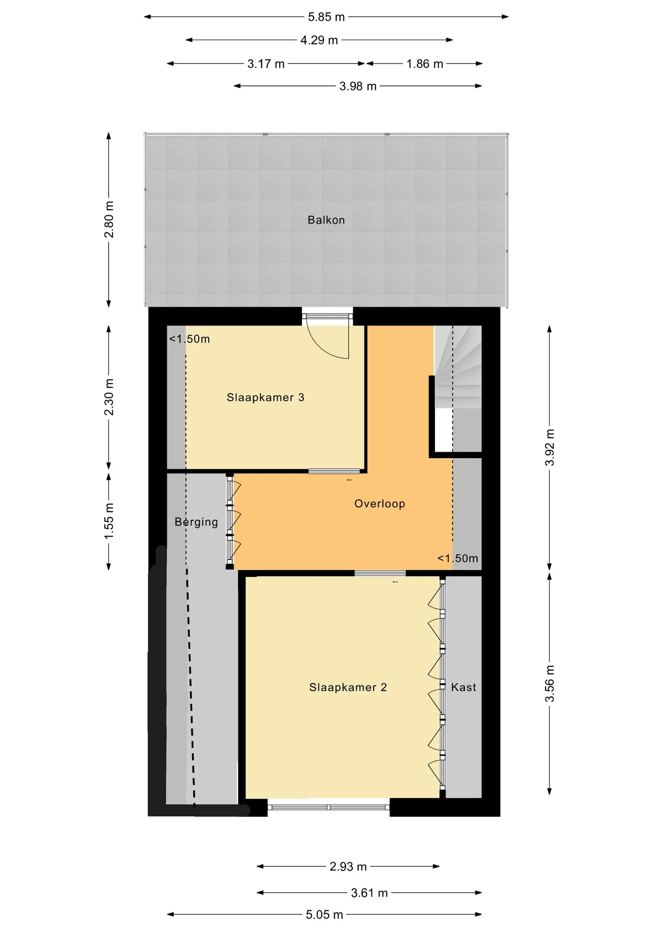 Grote overloop met bergruimte en mogelijkheid voor het maken van een extra doucheruimte.