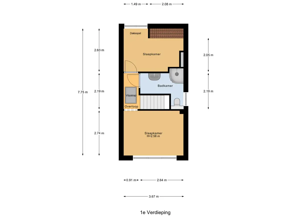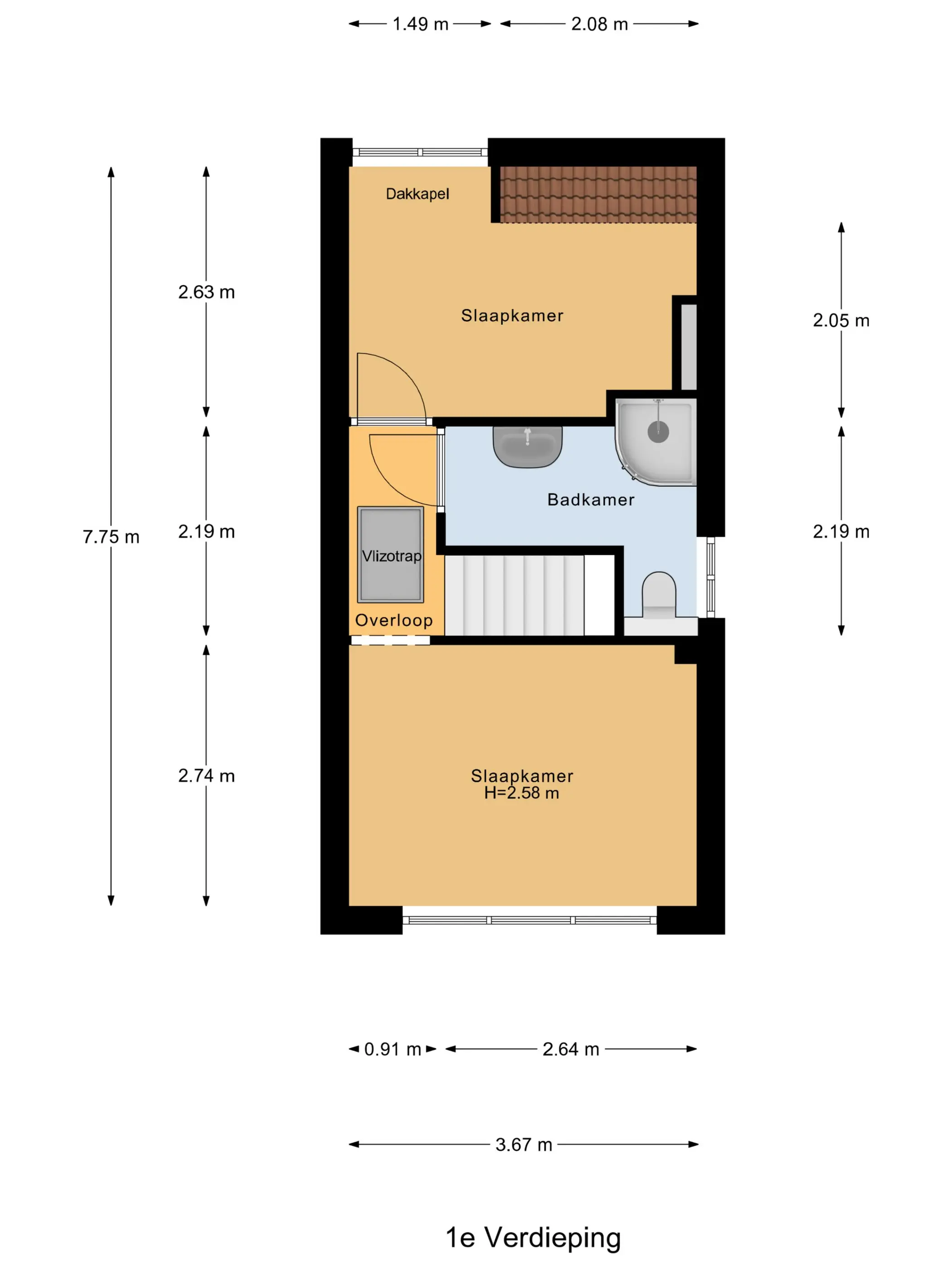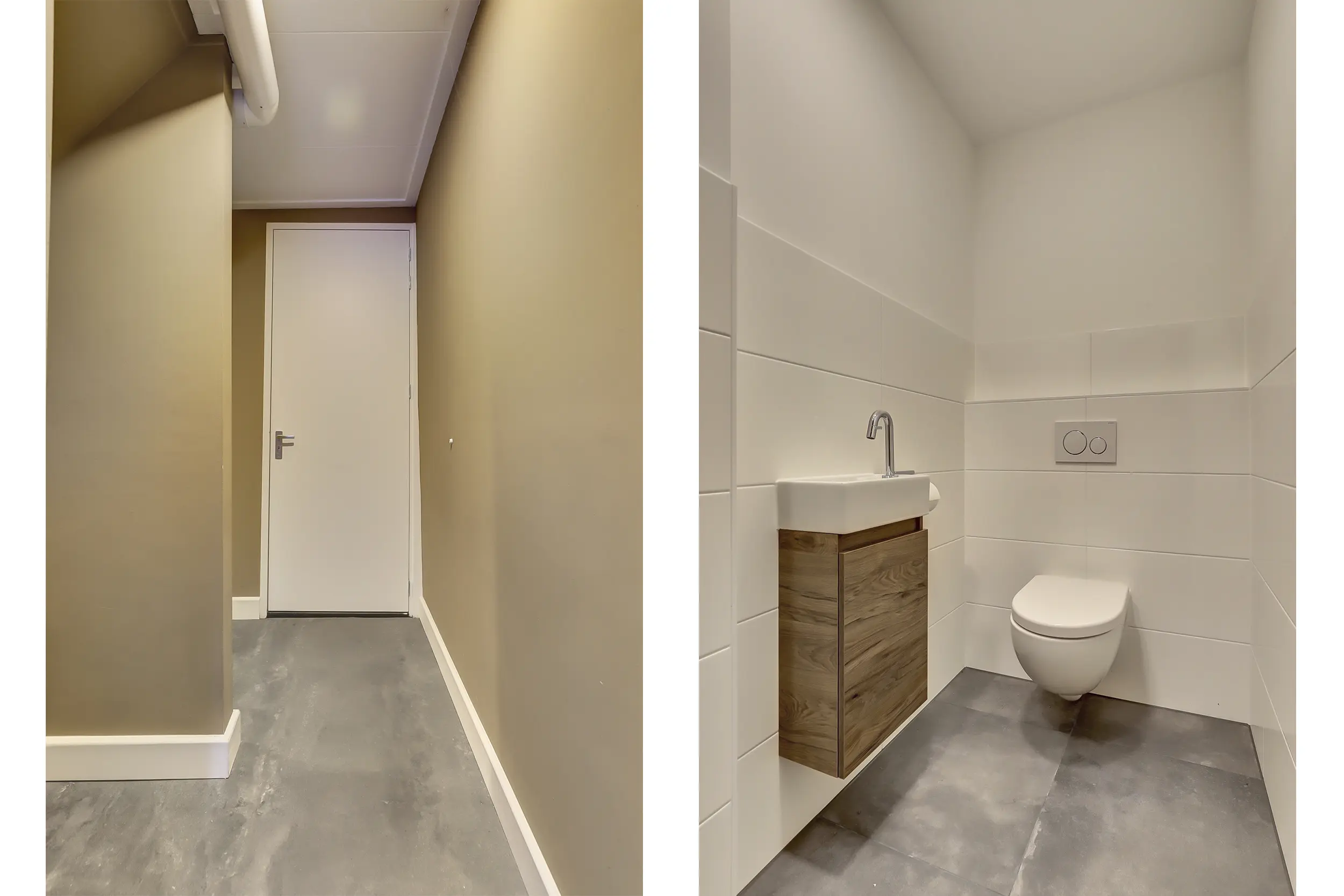 Op de slaapverdieping vinden we 2 slaapkamers met in het midden van de woning de badkamer en een separaat toilet.