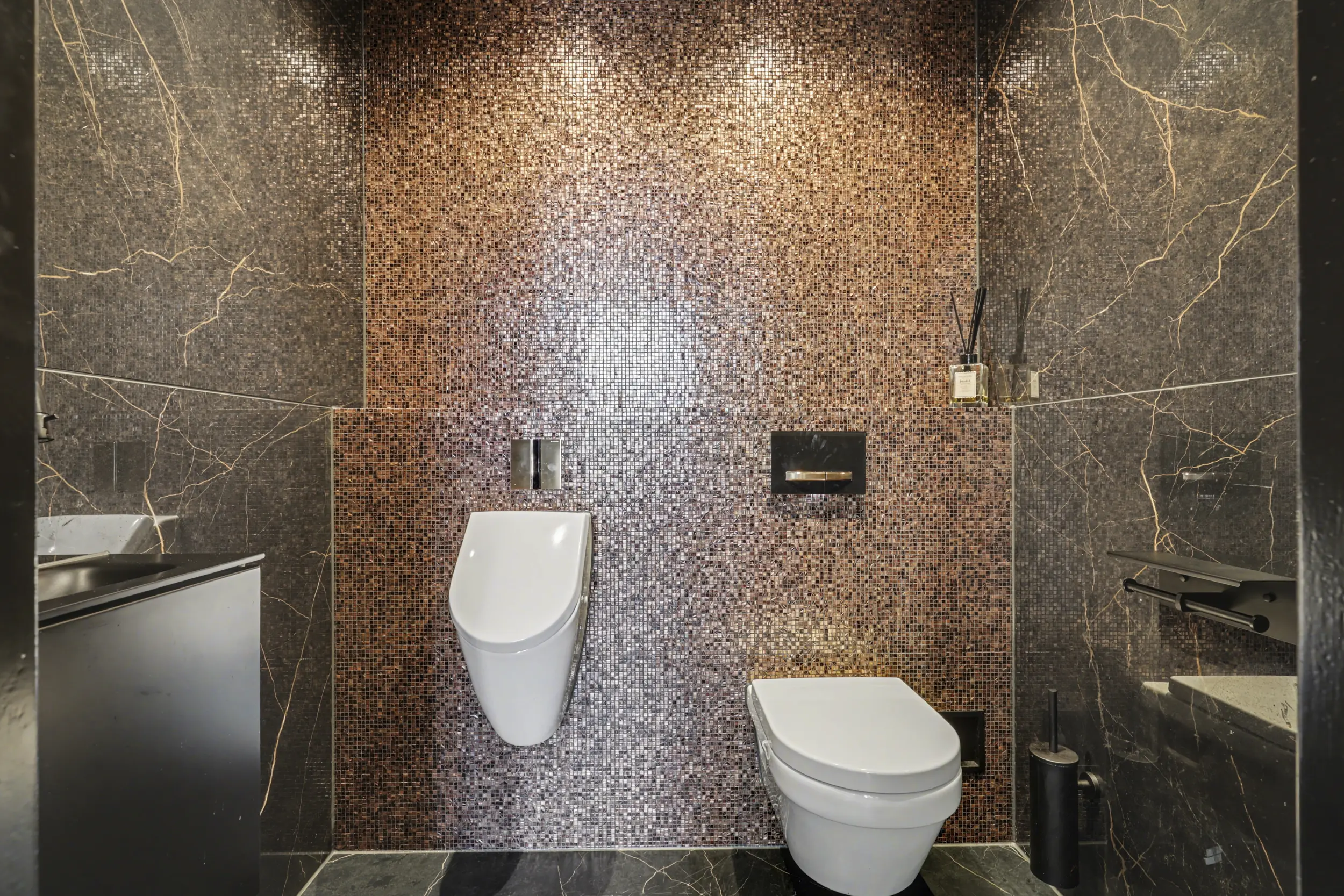 In de hal treffen we tevens de meer dan fraaie en luxe toiletruimte.