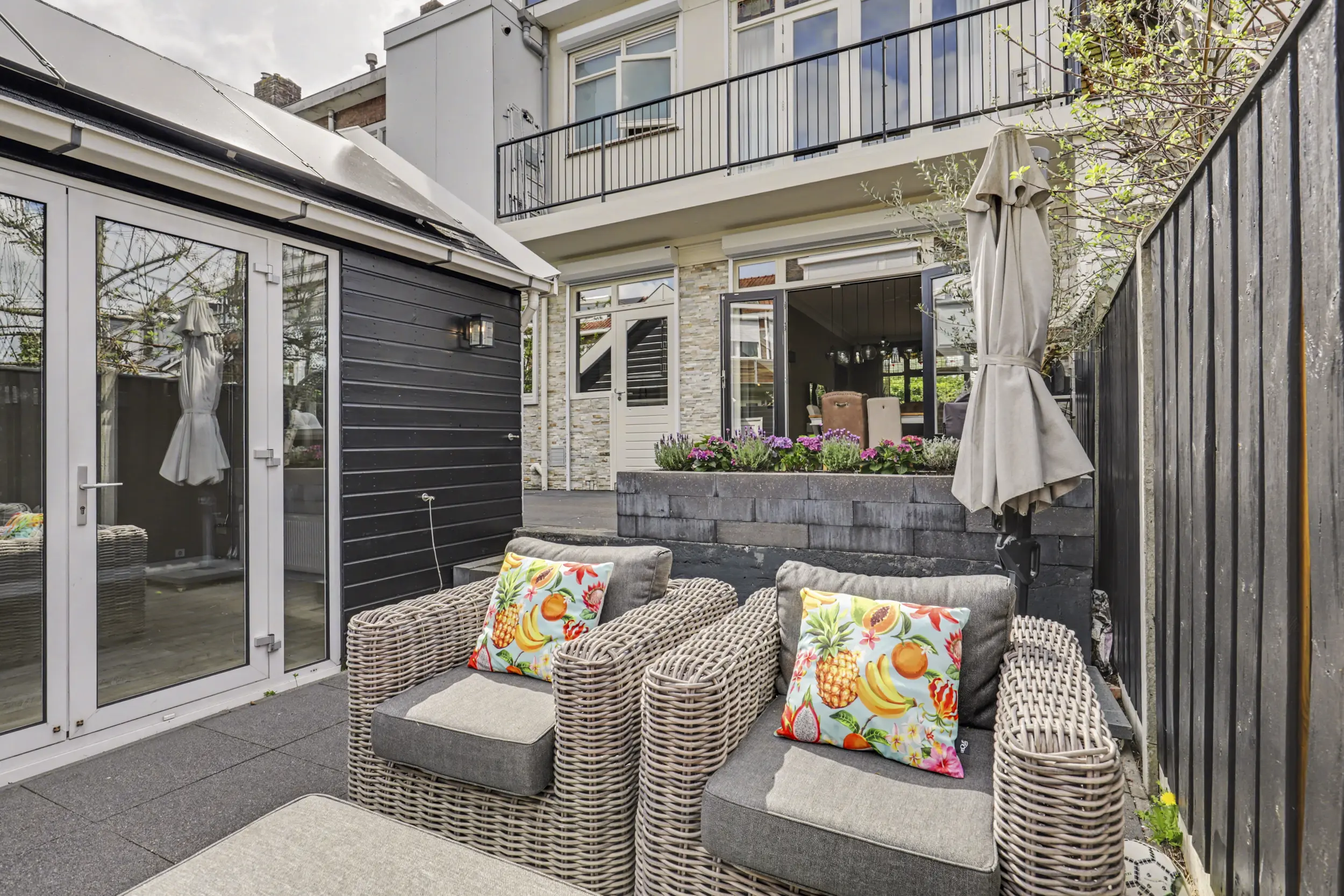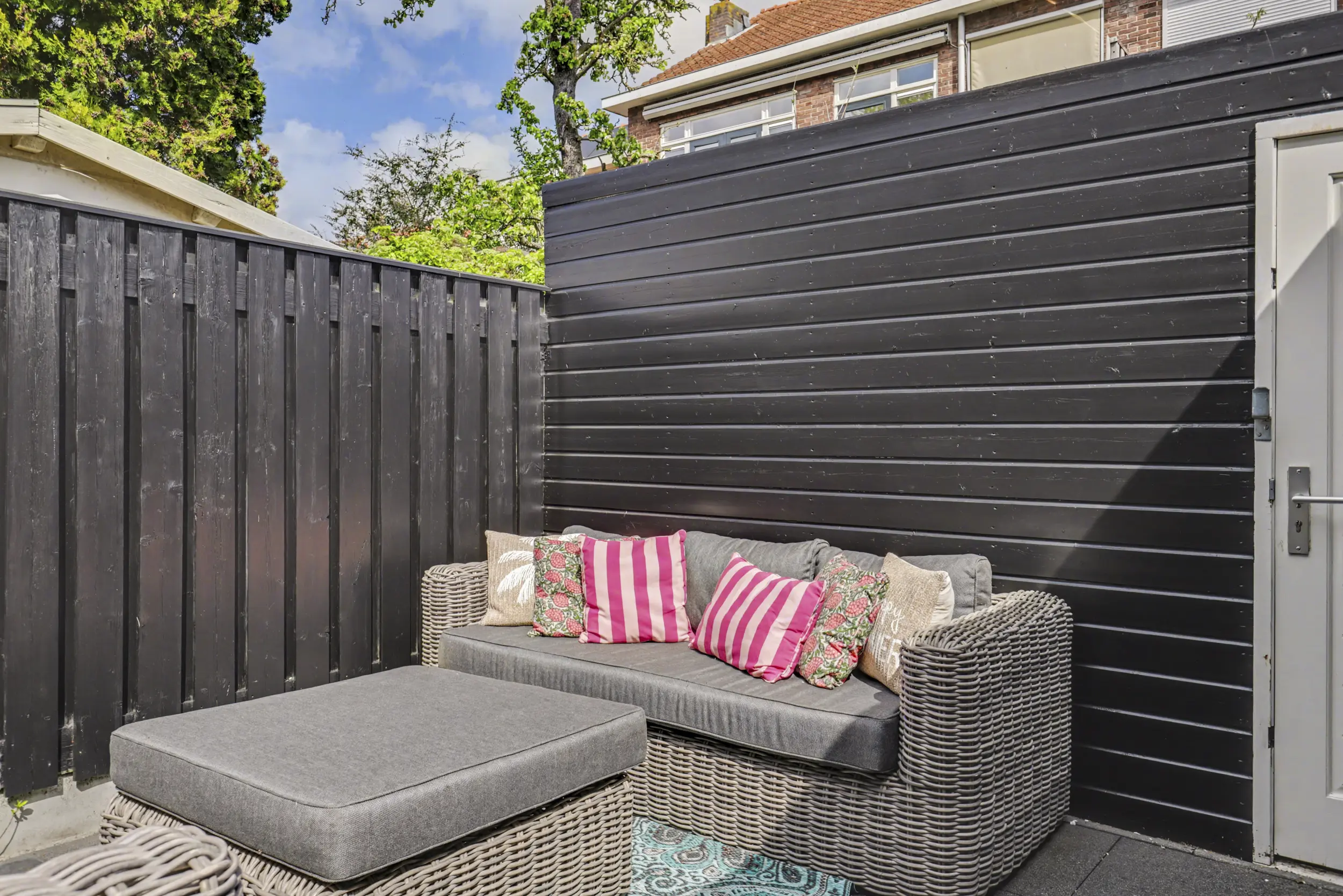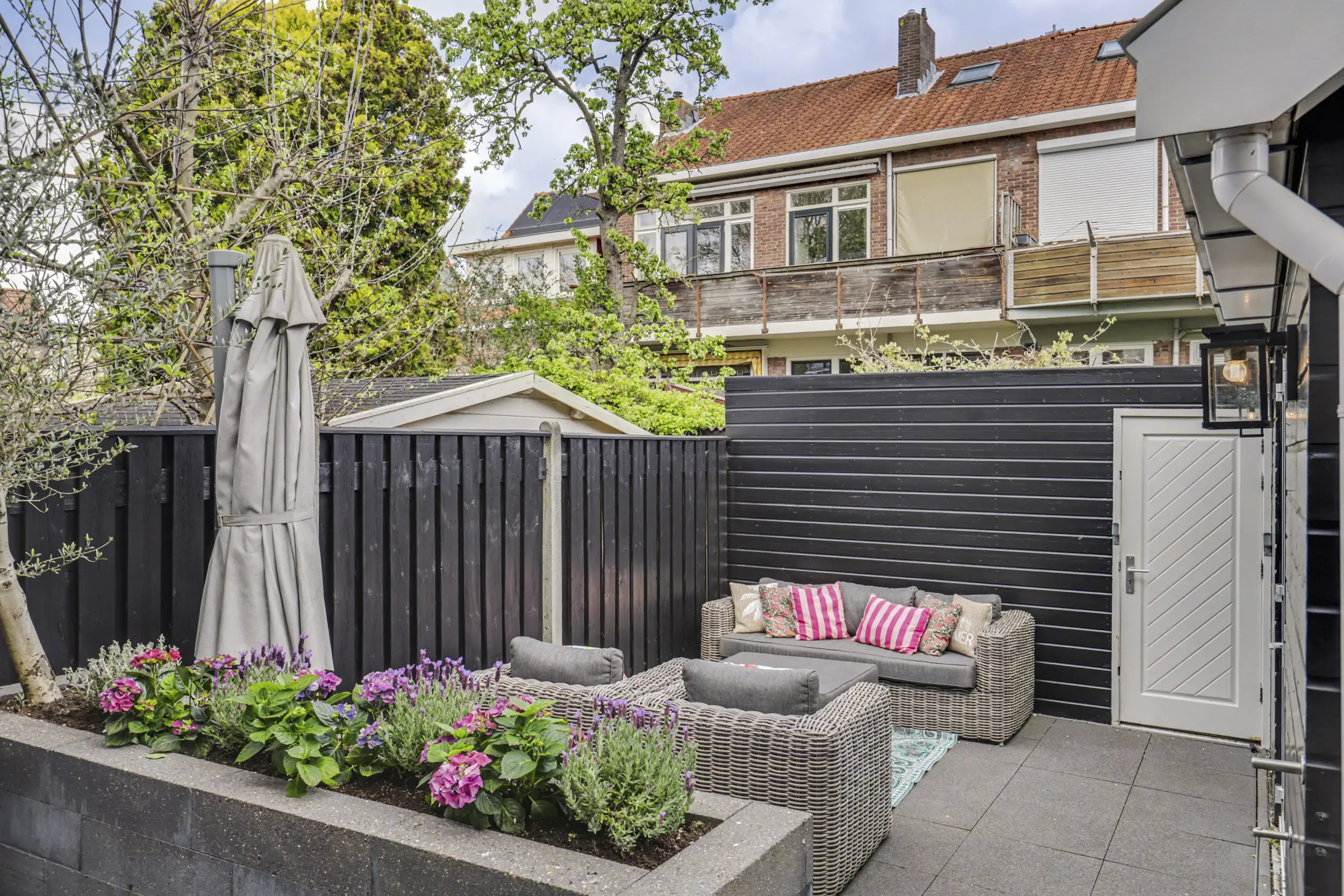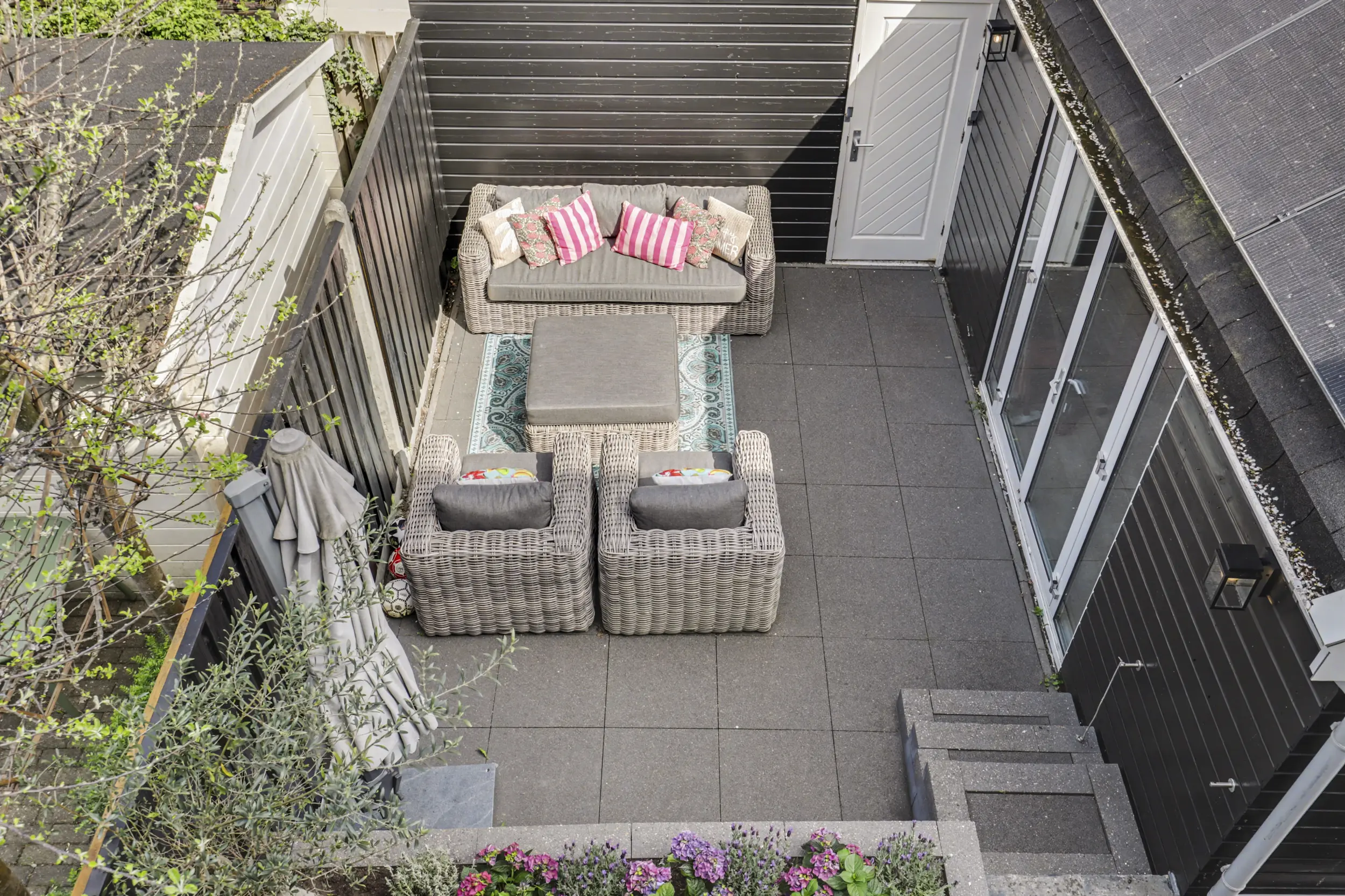 De tuin is ruim en heel praktisch ingedeeld waardoor er veel ruimte is voor gezellig samenzijn of lekker luieren in het zonnetje.