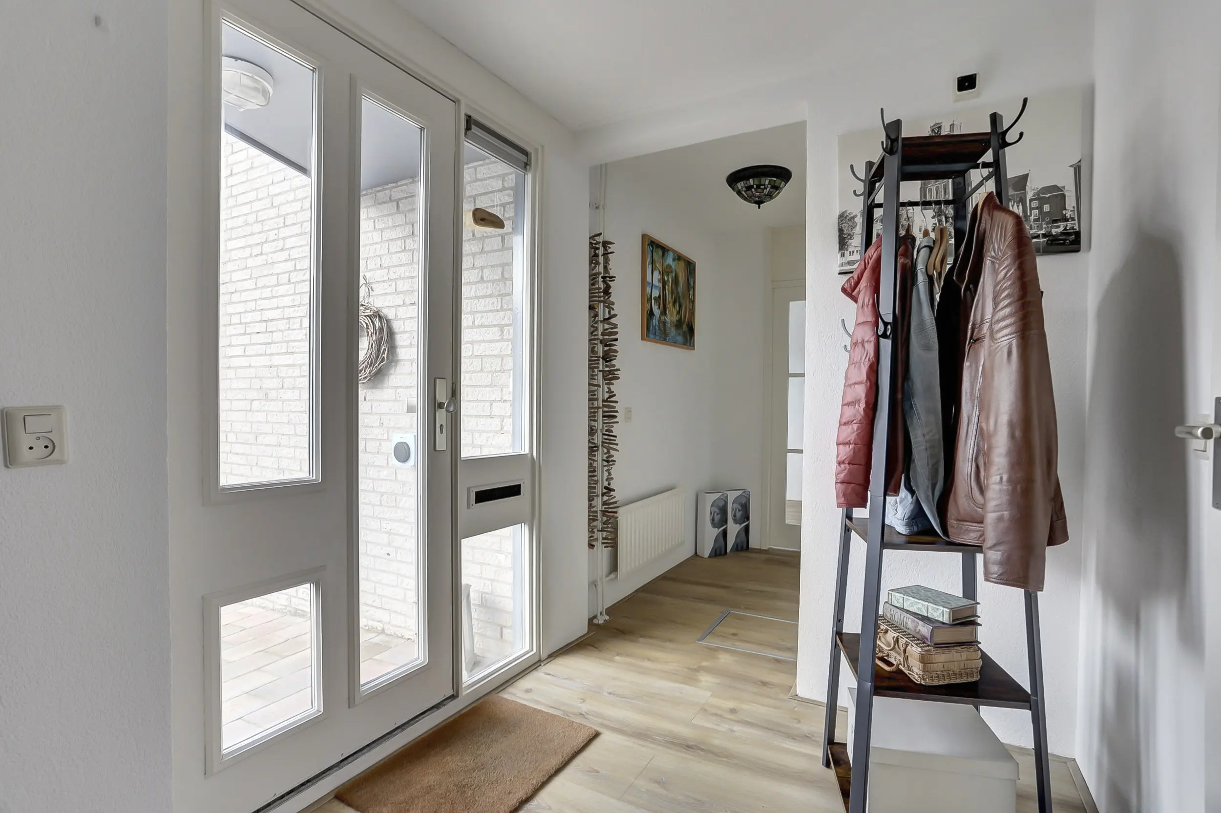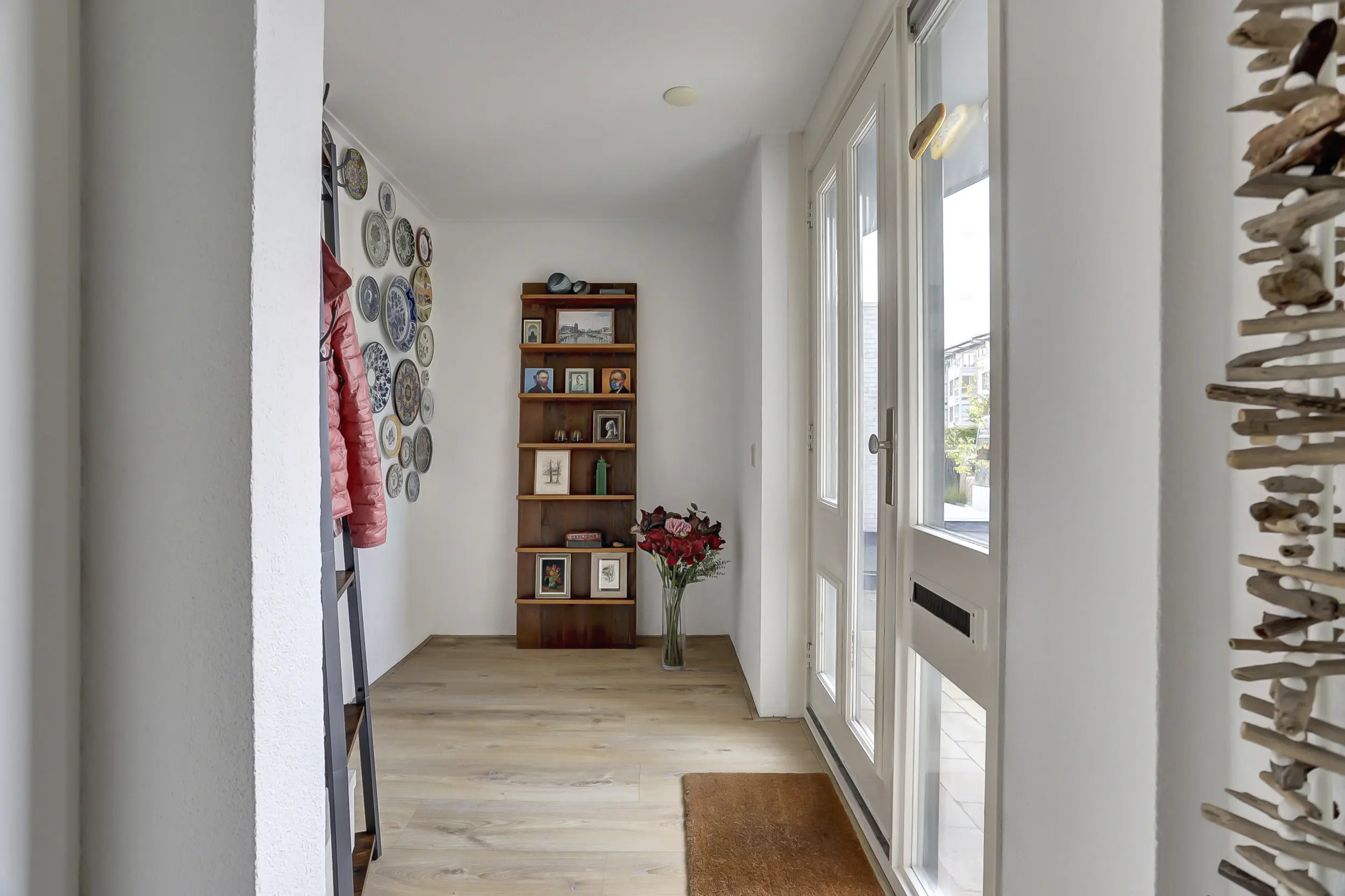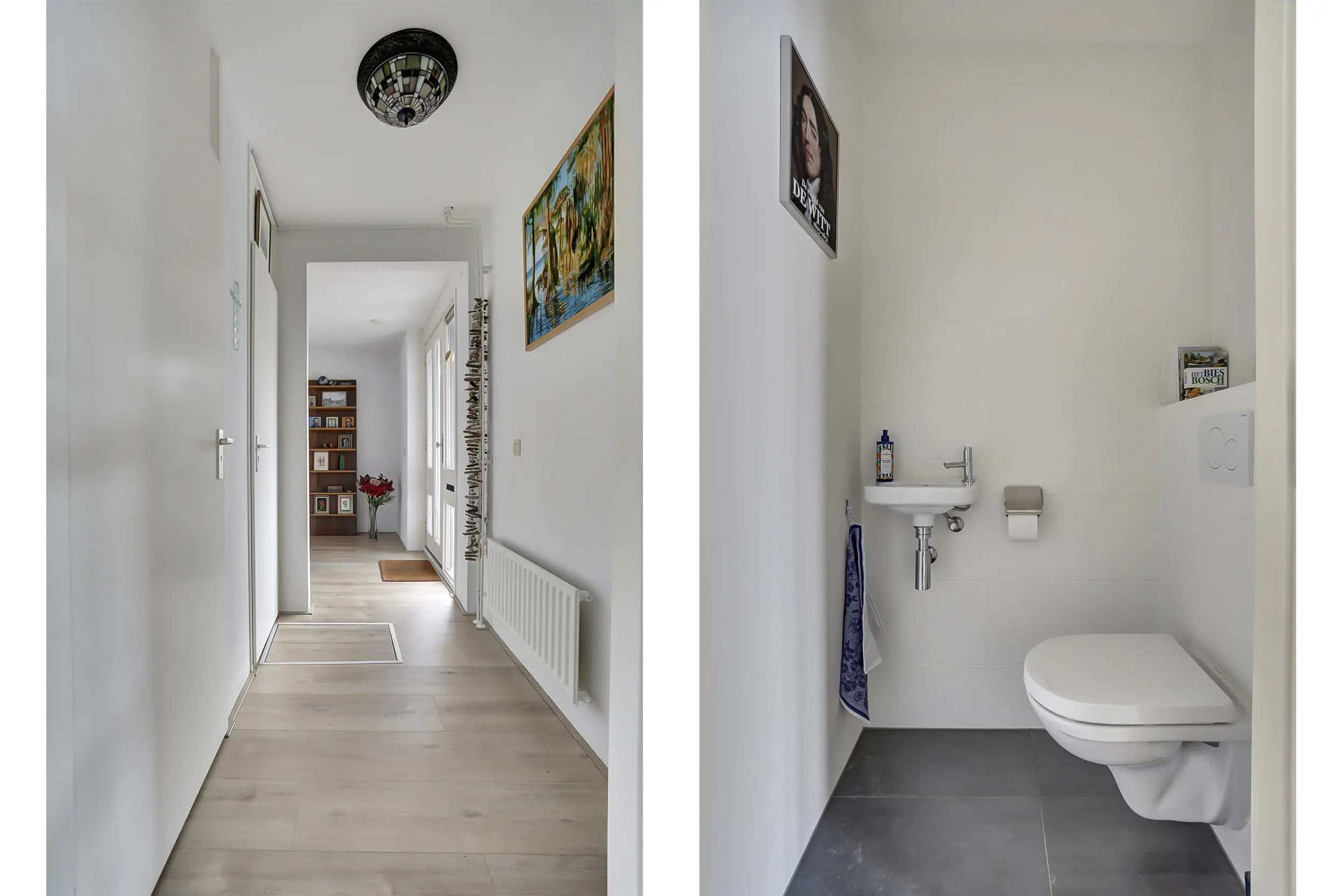 Via de nette hal heeft u toegang tot een ruime voorraadkast, de meterkast (modern, glasvezel aanwezig), een keurig toilet met fonteintje én een garderobekast. Vanuit de hal komt u in de royale woonkamer.