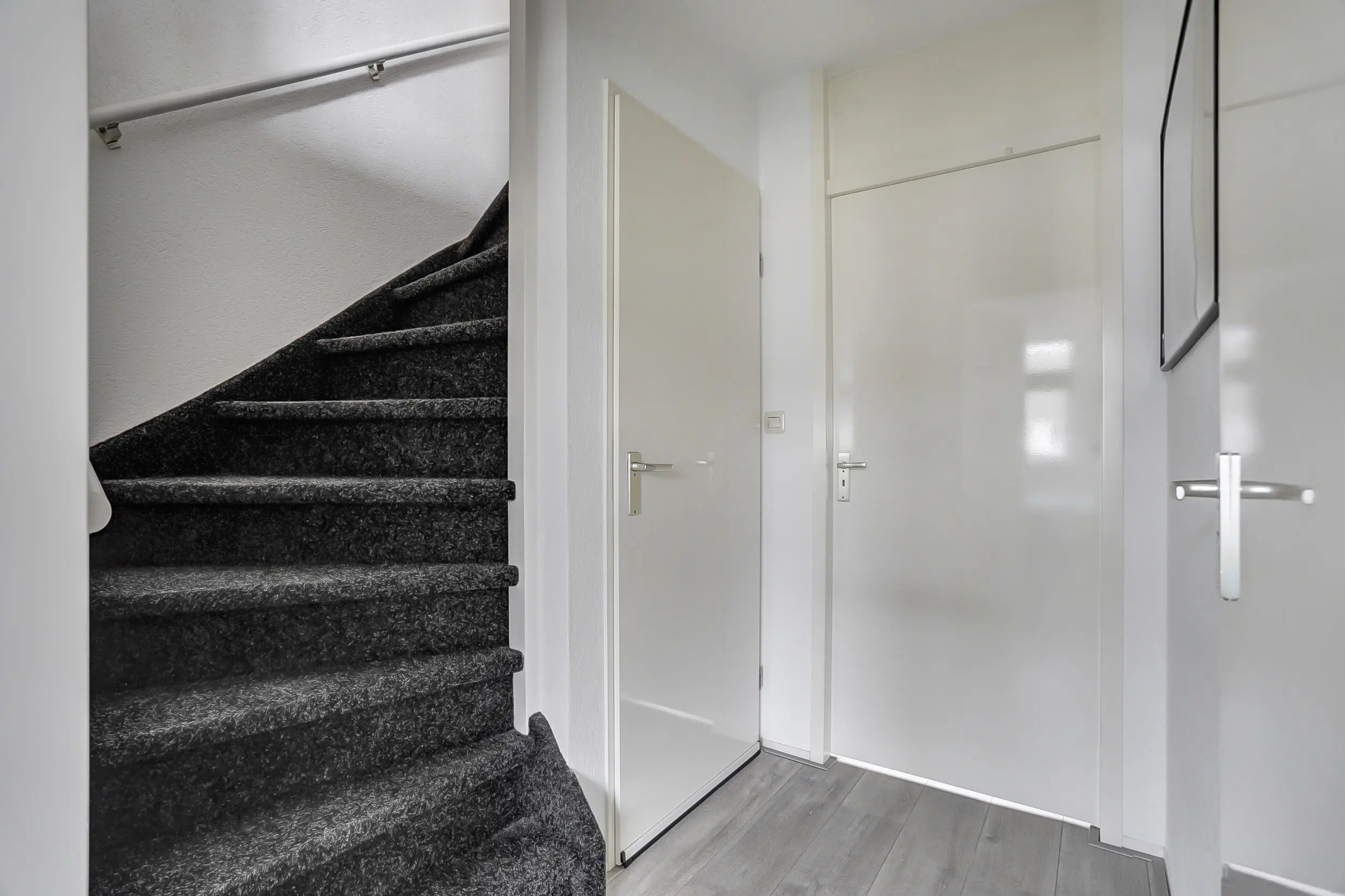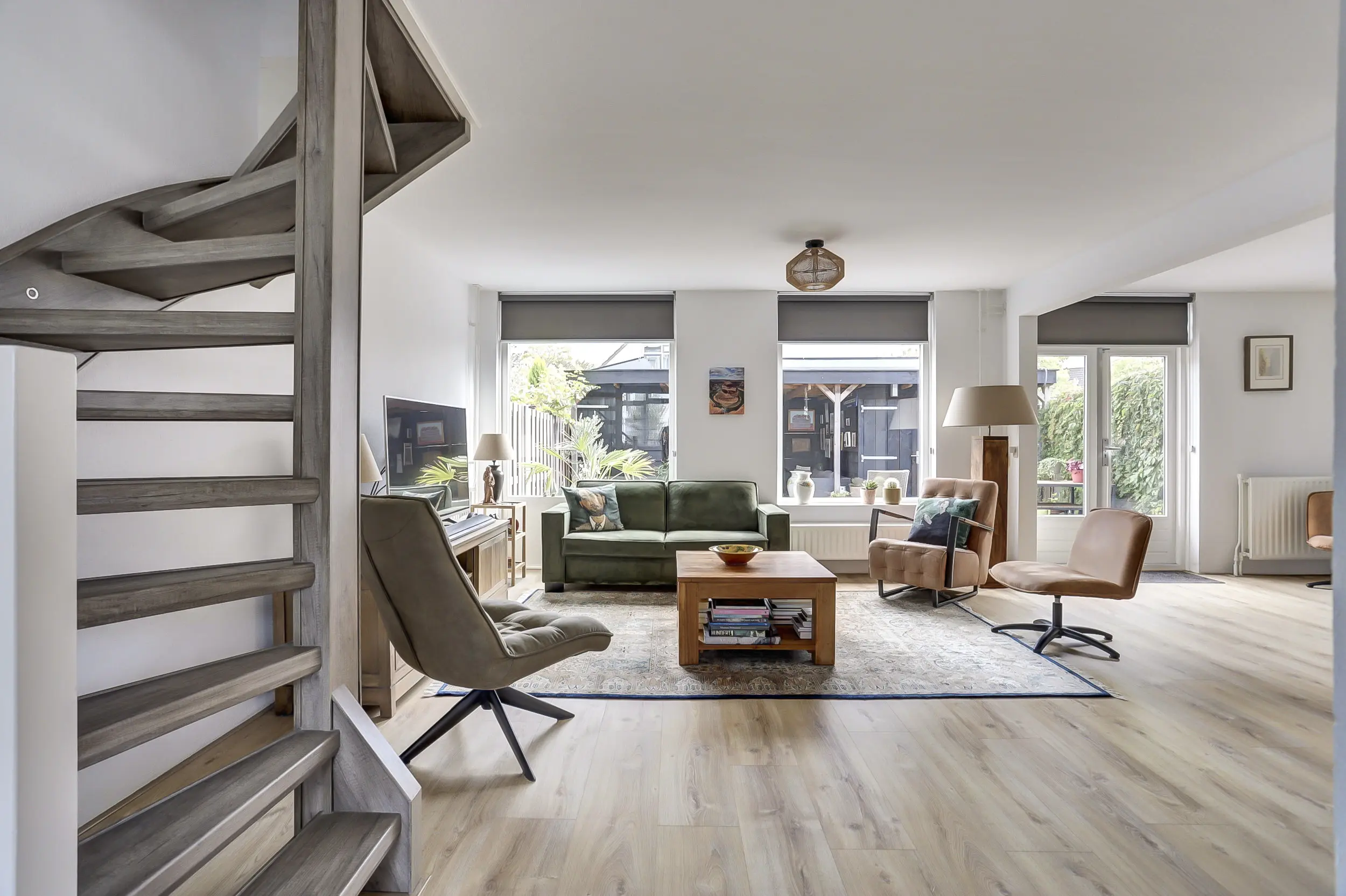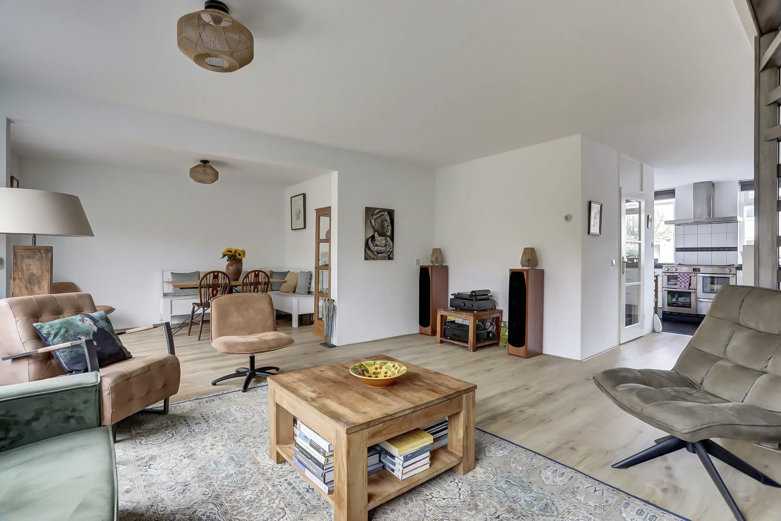 Via de nette hal heeft u toegang tot een ruime voorraadkast, de meterkast (modern, glasvezel aanwezig), een keurig toilet met fonteintje én een garderobekast. Vanuit de hal komt u in de royale woonkamer.