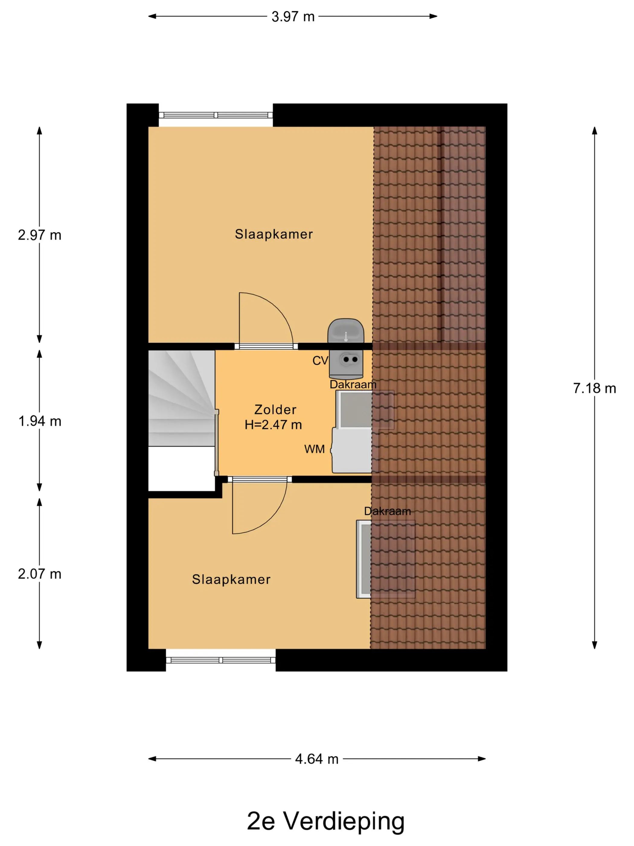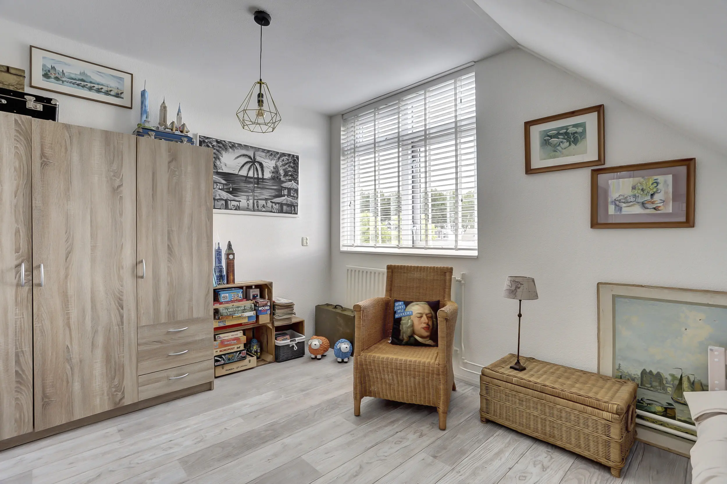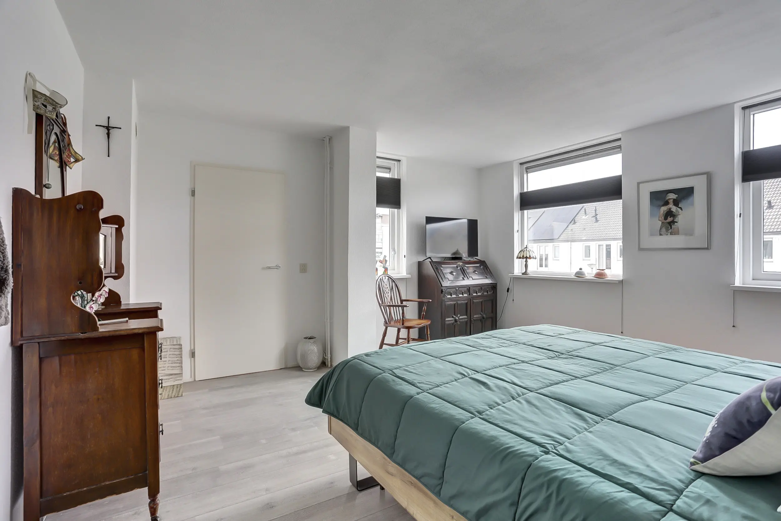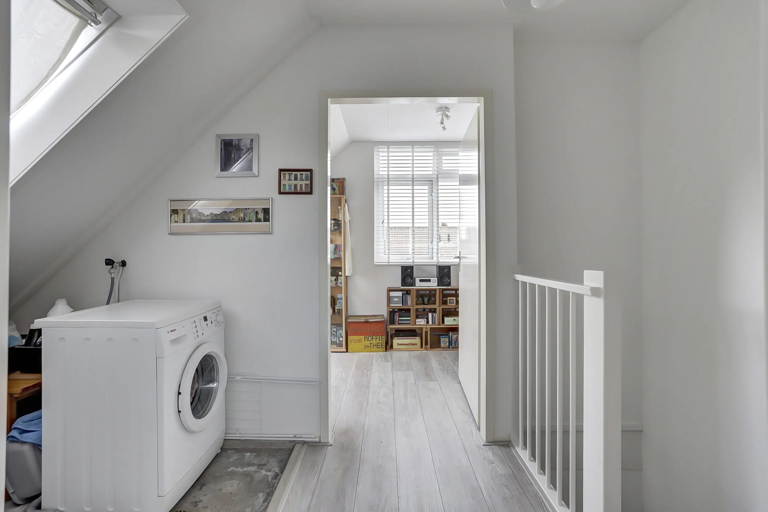 Op de tweede verdieping vindt u nog eens twee ruime slaapkamers. De overloop biedt plaats aan de CV-combiketel (uit 2025), de wasmachine, droger en de unit van de zonnepanelen. Ook hier zorgt een dakraam voor prettig daglicht.