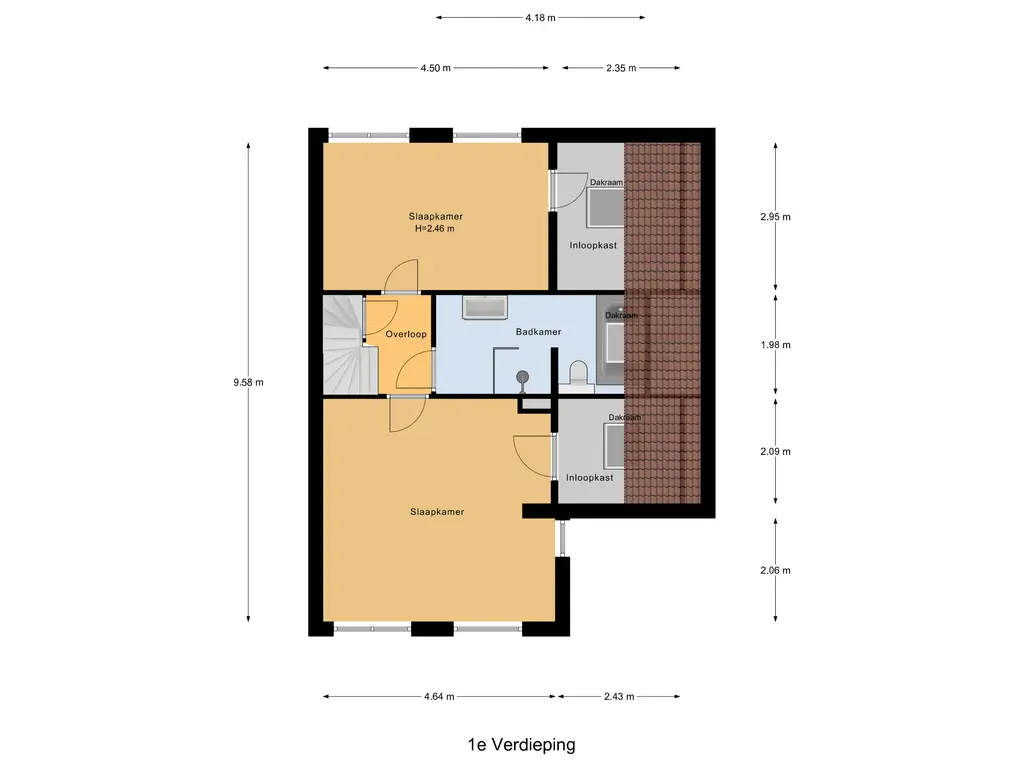 Beide slaapkamers zijn royaal bemeten en beschikken beiden over een grote inloopkast met dakraam. Verder zijn de kamers keurig afgewerkt met een laminaatvloer.