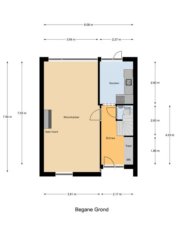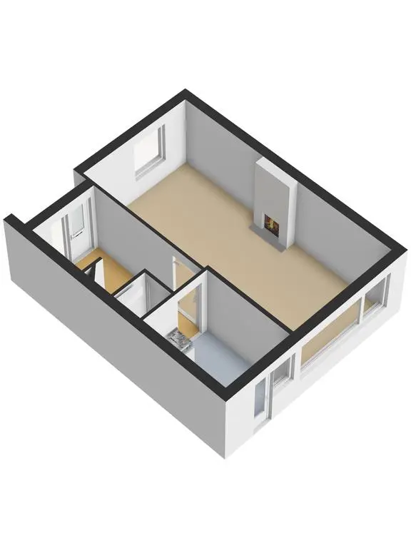 De keuken is eenvoudig en in een hoek opstelling geplaatst. Nu is dit nog een gesloten keuken, maar veel eigenaren halen de muur tussen de woonkamer en de keuken weg, om zo een grote leefkeuken te kunnen realiseren.