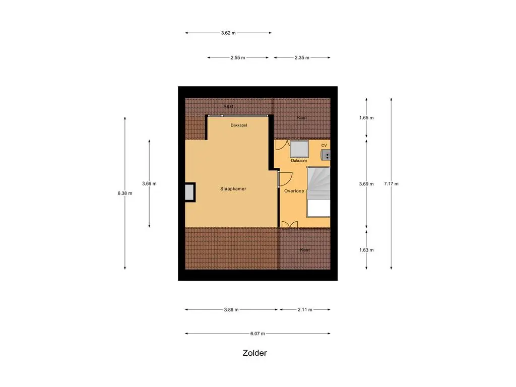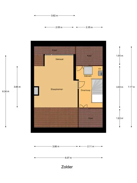 Middels een vaste trap bereik je de zolderverdieping. Hier bevindt zich de opstelling voor de CV en is er alle plek om een grote slaapkamer te realiseren. Dankzij het dakkapel aan de achterzijde wordt deze ruimte ook extra groot!
