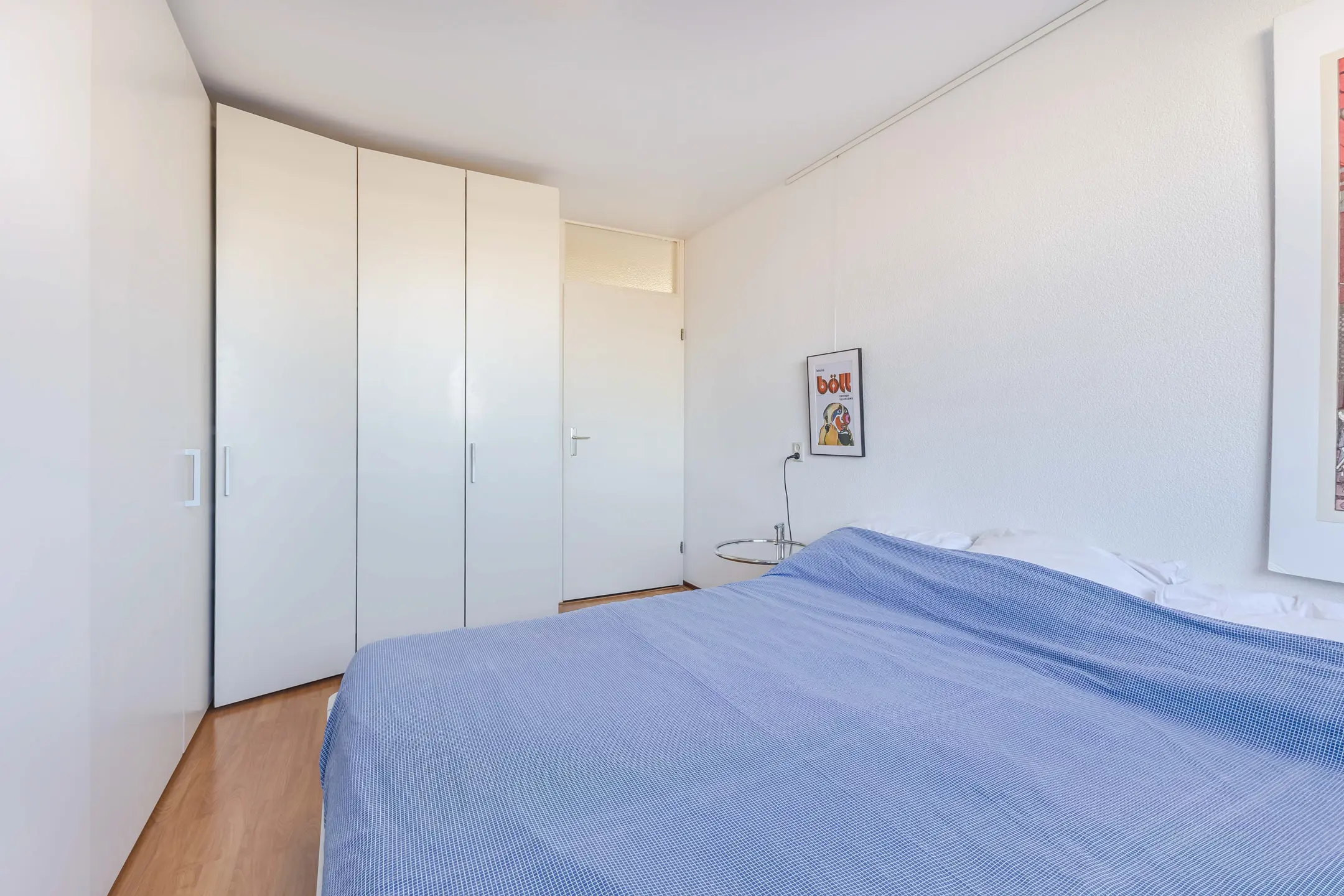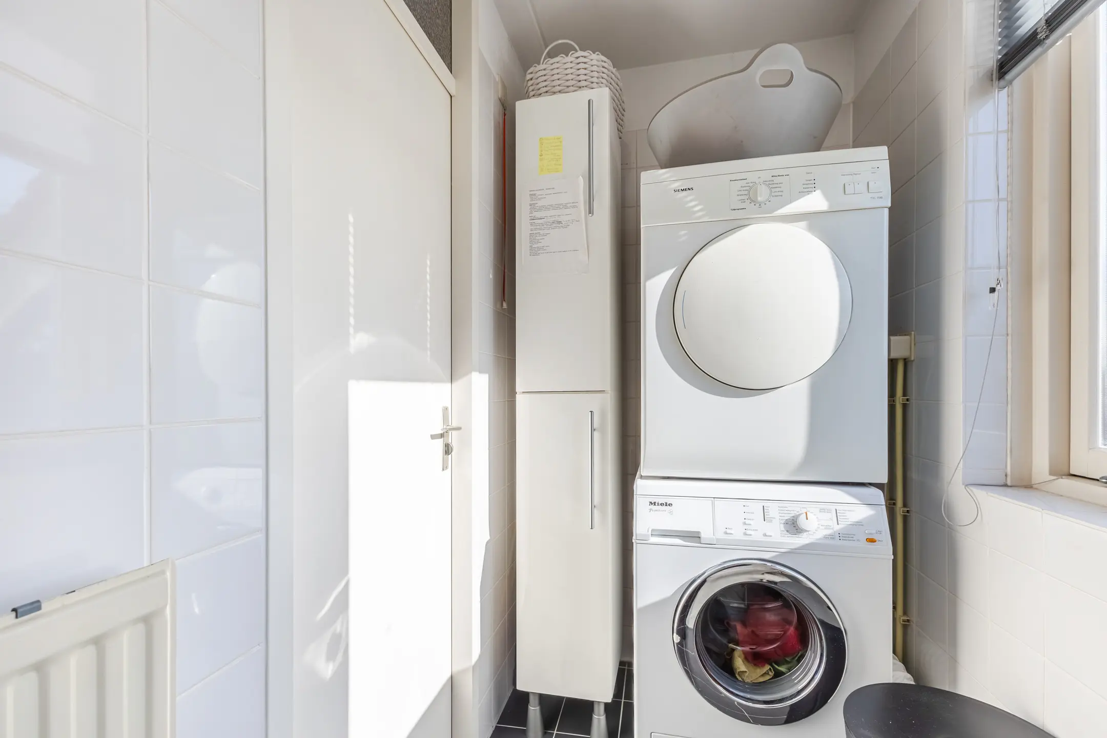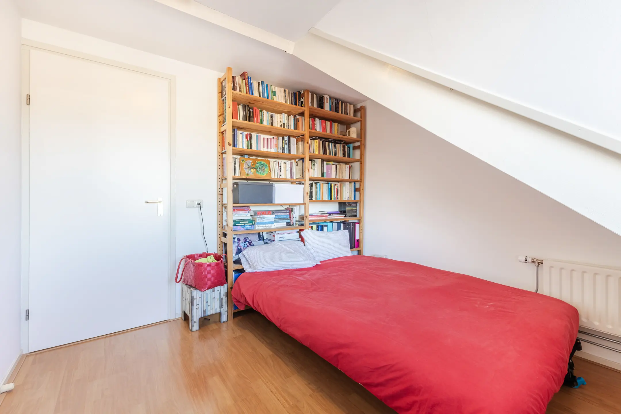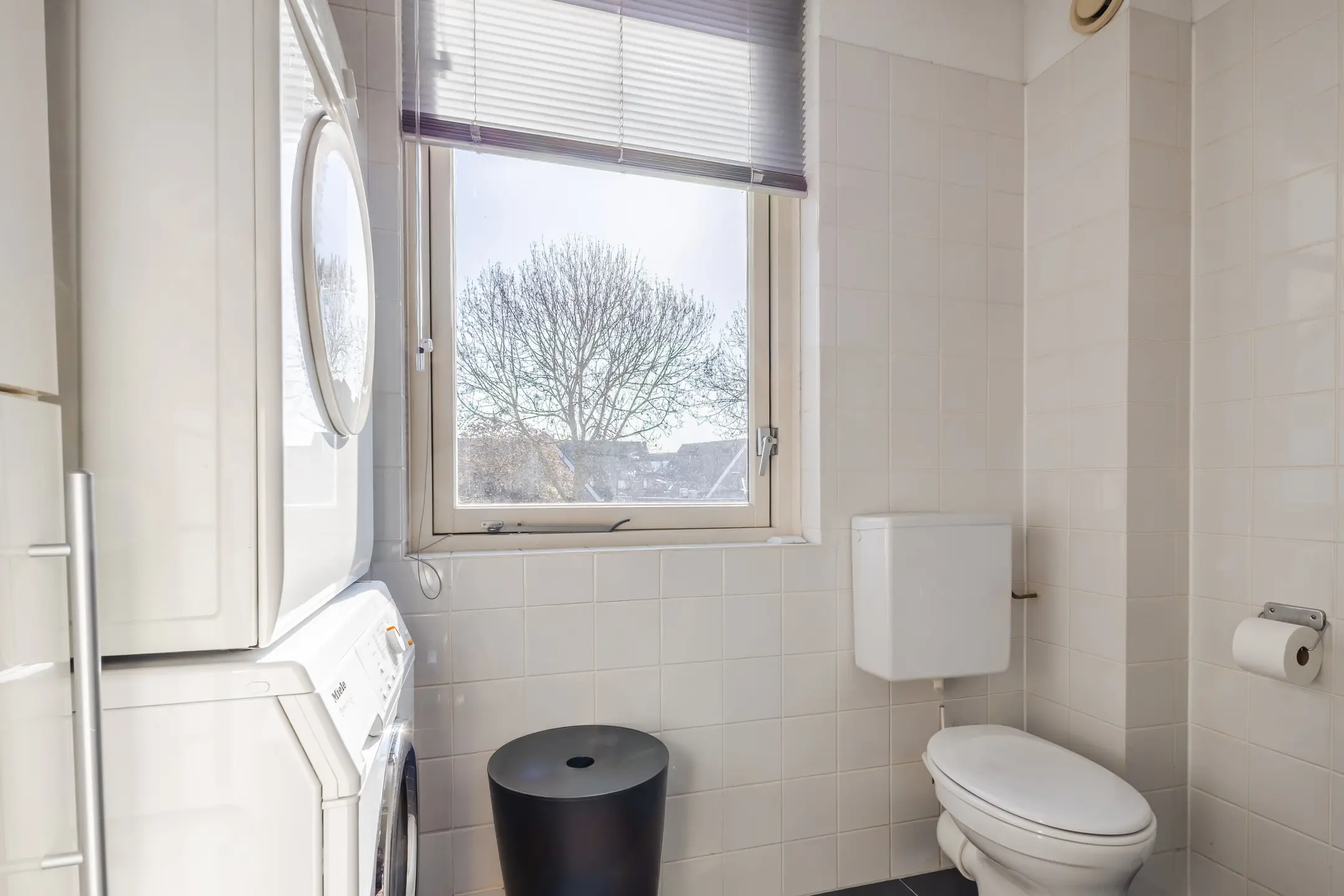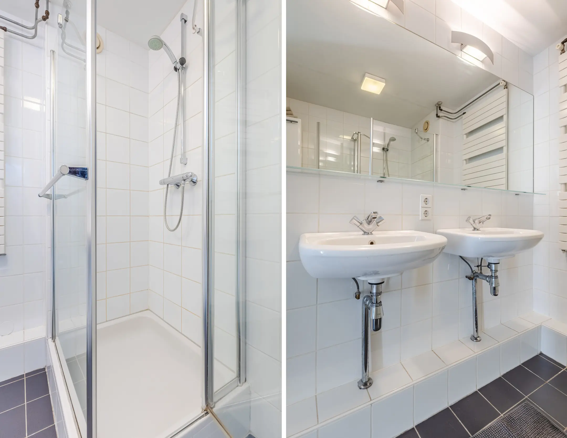 De tweede verdieping is echt een pluspunt: door het grote dakraam én de dakkapel is hier verrassend veel ruimte en licht ontstaan. Je vindt hier nog twee volwaardige slaapkamers én een tweede badkamer. Deze is volledig betegeld en voorzien van een ligbad, wastafel en spiegel. Ook de CV-combiketel (Vaillant 2015) is hier netjes weggewerkt.