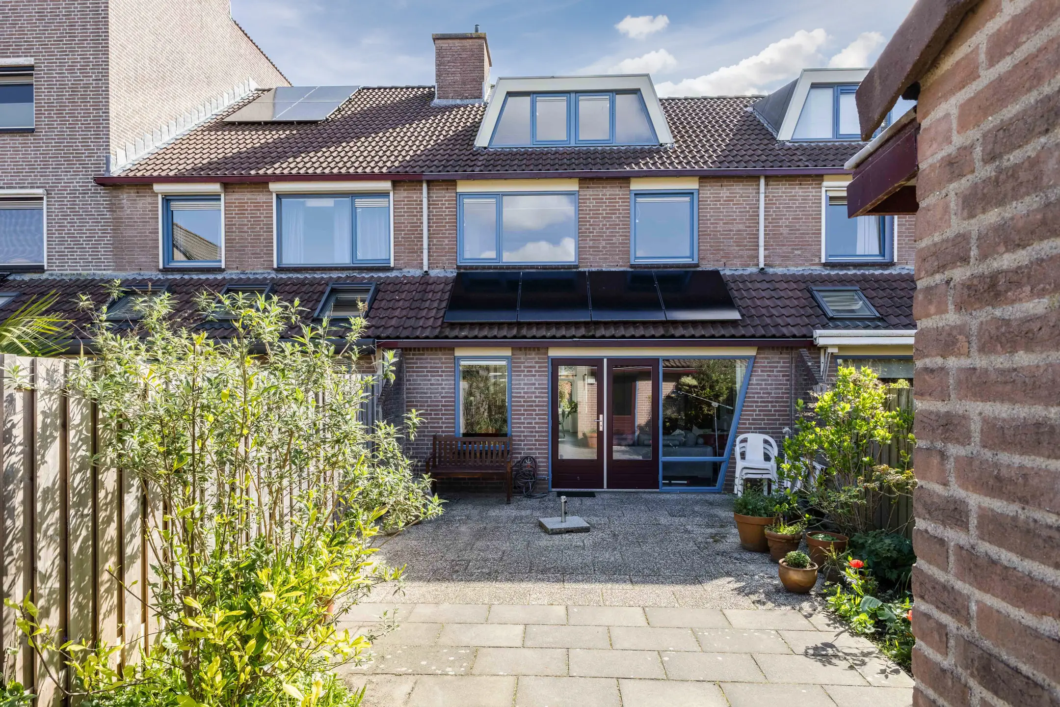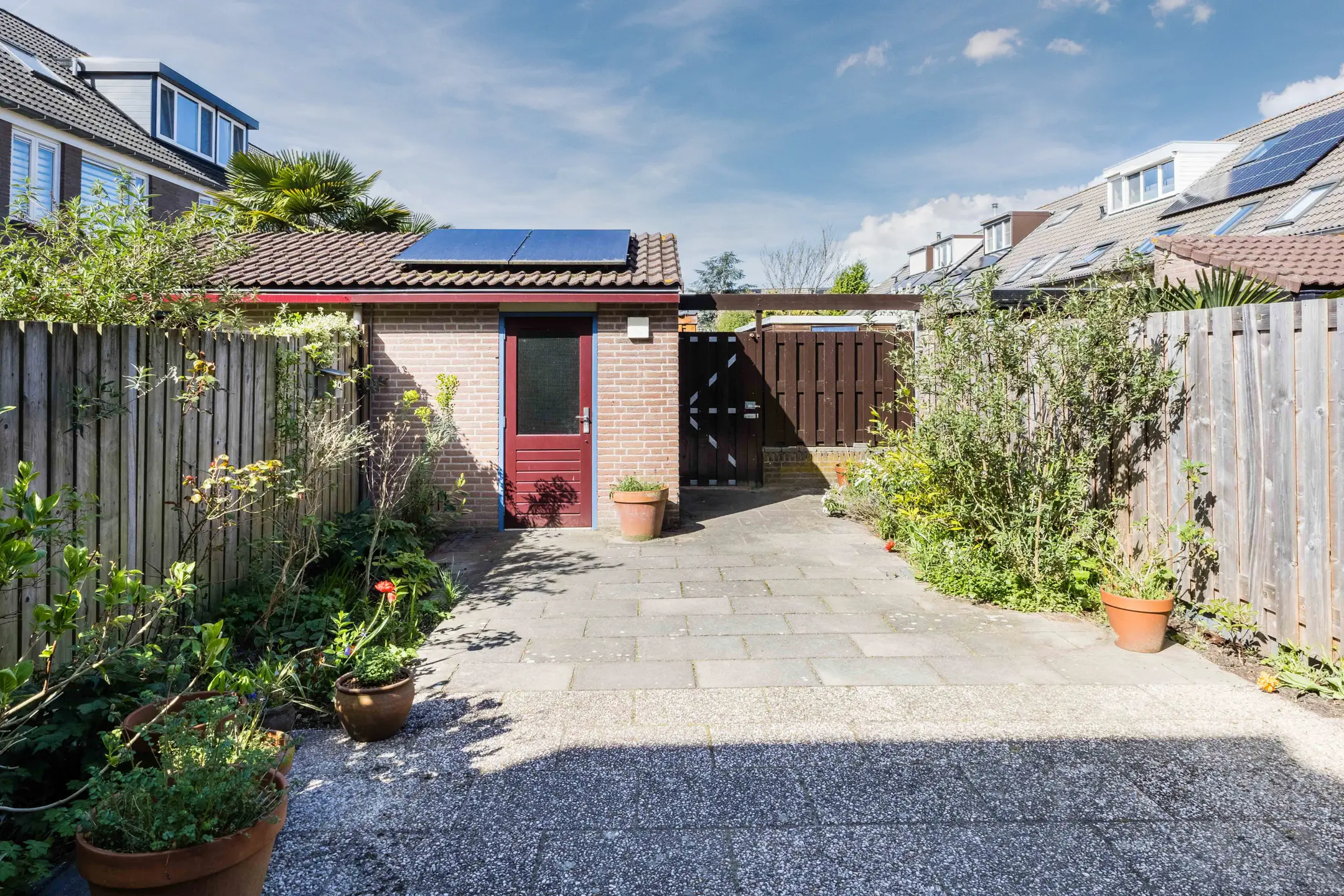 De achtertuin is grotendeels betegeld en ingericht met vaste beplanting. De tuin is gelegen op het westen - hier kunt u heerlijk genieten van de middag- en avondzon. Dankzij de achterom is deze ook praktisch in gebruik. Achter in de tuin staat een vrijstaande stenen berging gesitueerd. Hier is verlichting en elektra aanwezig.