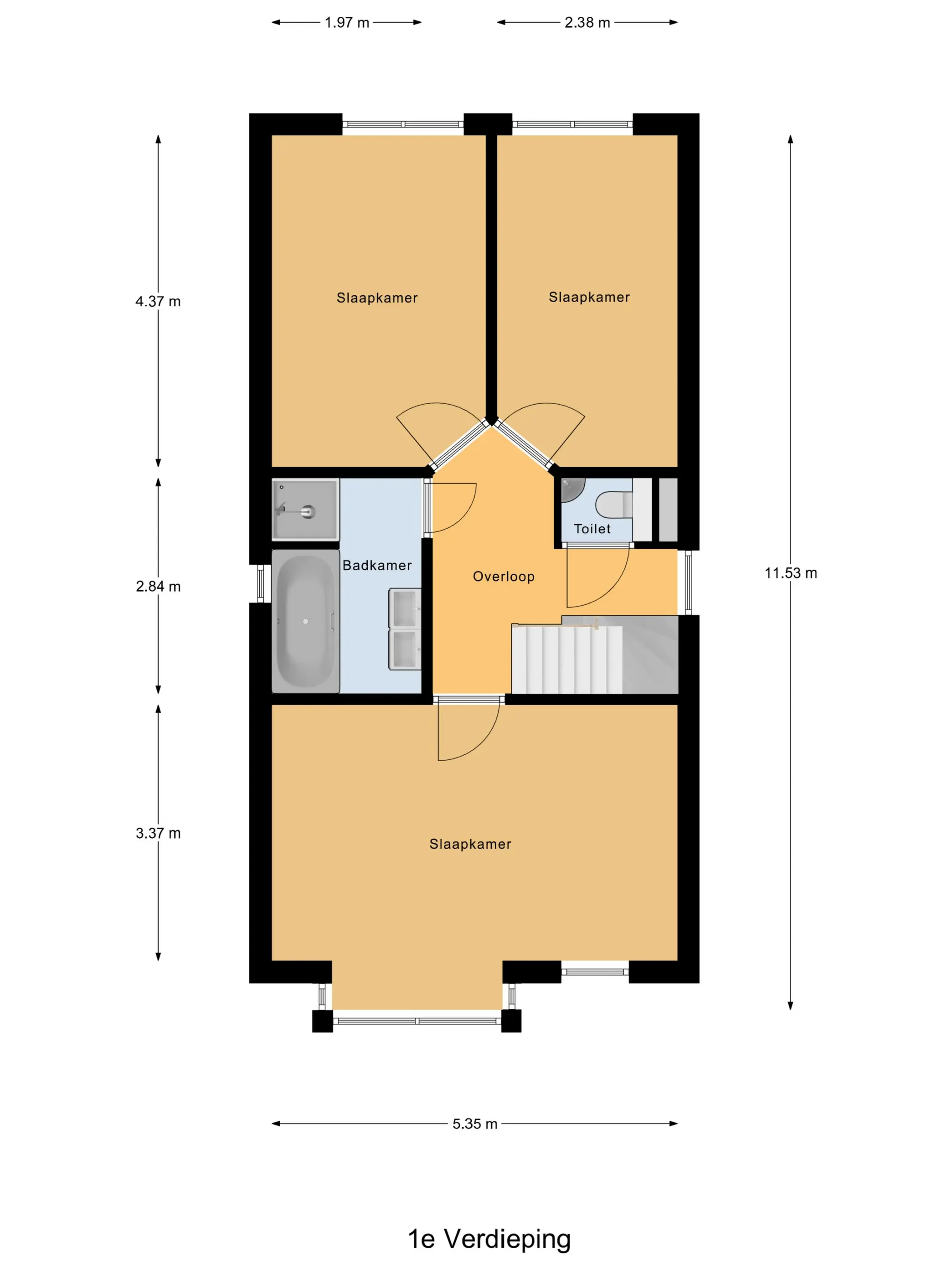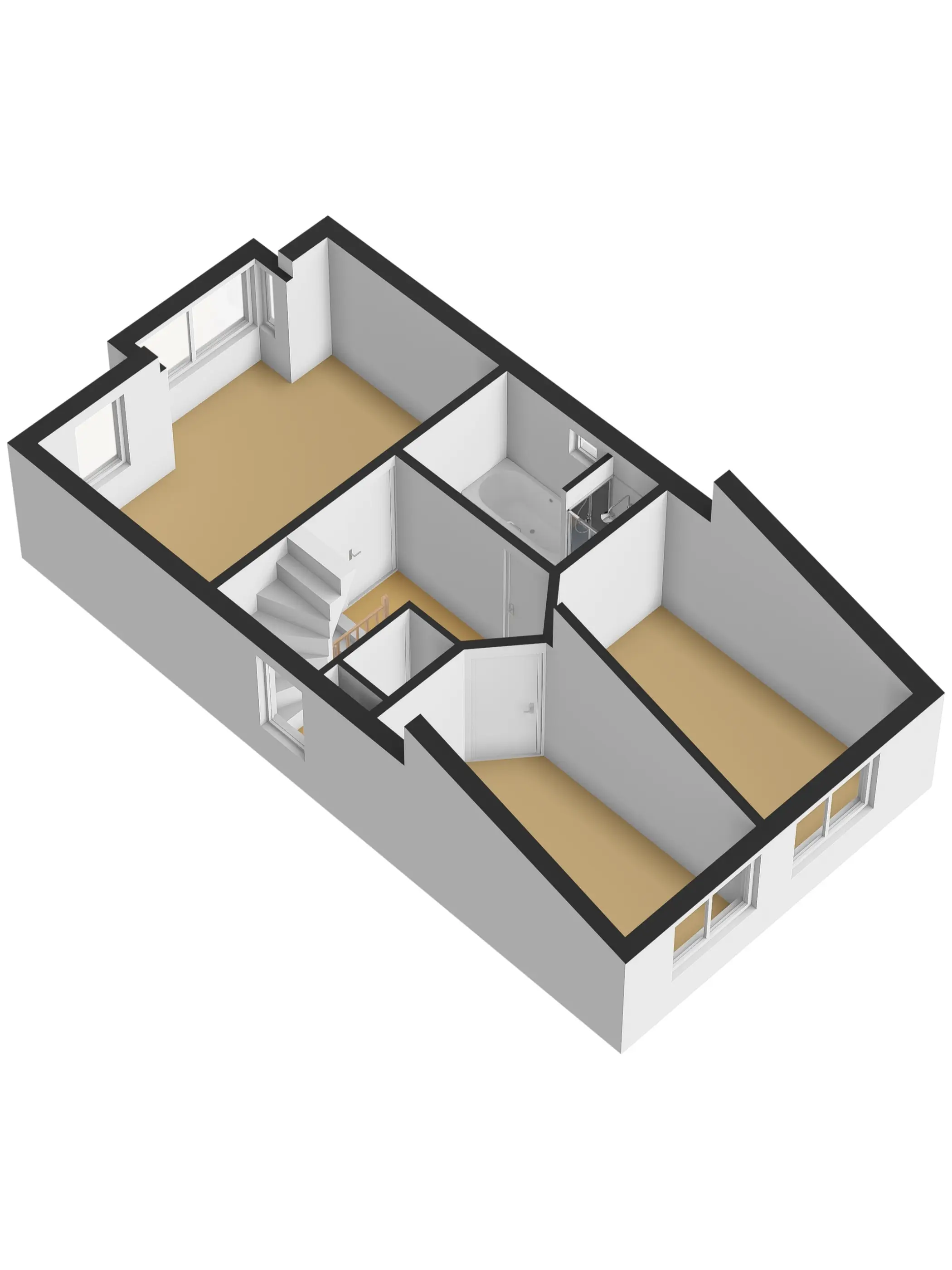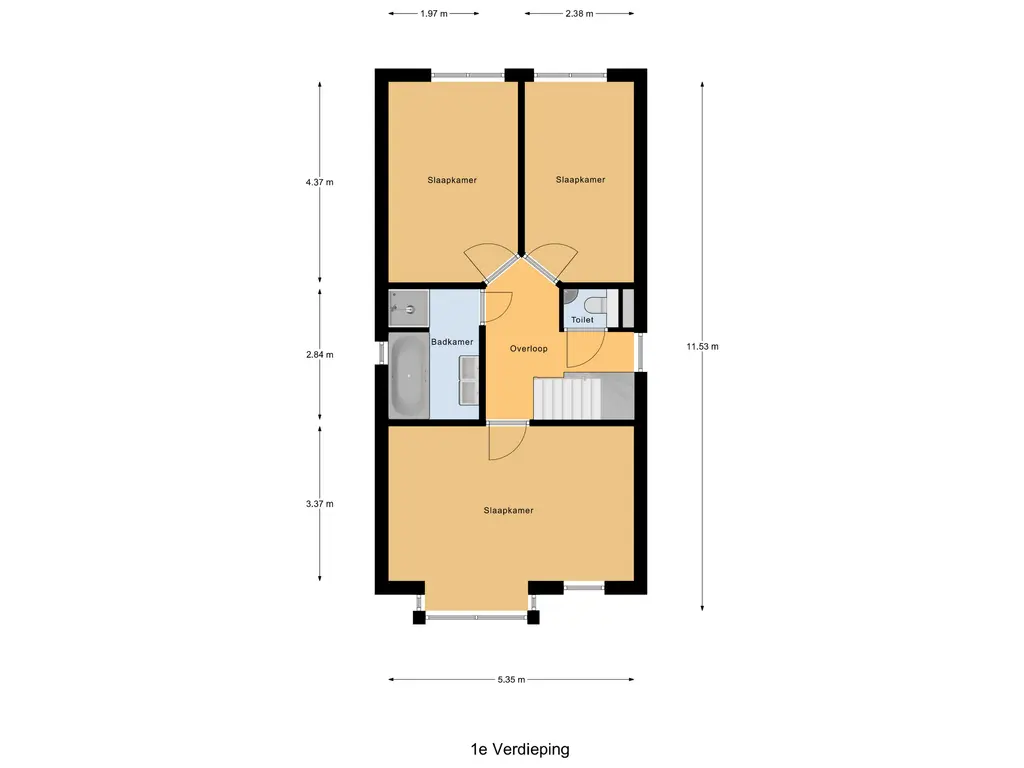 De slaapkamers zijn allen ruim te noemen en afgewerkt met een fraaie laminaatvloer. De slaapkamers aan de achterzijde beschikken over een schuin plafond wat de ruimten heel speels maakt.