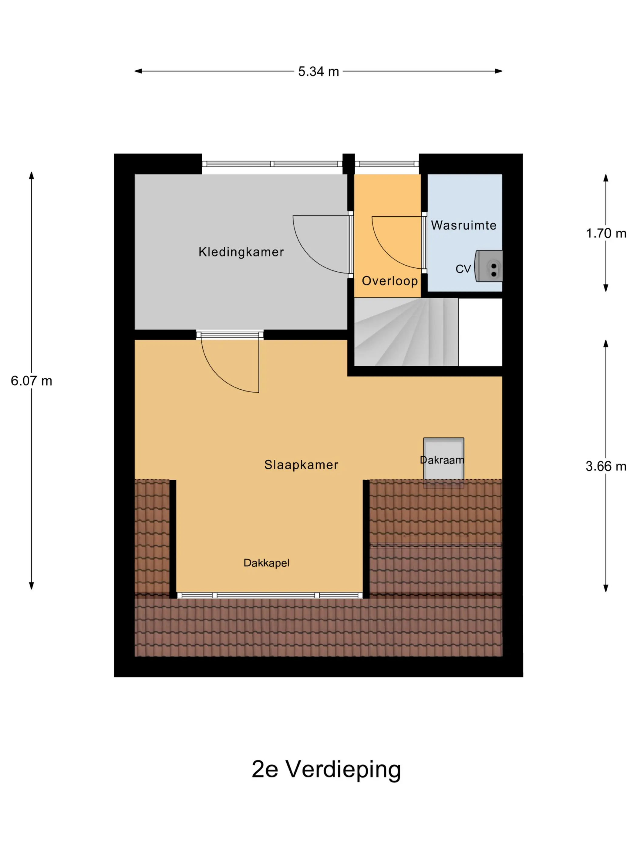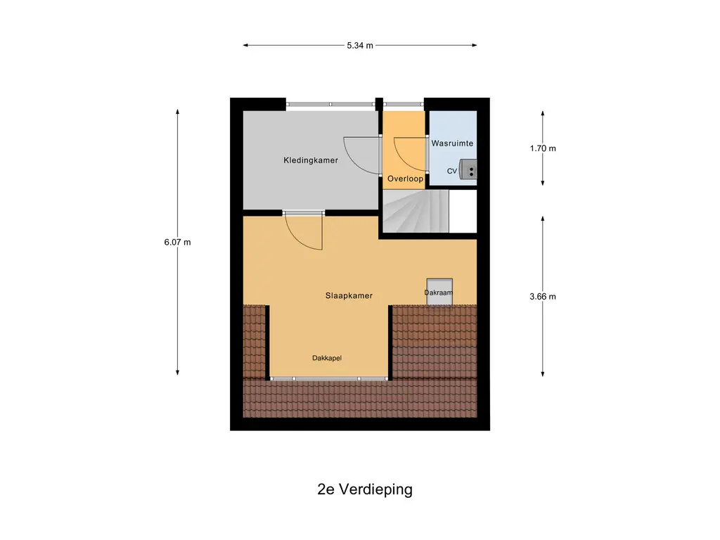 Via de overloop met lichtinval is er toegang tot een bergluik, een technische ruimte, een kledingkamer en aansluitend de vierde slaapkamer.