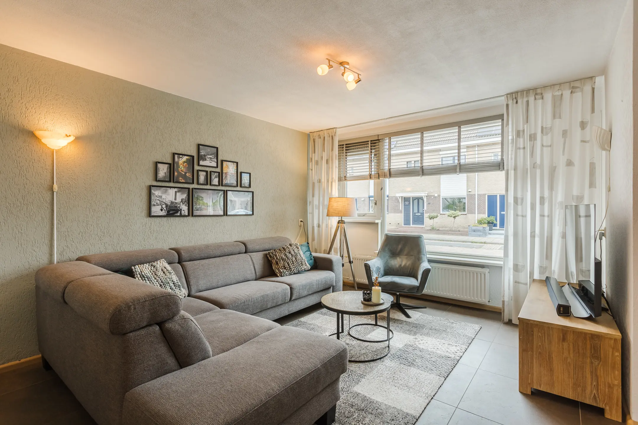 Via de voordeur stap je binnen in de hal, waar zich de meterkast bevindt. Vanuit de hal loop je door naar de lichte woonkamer, die door de grote ramen aan de voorzijde en de dubbele openslaande deuren naar de tuin een fijne, open sfeer heeft. De woonkamer beschikt over een praktische trapkast en is, net als de keuken, voorzien van vloerverwarming als bijverwarming – comfortabel in de koudere maanden.