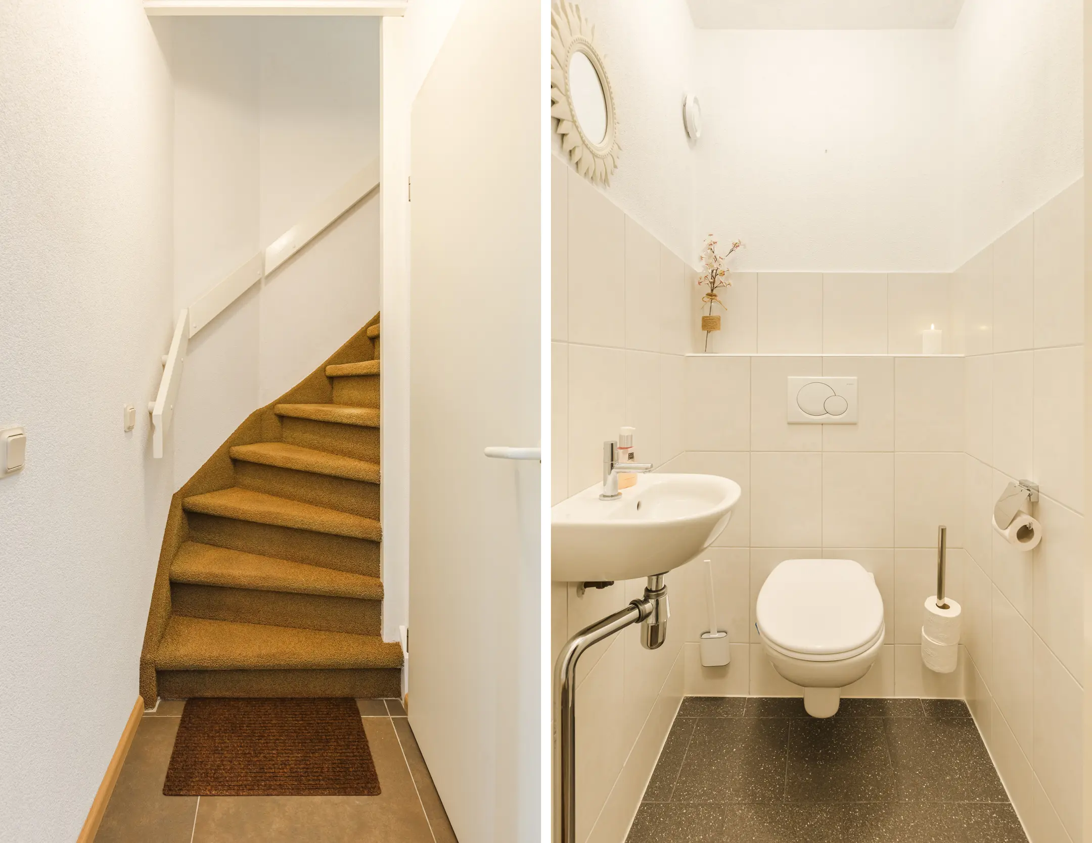 De open keuken ligt aan de achterzijde van de woning en is opgesteld in een praktische U-vorm. Je beschikt hier over diverse inbouwapparatuur, zoals een inductiekookplaat, afzuigkap, combi-oven/magnetron, koelkast, vriezer en een vaatwasser. Daarnaast is er voldoende kastruimte. De keuken functioneert prima zoals hij is, maar biedt ook volop mogelijkheden om aan te passen naar jouw eigen smaak en stijl.