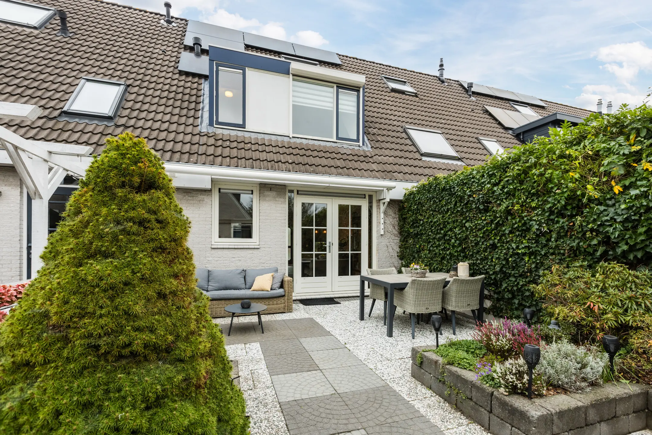 Via de openslaande deuren bereik je de zonnige achtertuin, die met een diepte van circa 9,5 meter en de ligging op het zuiden een heerlijke plek is om van het buitenleven te genieten. De tuin is onderhoudsvriendelijk aangelegd en beschikt over een terras, groene borders en een vrijstaande stenen berging.