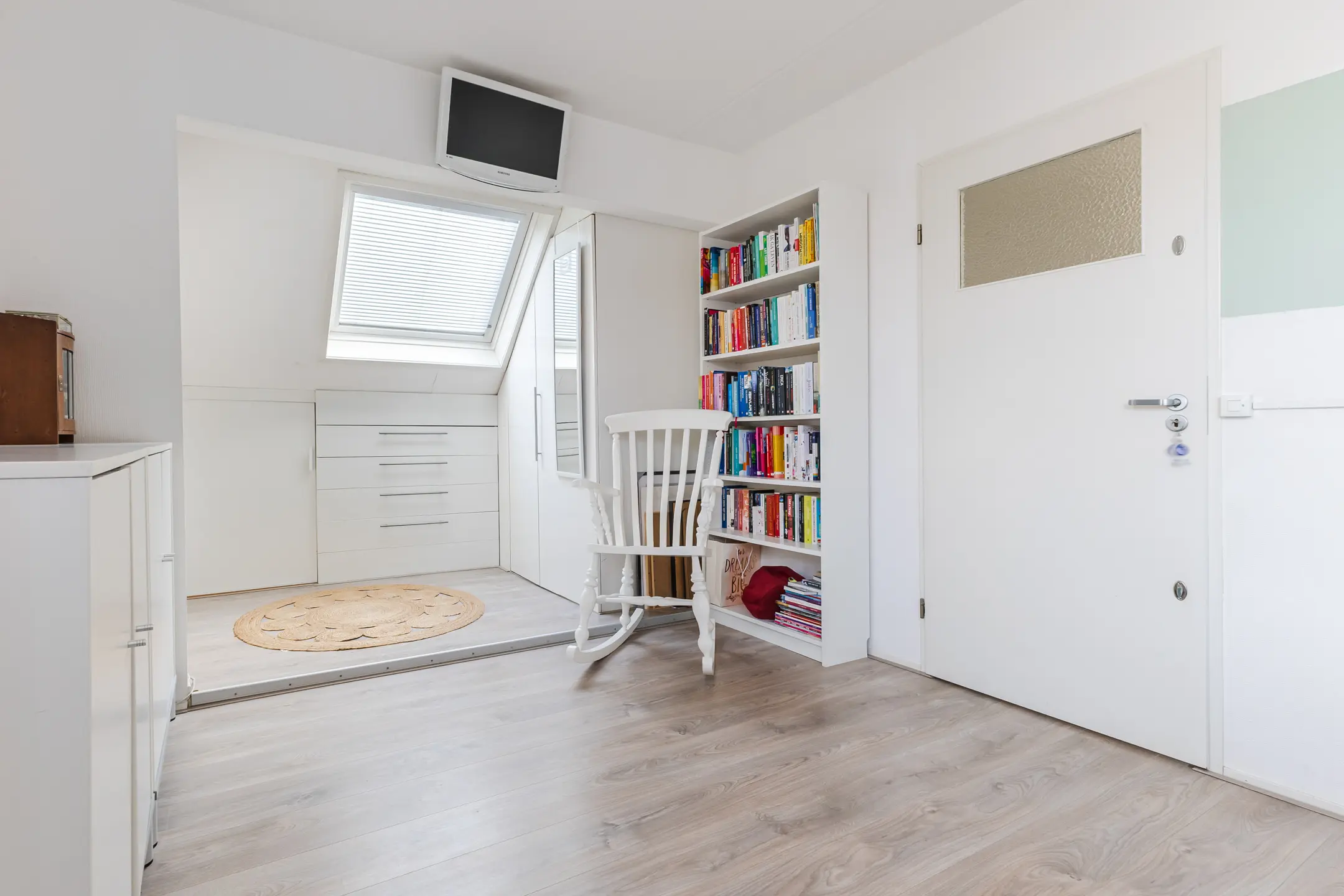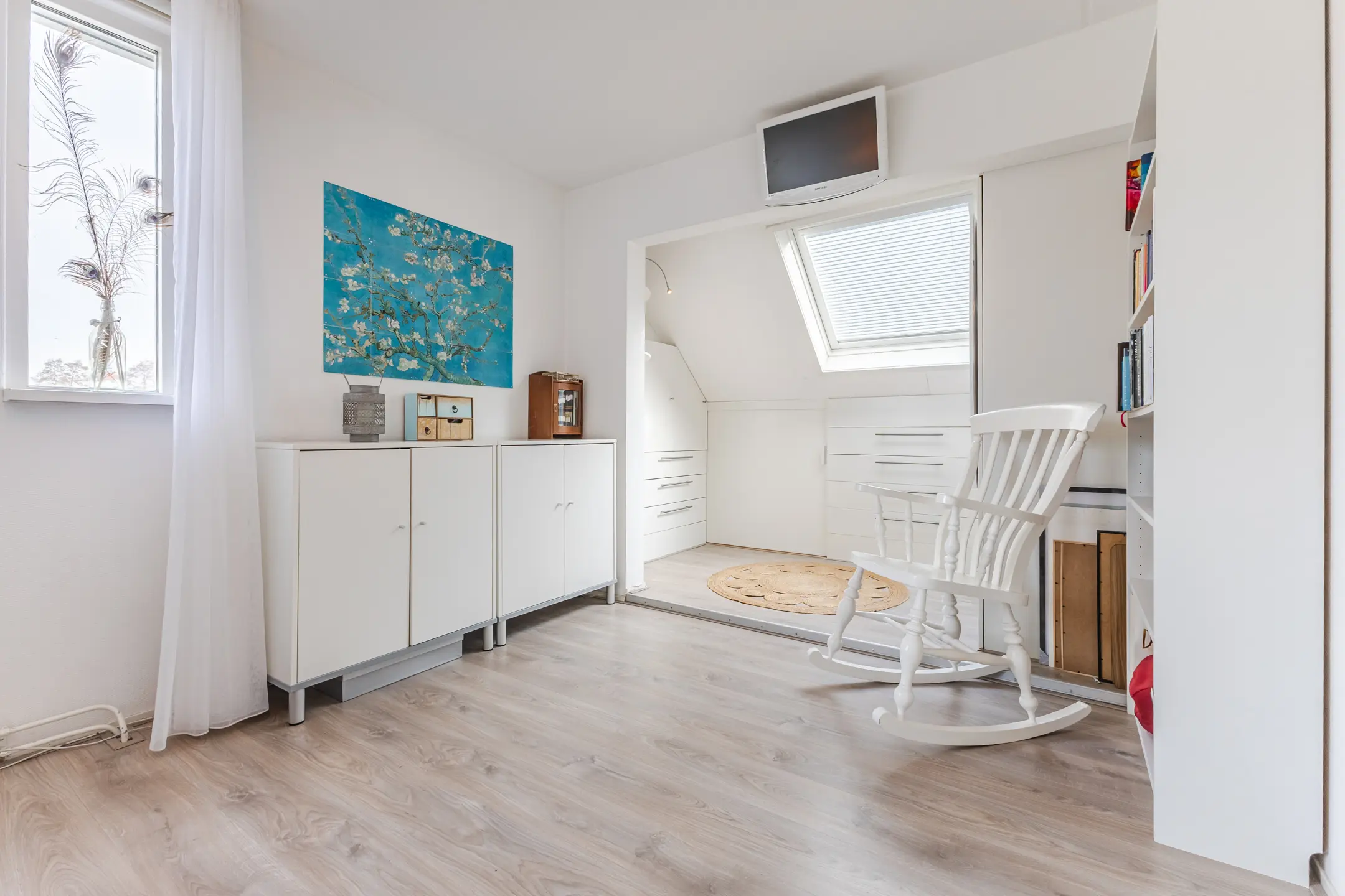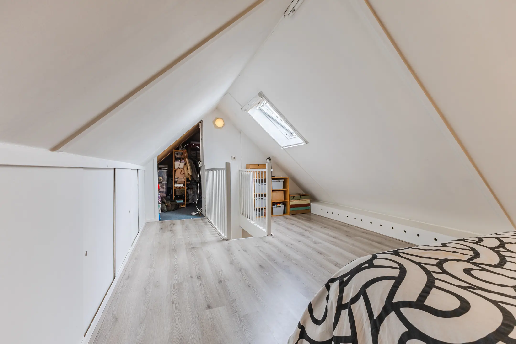 Via een vaste trap bereikt u de tweede verdieping, die momenteel is ingericht als vijfde (gasten)slaapkamer. Tevens bevindt zich hier een aparte bergruimte met de c.v.-ketel.
