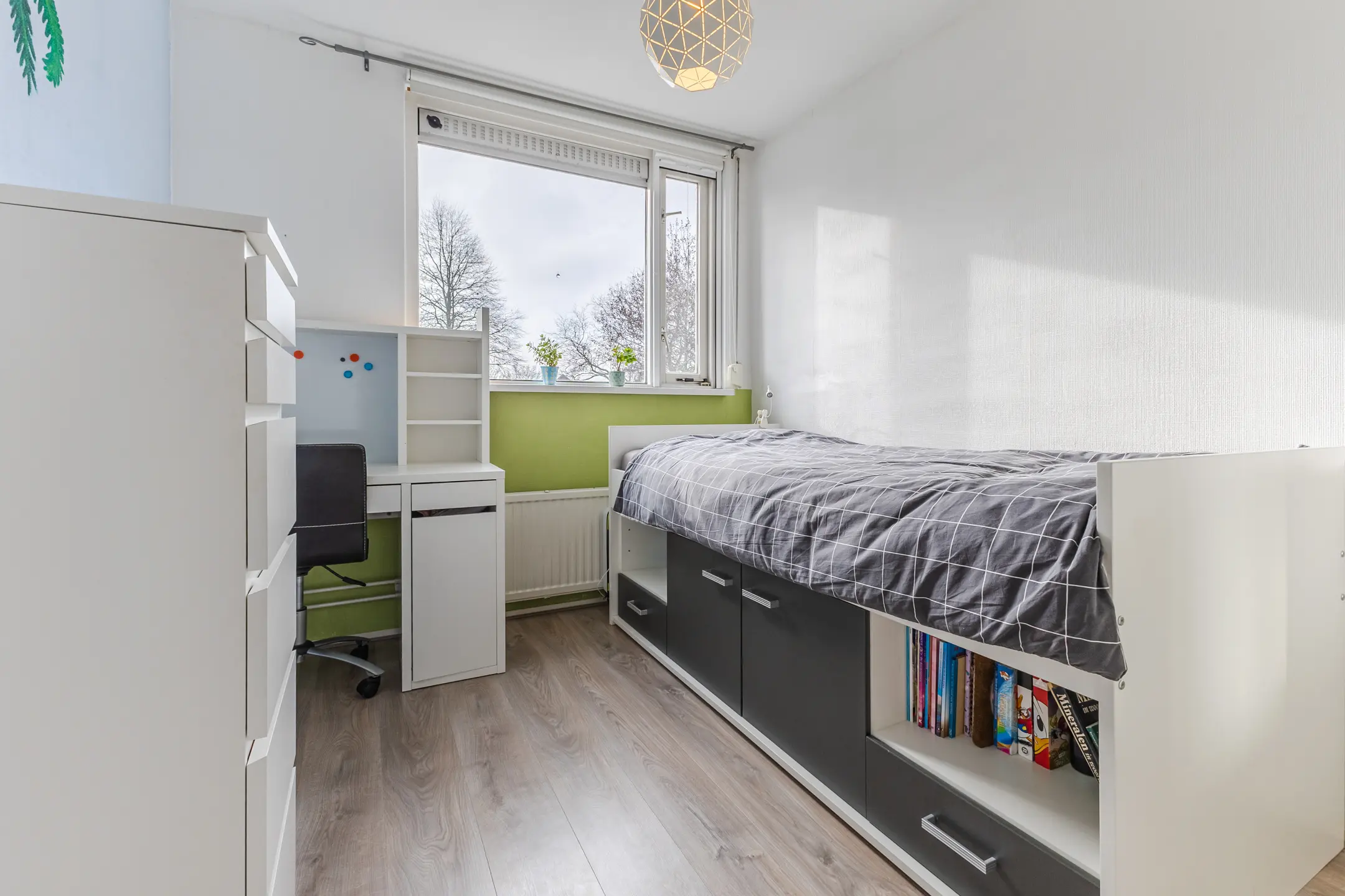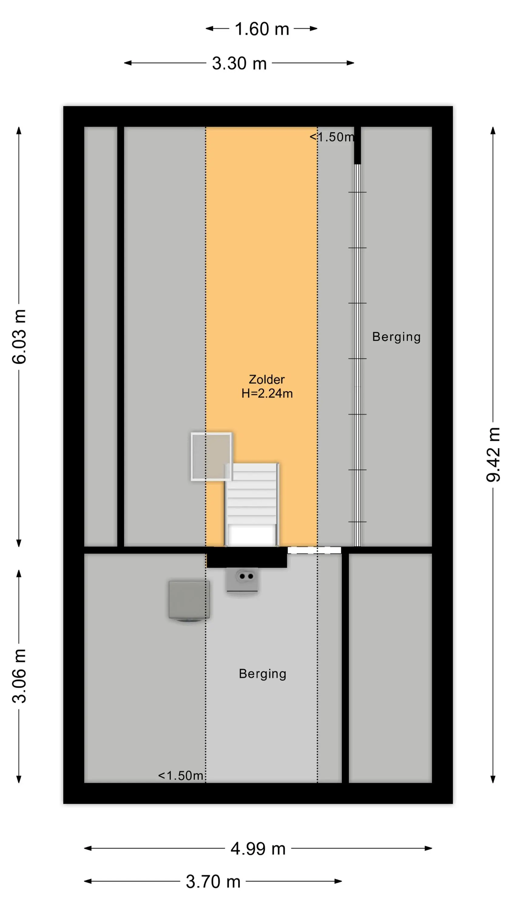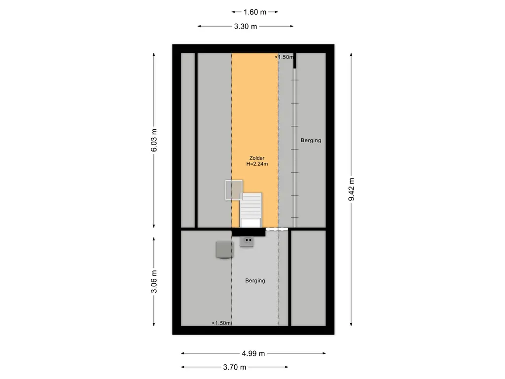 Via een vaste trap bereikt u de tweede verdieping, die momenteel is ingericht als vijfde (gasten)slaapkamer. Tevens bevindt zich hier een aparte bergruimte met de c.v.-ketel.