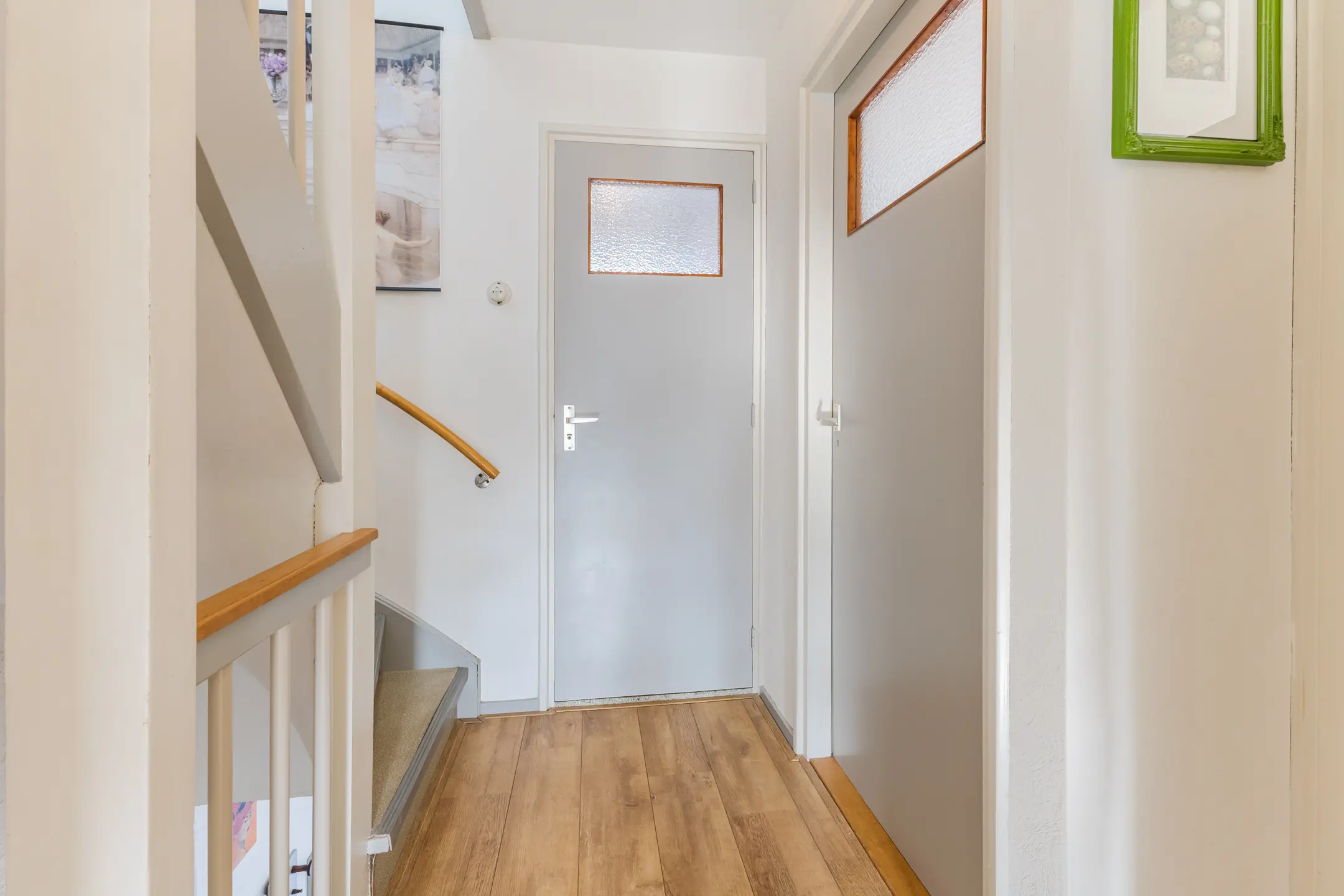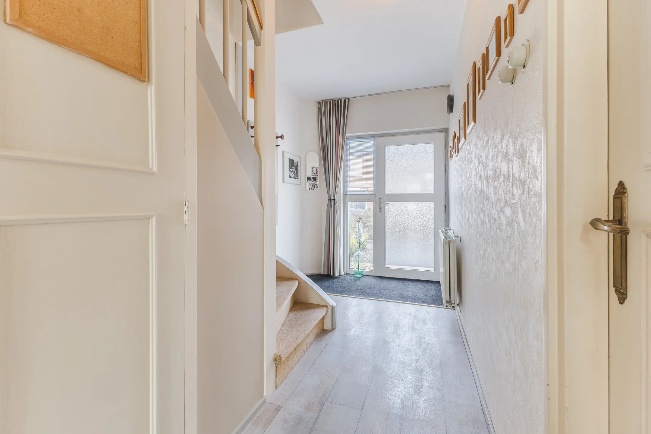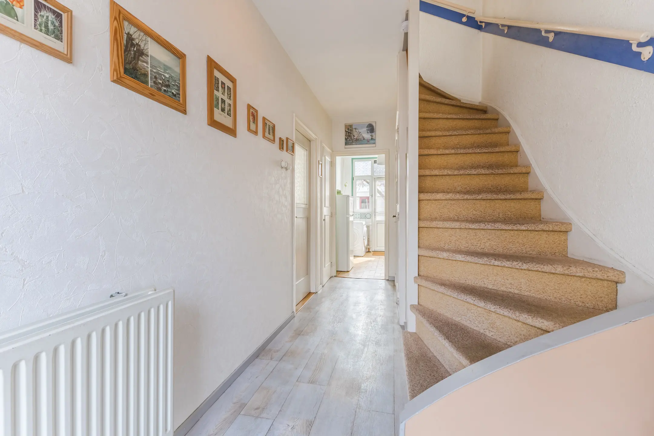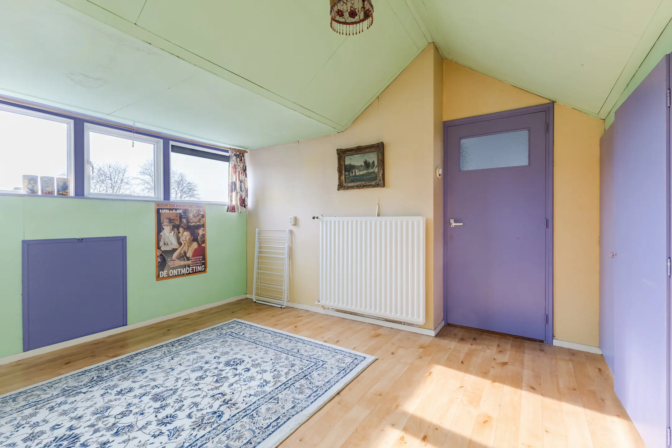 De begane grond beschikt over een ruime woonkamer en een gesloten keuken. De grote ramen zorgen voor veel natuurlijk licht en een fijne sfeer. Met wat modernisering kun je hier een eigentijdse en persoonlijke leefruimte creëren.