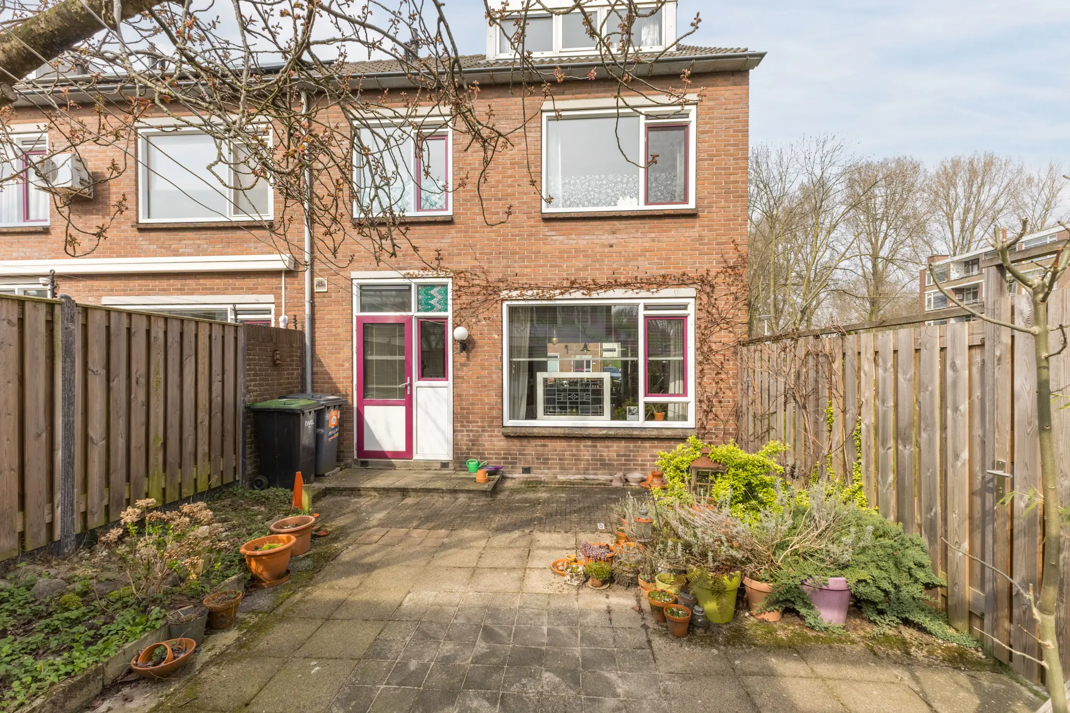De woning heeft een voor- en achtertuin. De achtertuin ligt op het zuidoosten, waardoor je een groot deel van de dag van de zon kunt genieten. Het perceel biedt daarnaast mogelijkheden voor extra bergruimte.